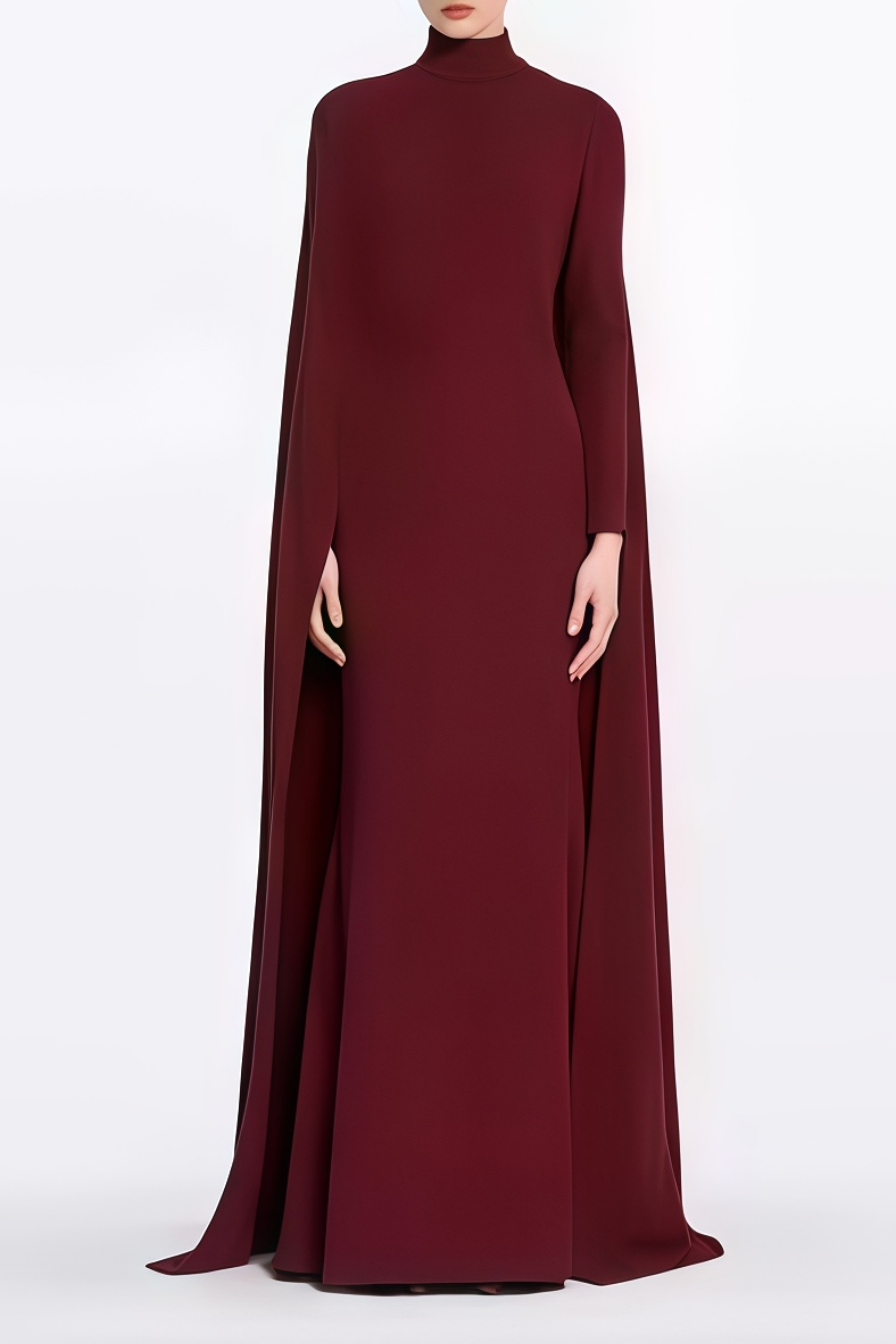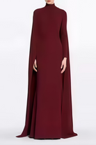 Thalia Burgundy Mock Neck Cape Maxi Gown