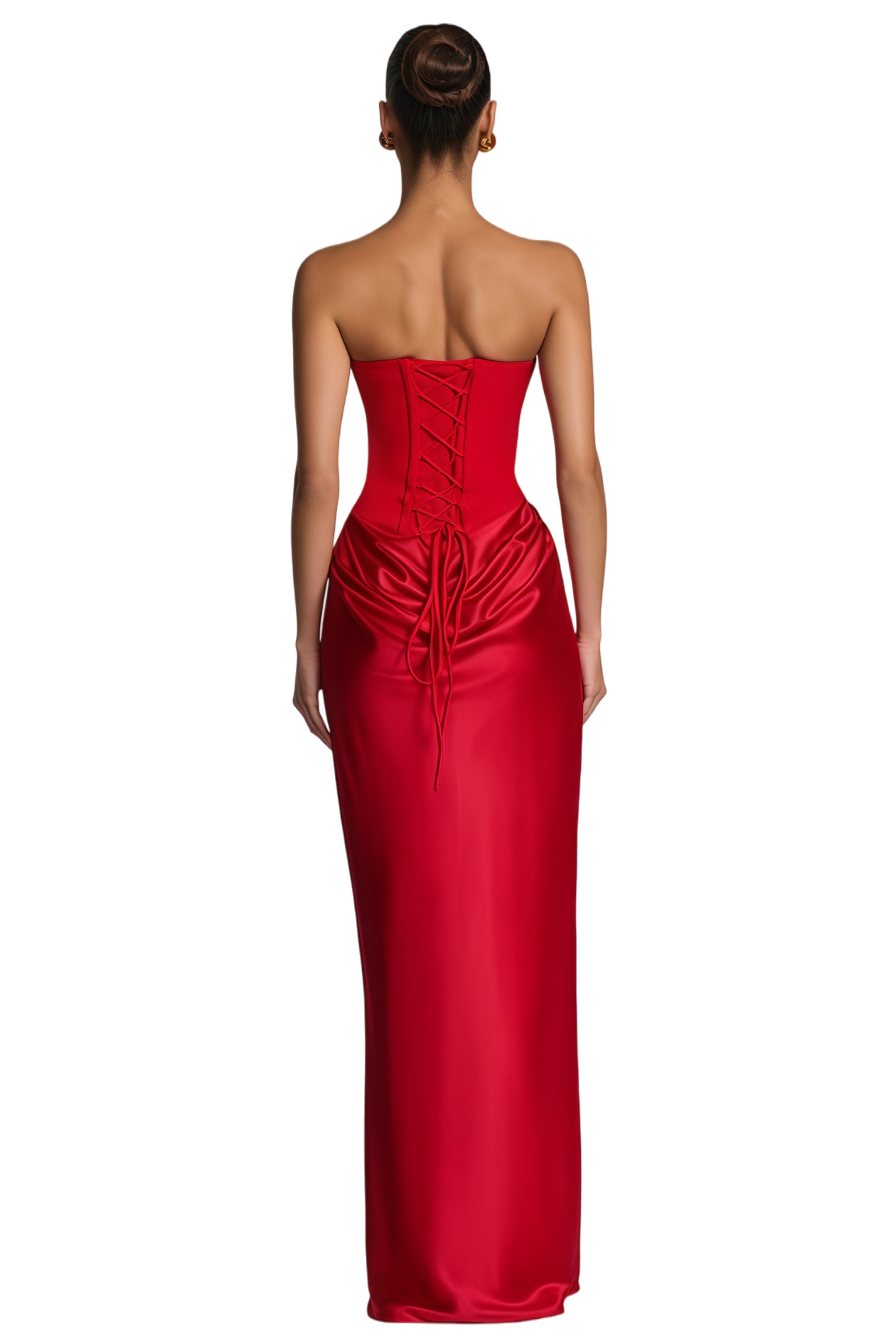 Introducing the Winifred Red Off Shoulder Draped Maxi Dress, a must-have addition to your wardrobe. This elegant design features an off-the-shoulder neckline with a sleeveless silhouette, enhanced by graceful draped detailing. The gown flows into a sweeping maxi-length hem and is secured with adjustable rear lace-up fastening. Elevate your style with this timeless and versatile dress.