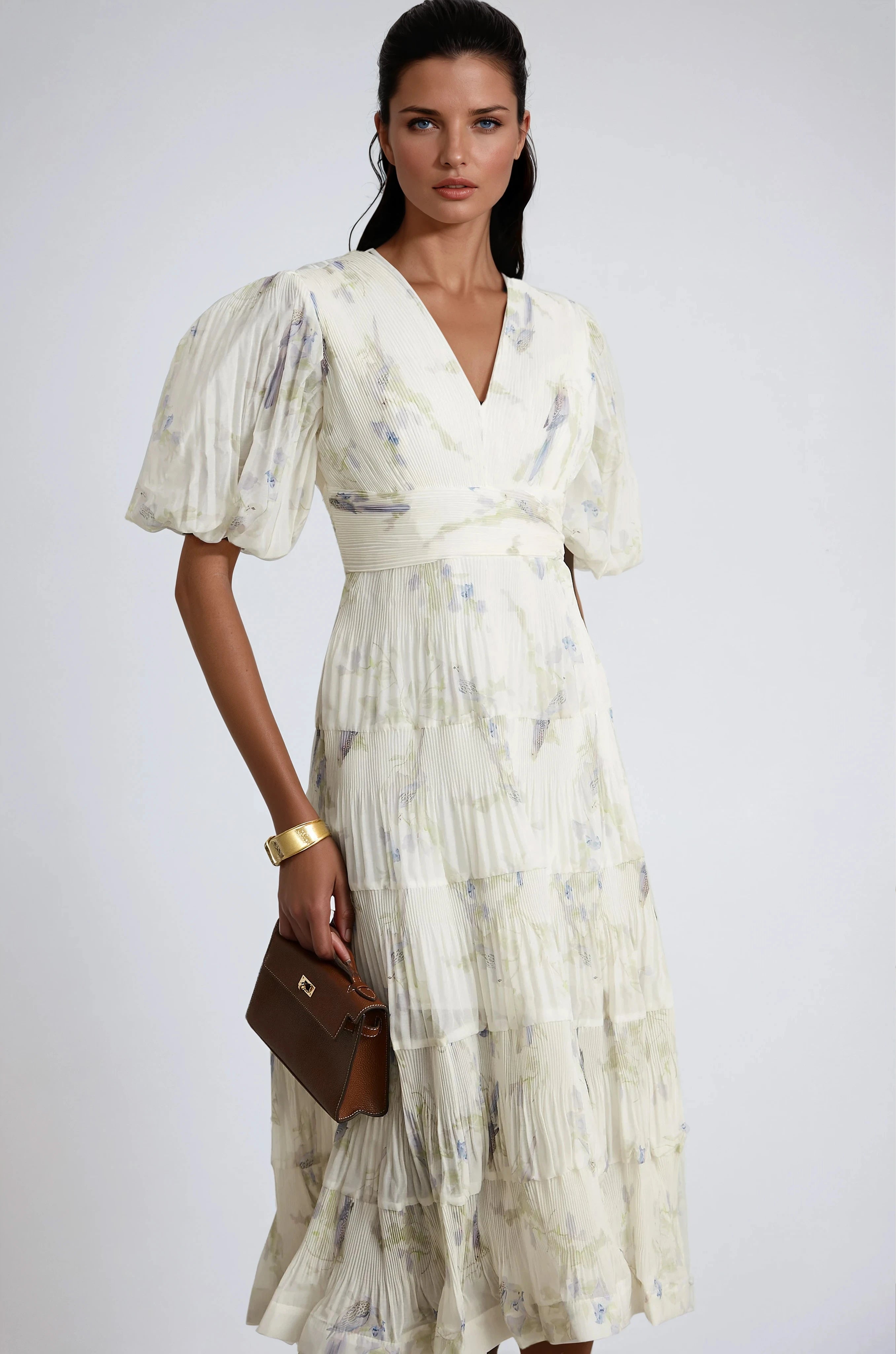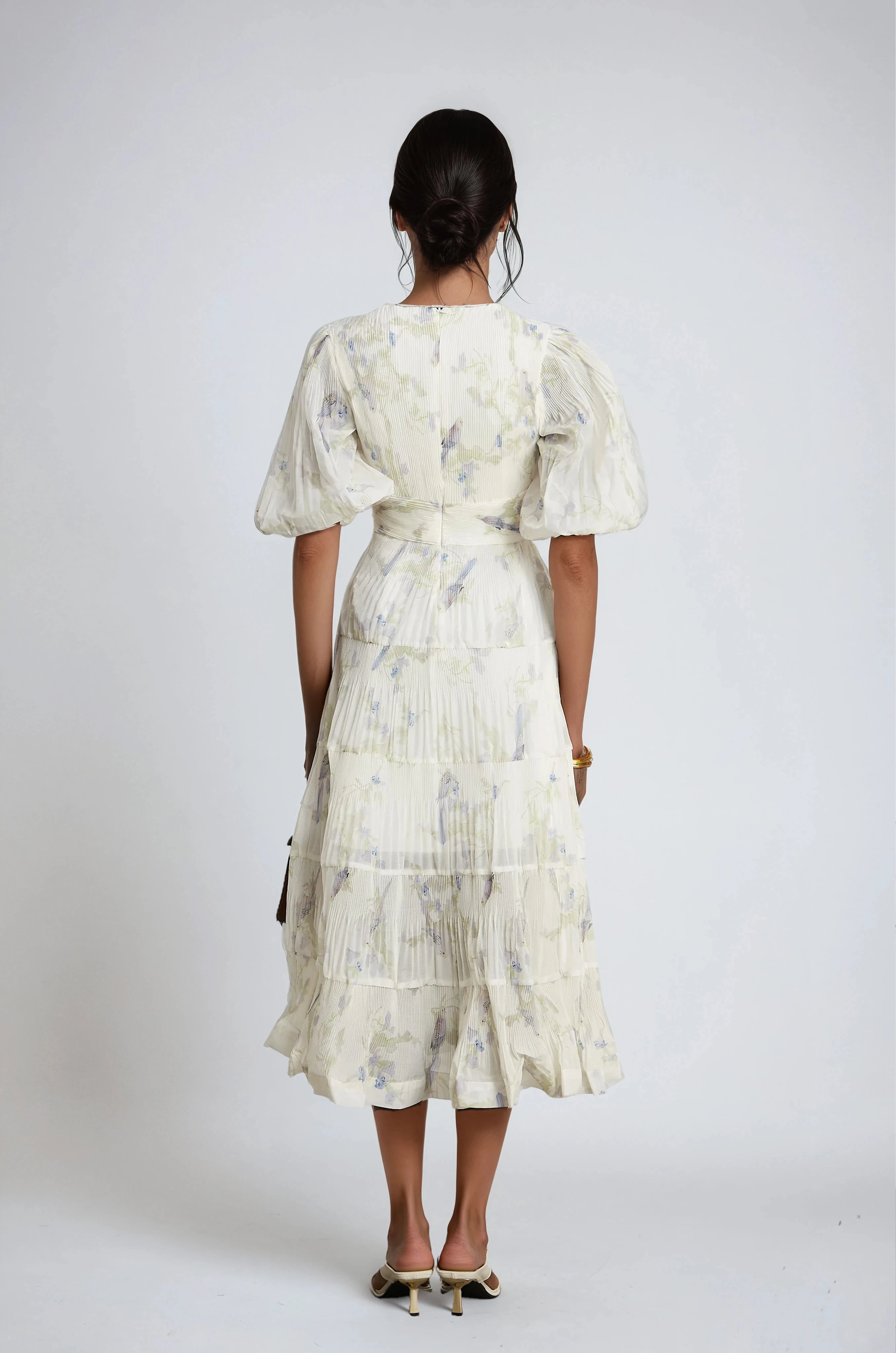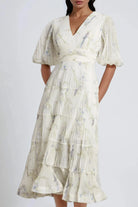 Ariane Midi Dress With V-Neck And Tiered Ruffles