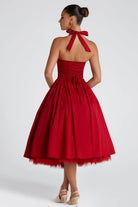 Elise Red Layered Flared Hem Midi Dress