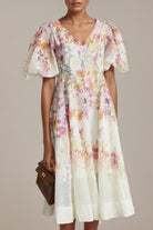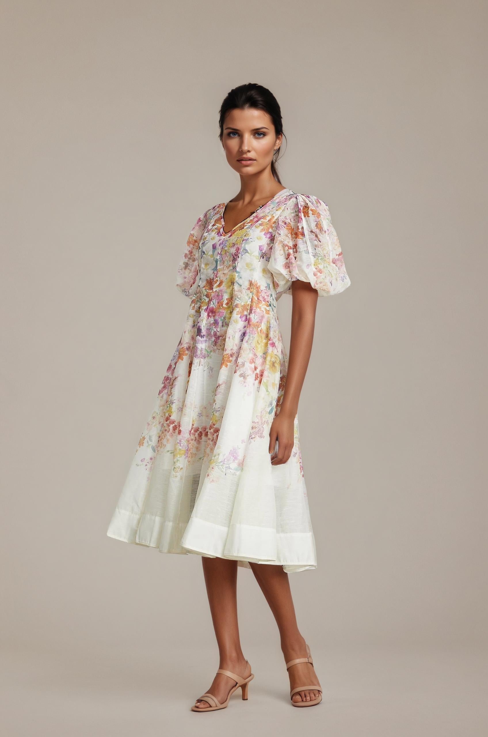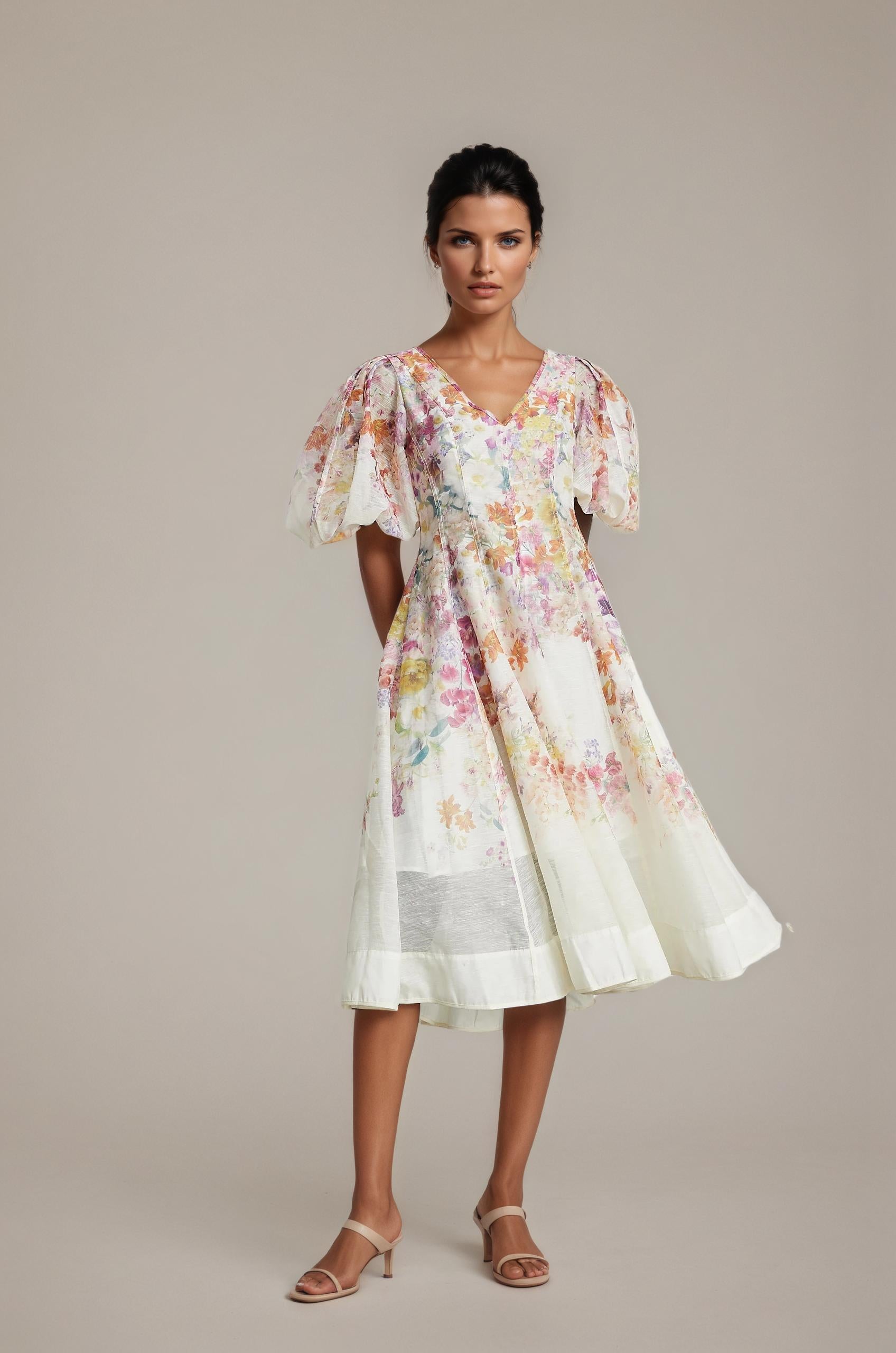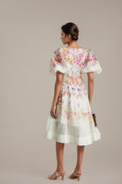 Isabeau Midi Dress With Floral Print and Puff Sleeves
