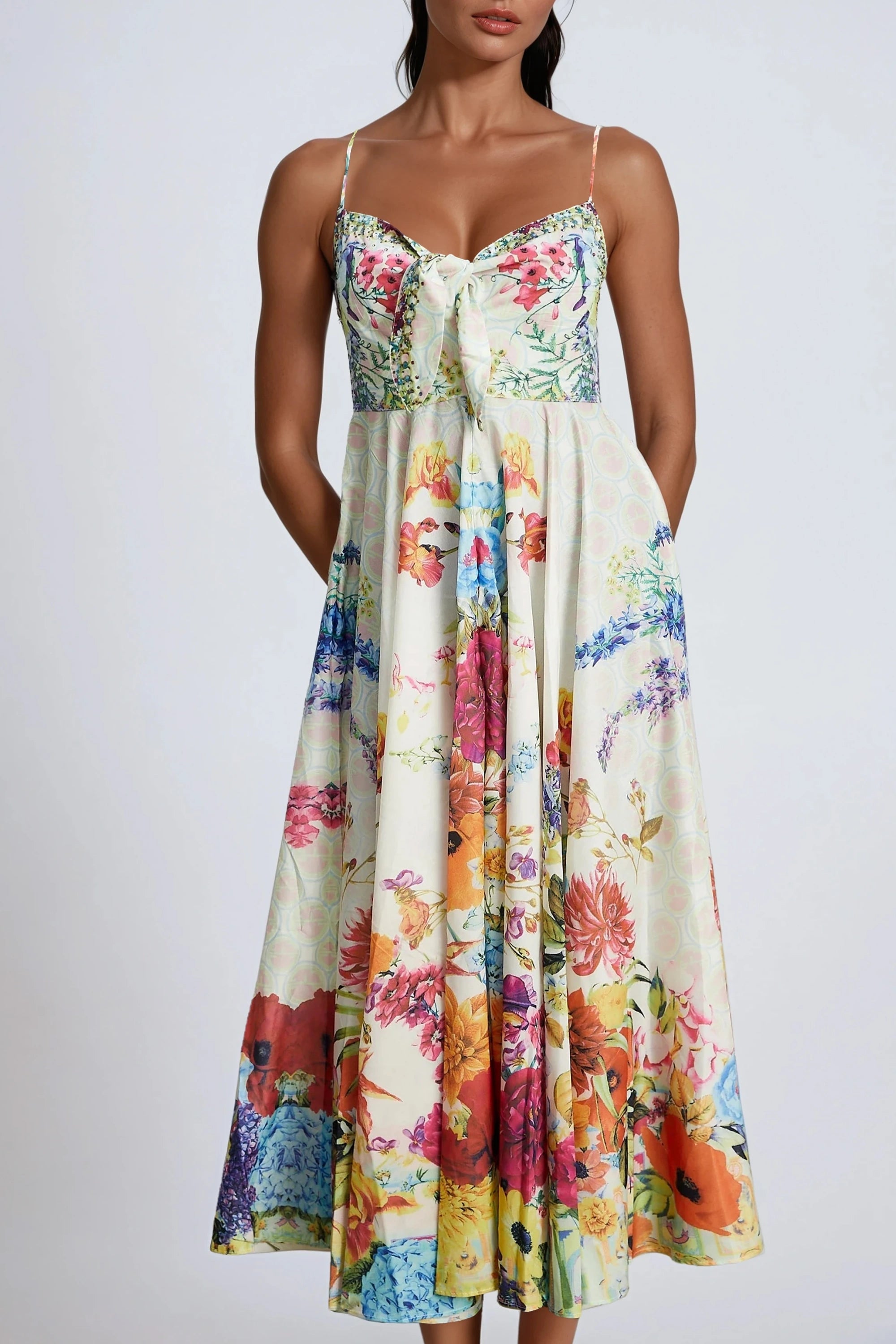 Sylvie Midi Dress With Tie-Up And Floral Print