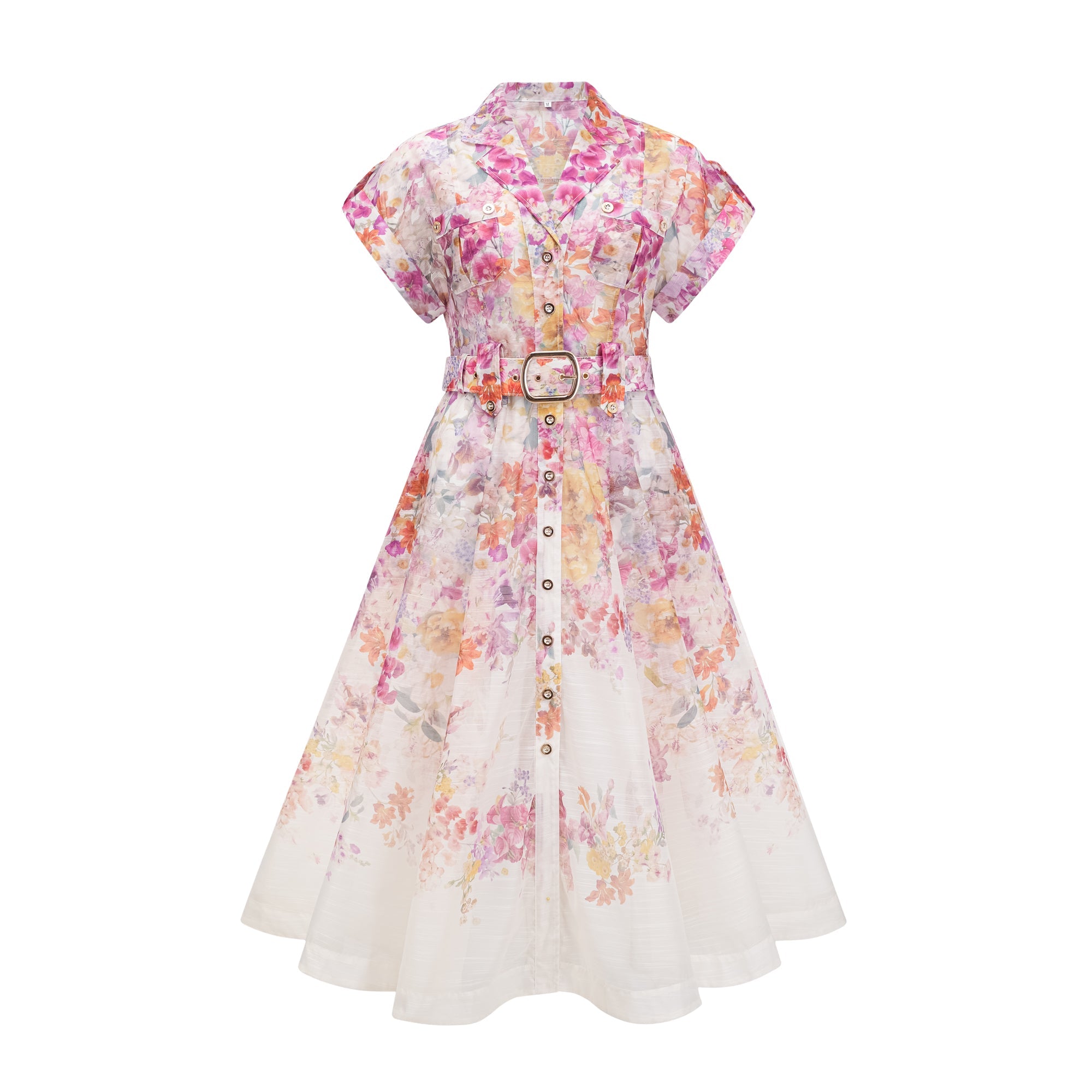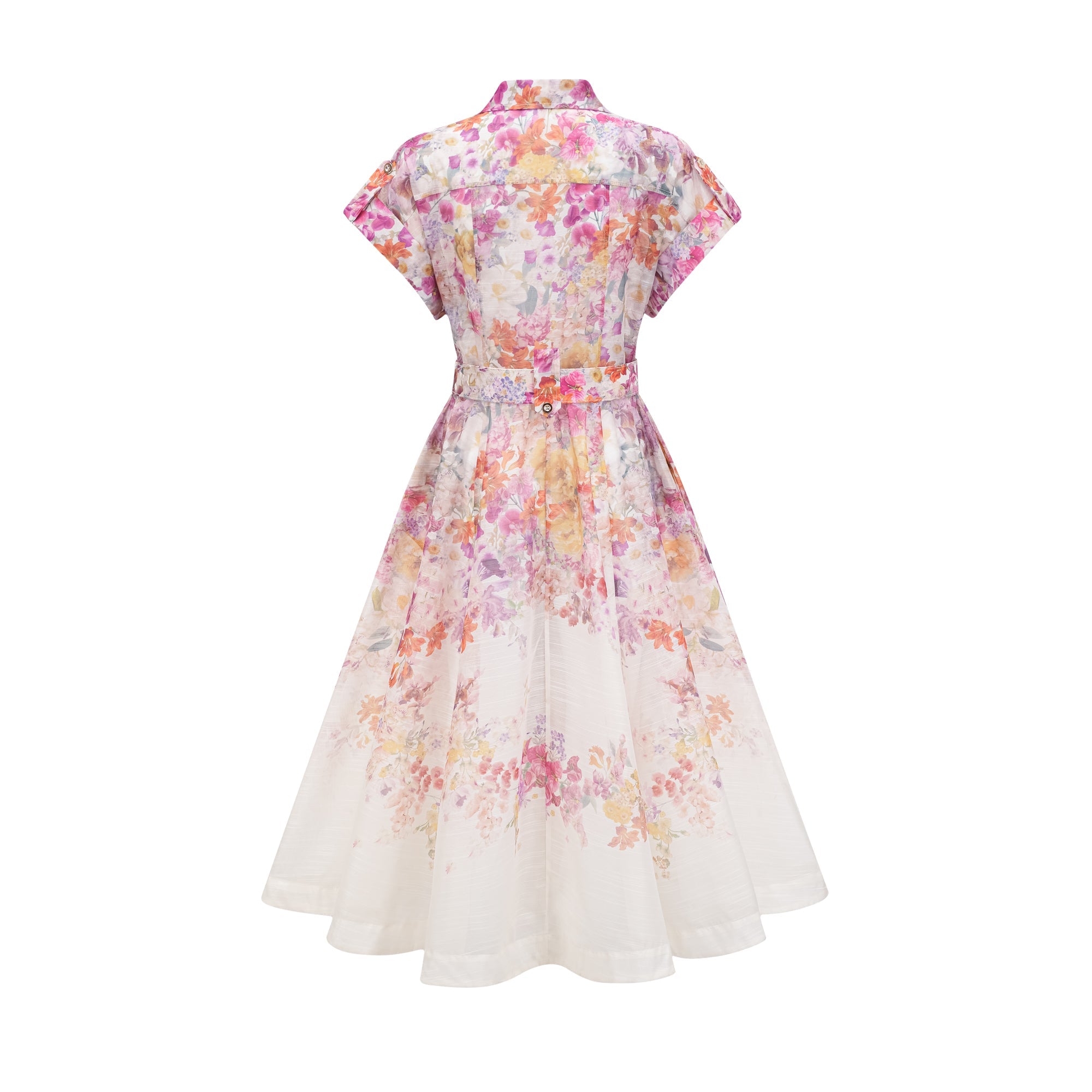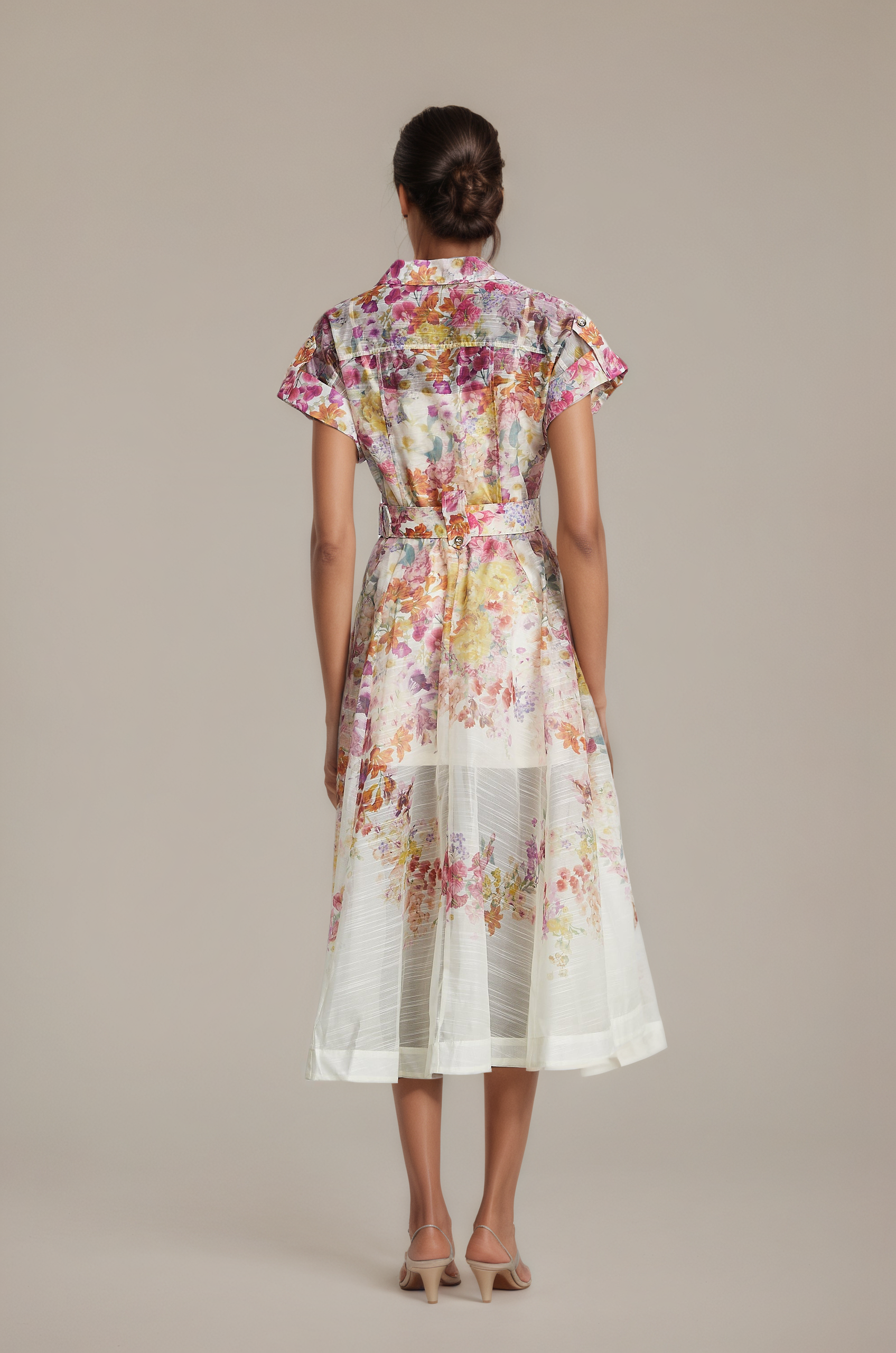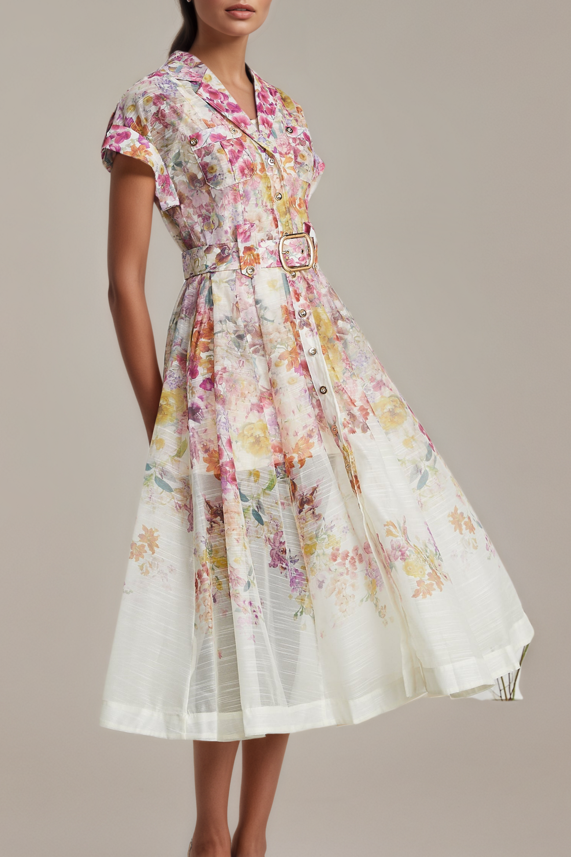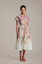 Thaïs Midi Dress With Floral Print and Classic Collar