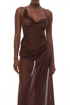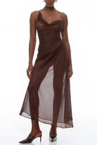 Ursula Brown Asymmetrical Ruched Midi Dress