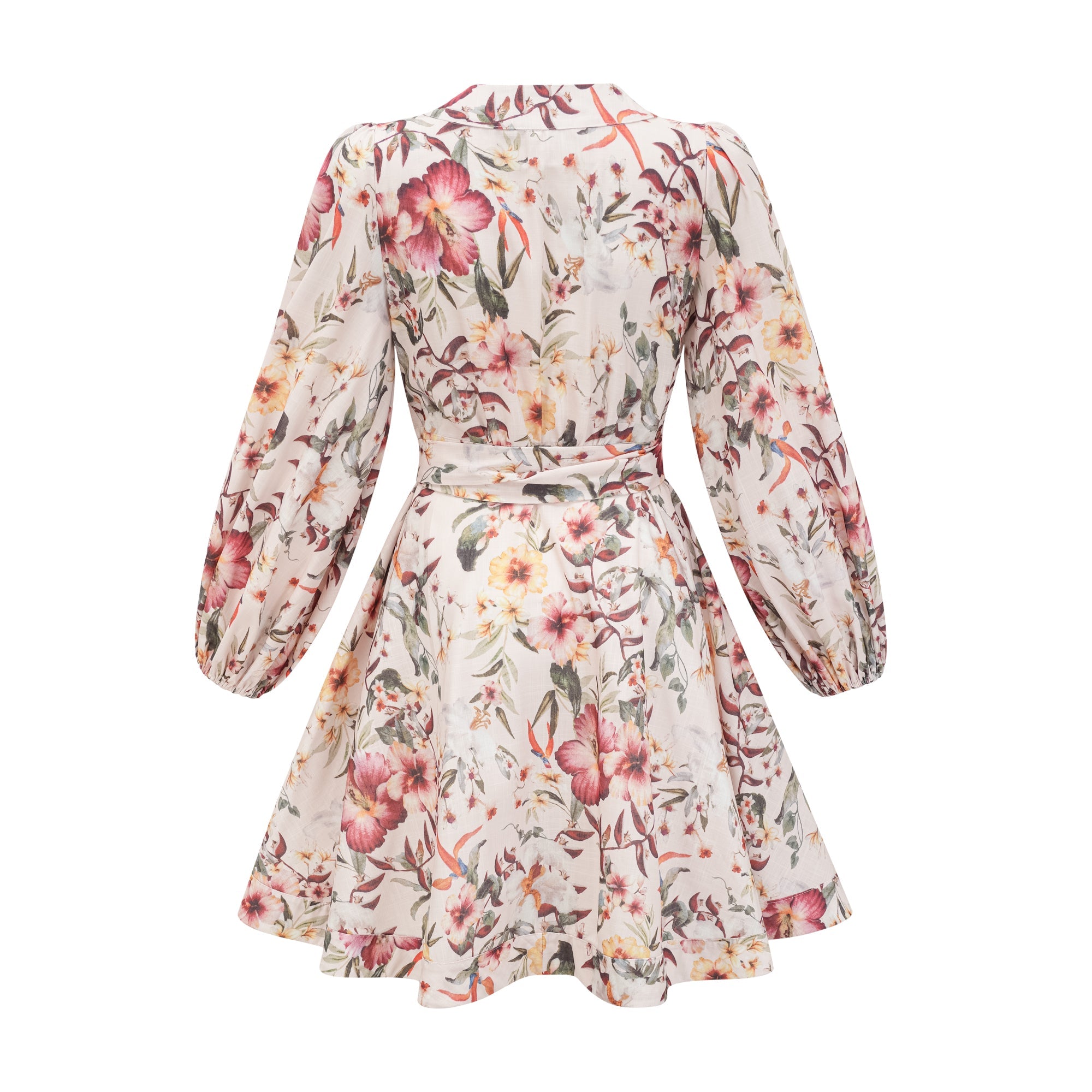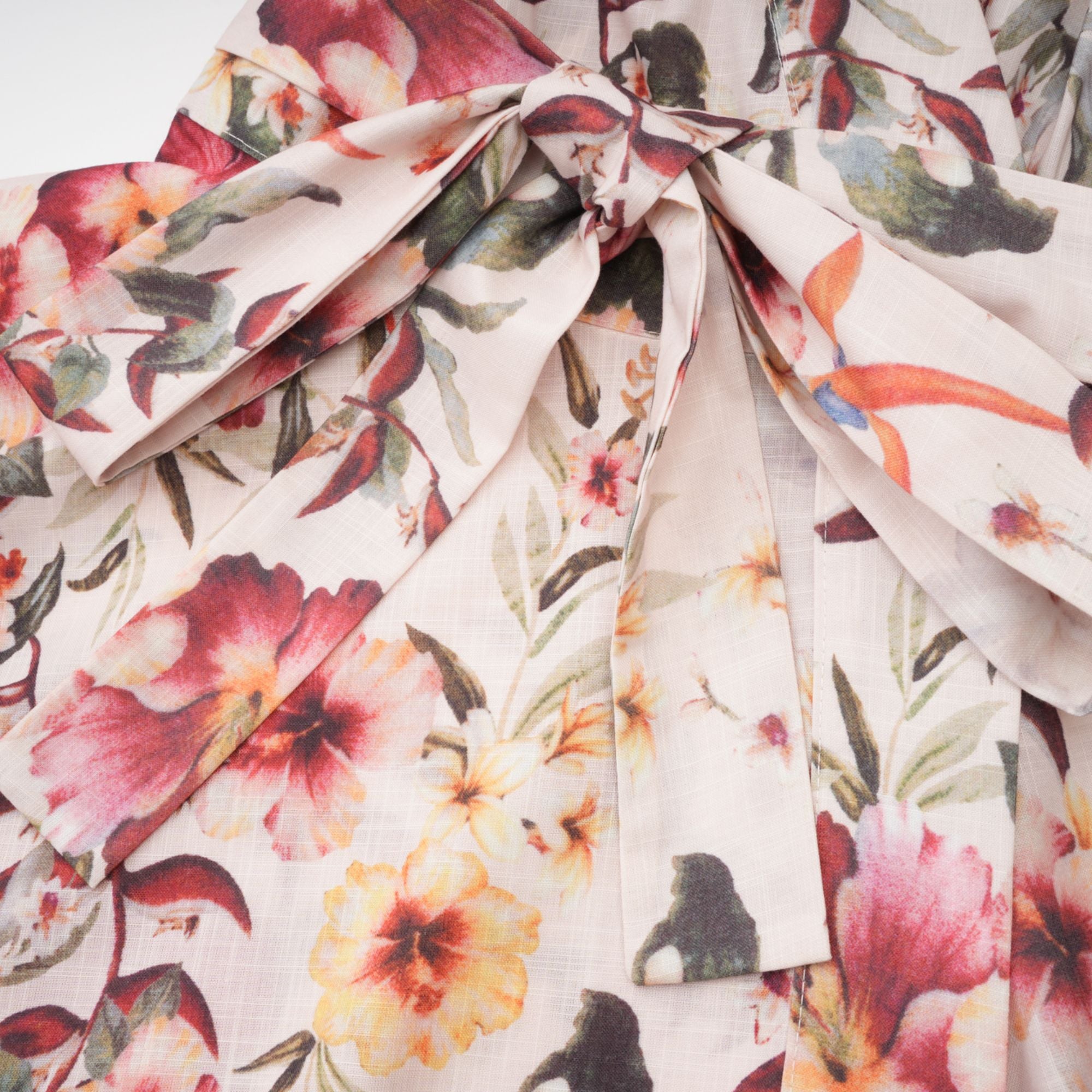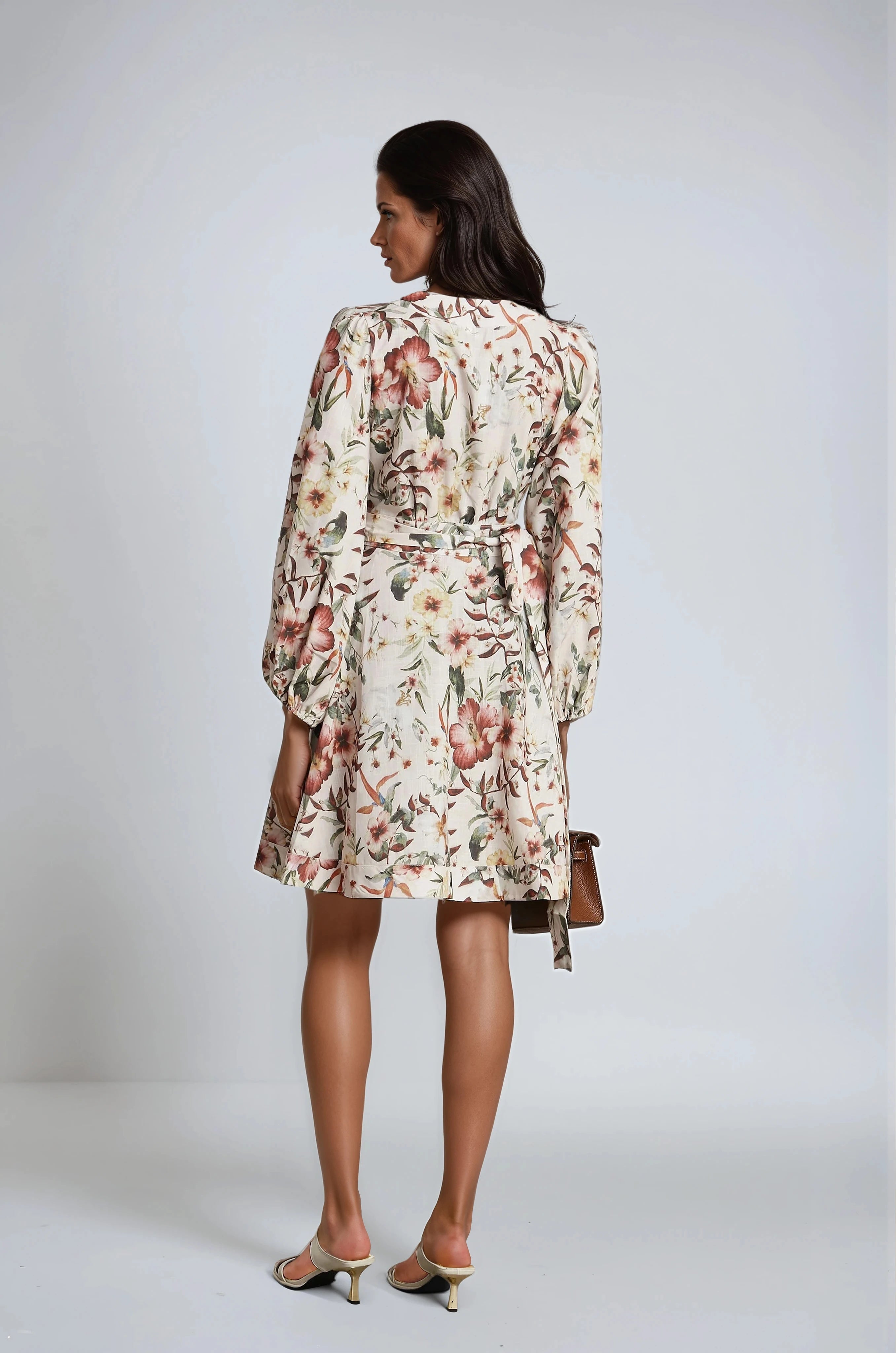 Audrey Mini Wrap Dress With Belt And Floral Linen
