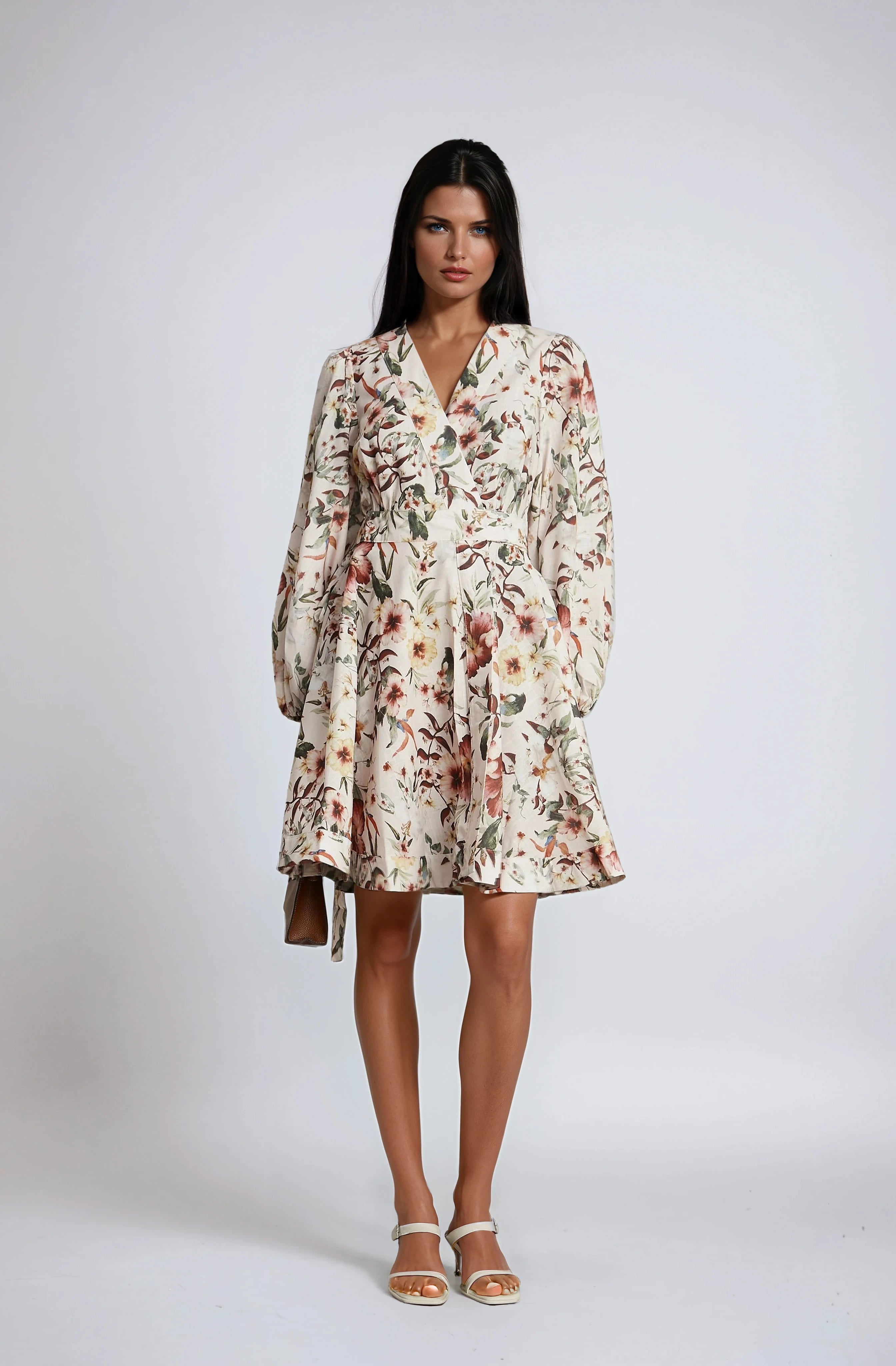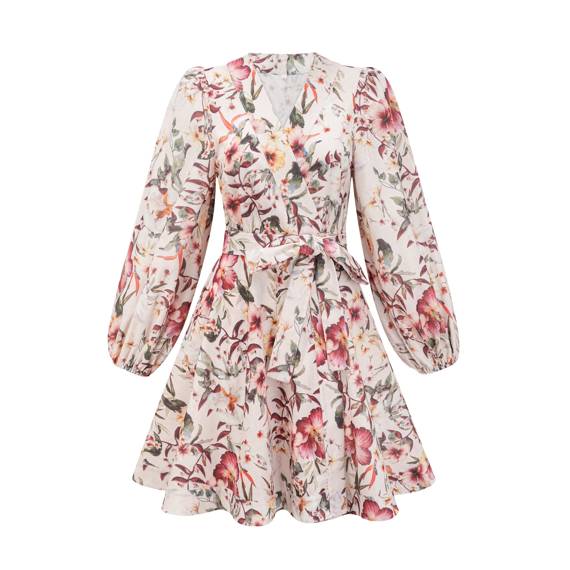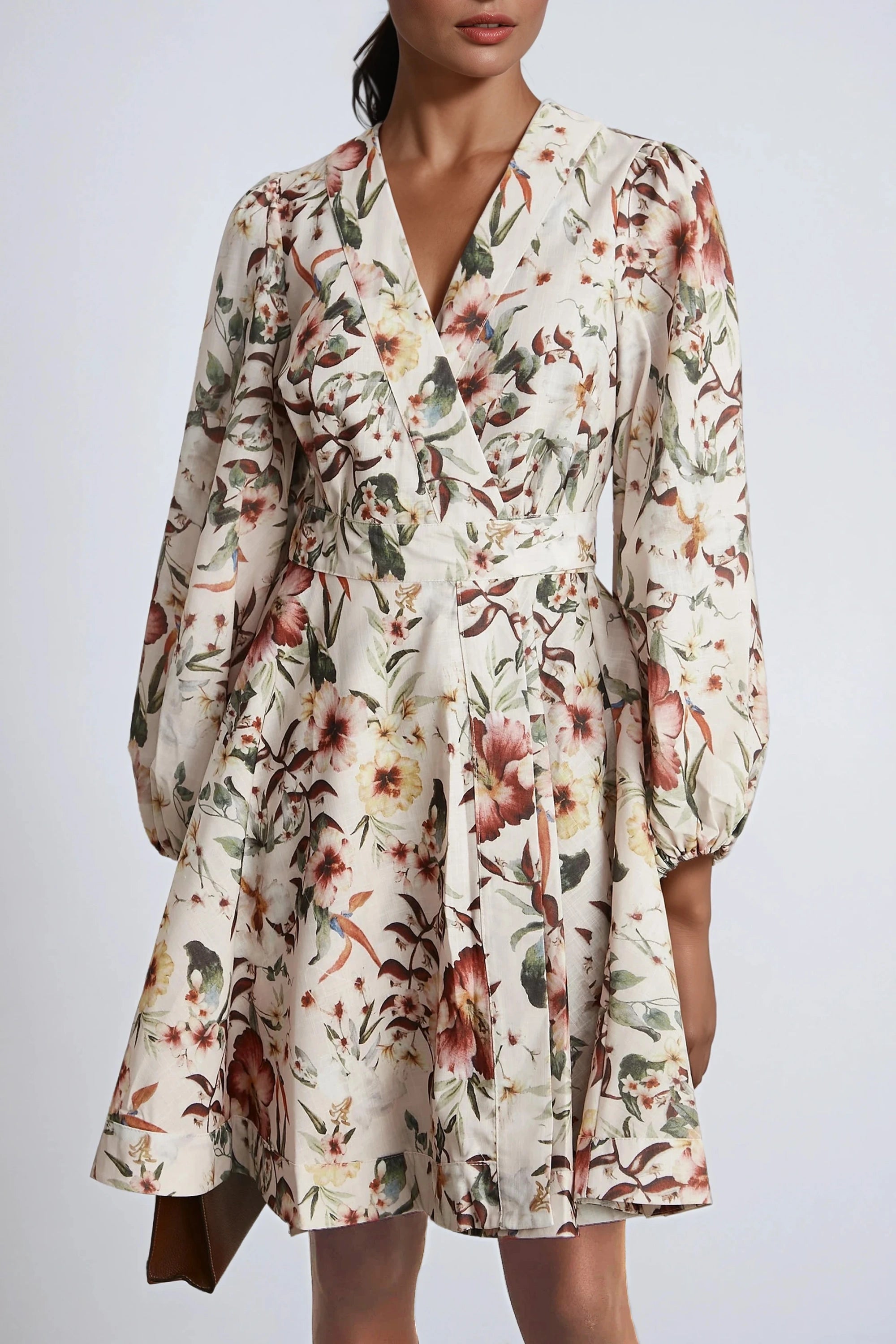 Audrey Mini Wrap Dress With Belt And Floral Linen