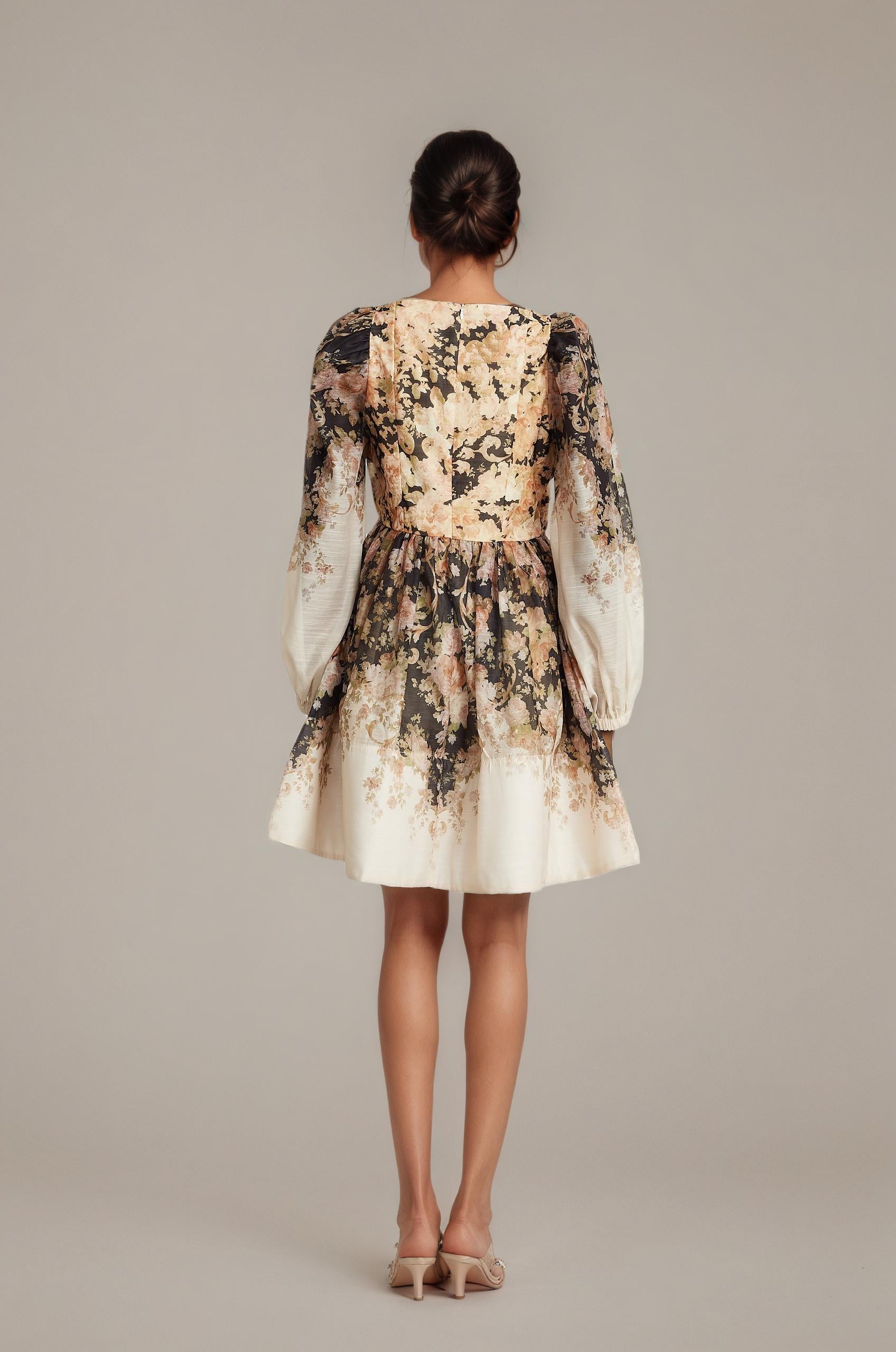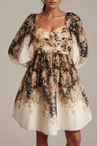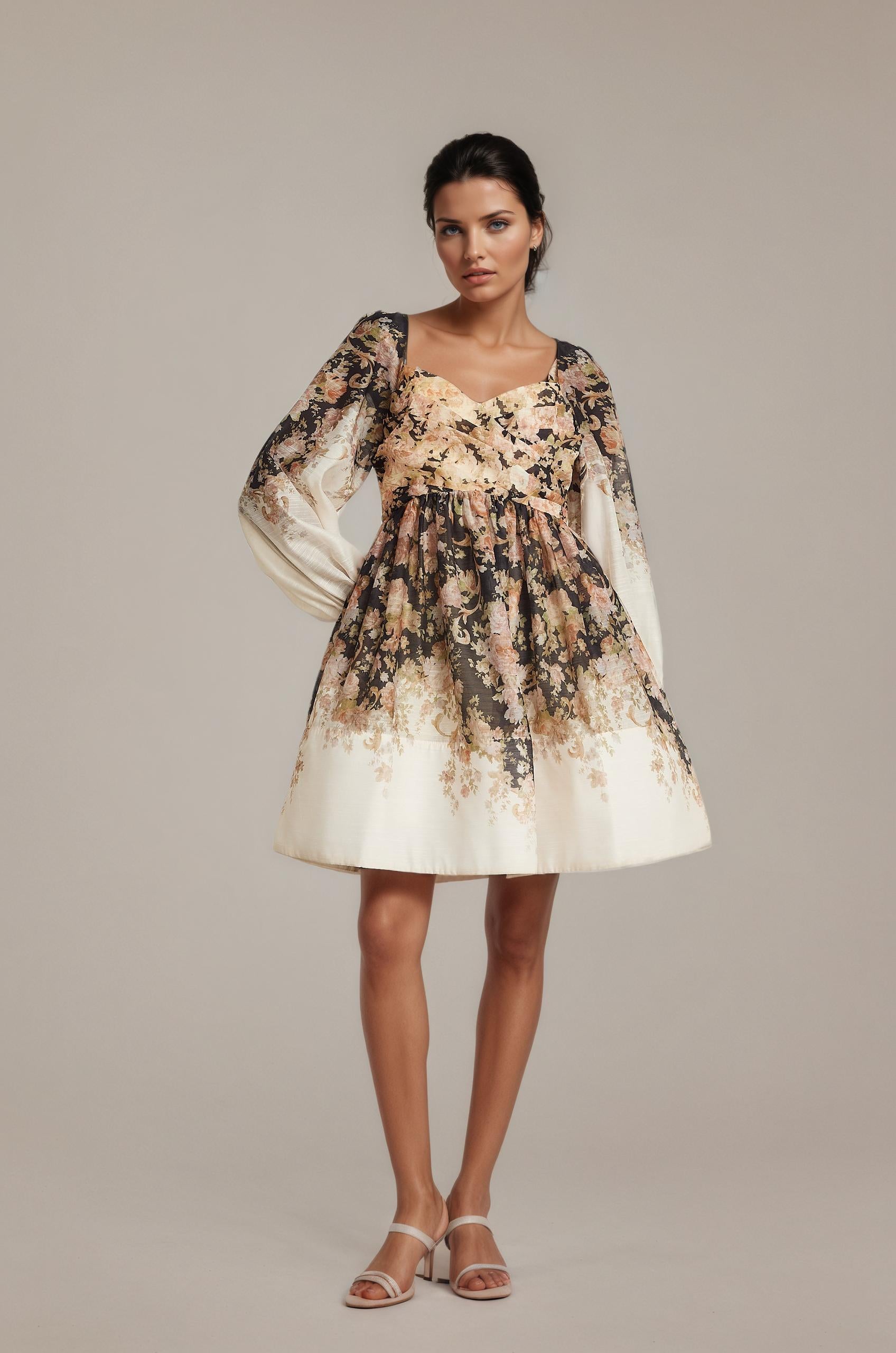 Introducing the Béatrice Mini Dress With Floral Print, a must-have addition to your wardrobe. This dress features elegant puff sleeves and a flattering flared skirt. With its cinched waist and sweetheart neckline, it offers a perfect fit. Elevate your style with this elegant and versatile dress.