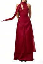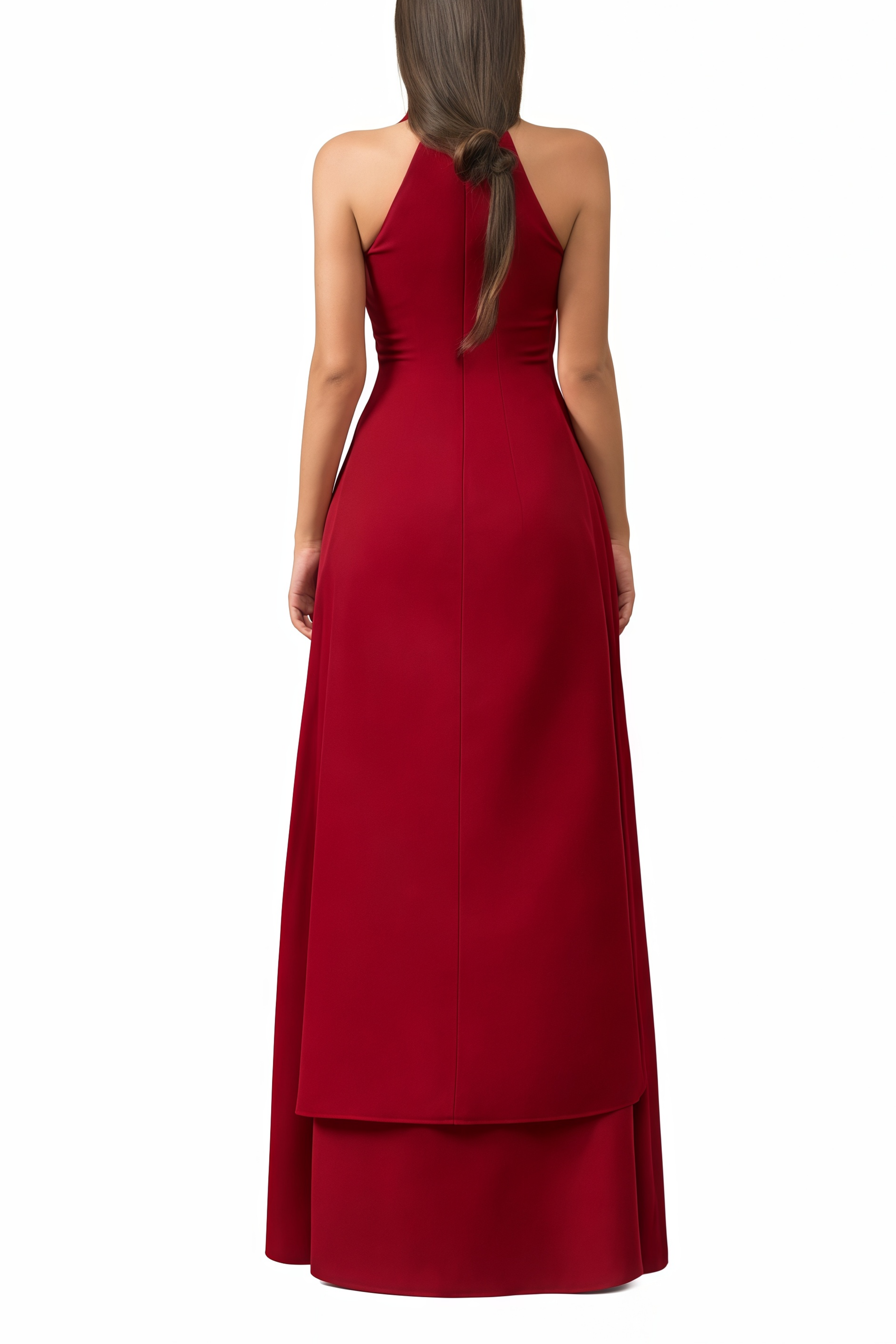 Bess Red Layered High Neck Maxi Dress