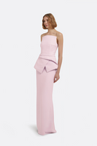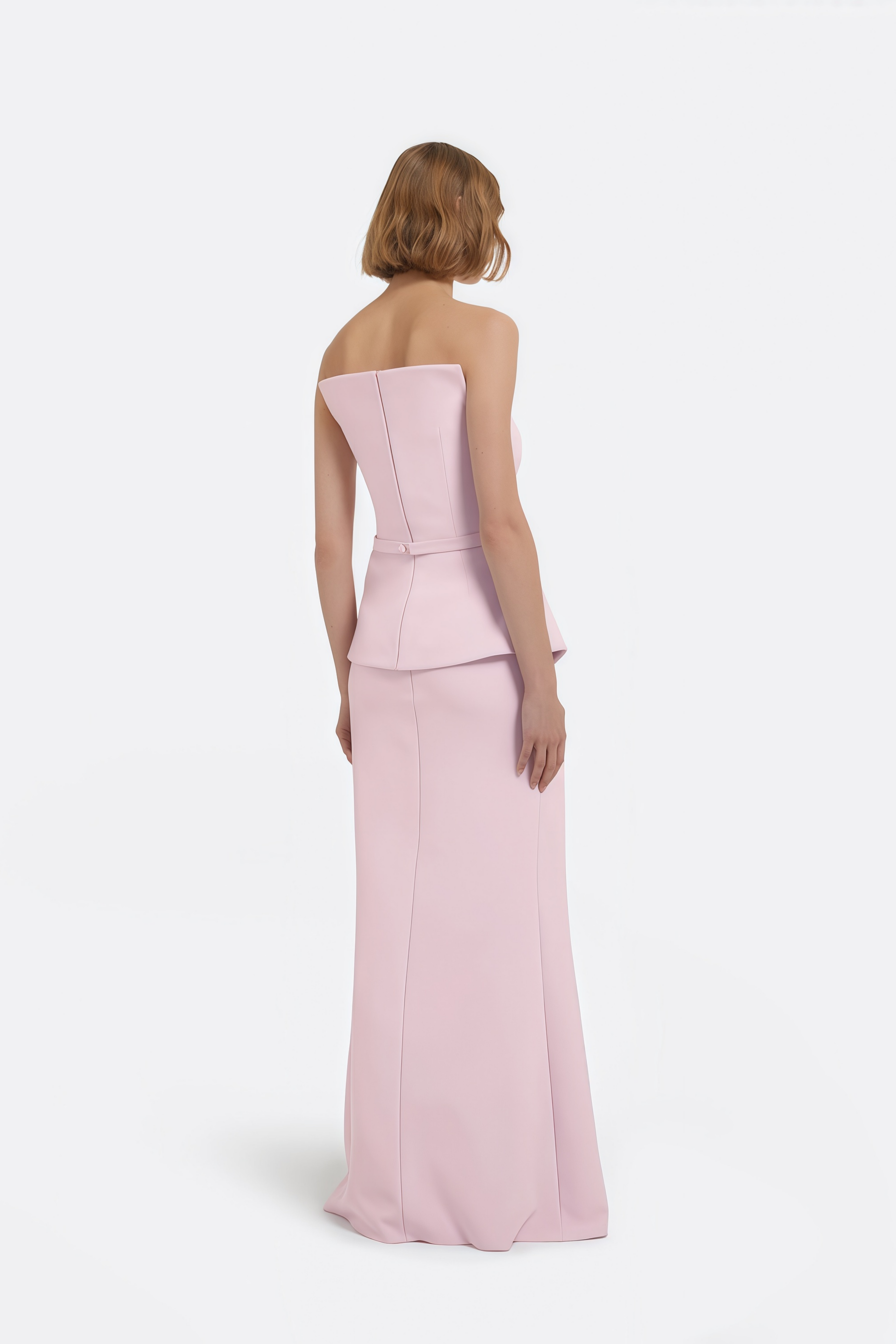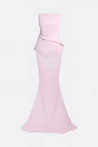 Daphne Pink Strapless Asymmetric Peplum Maxi Dress