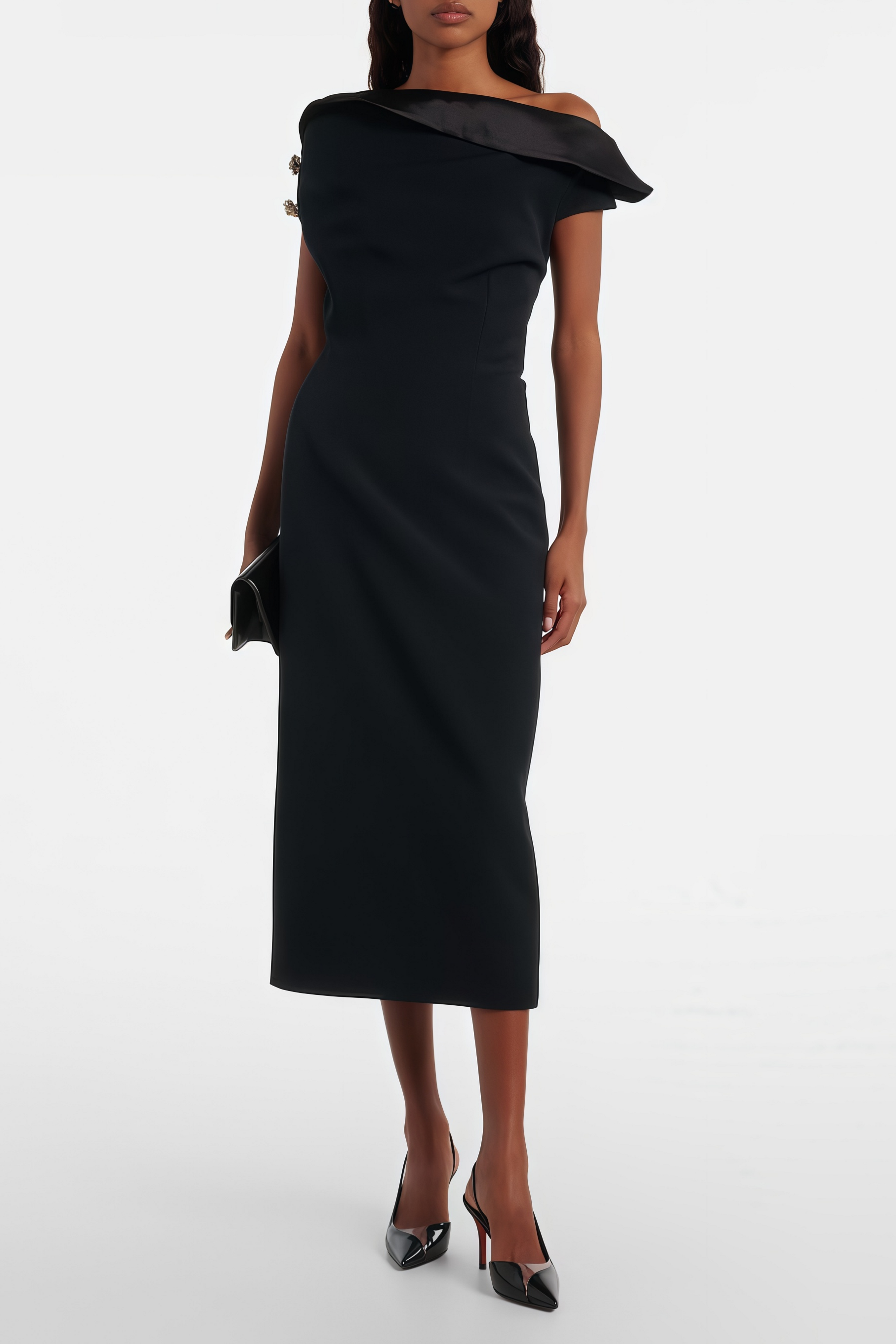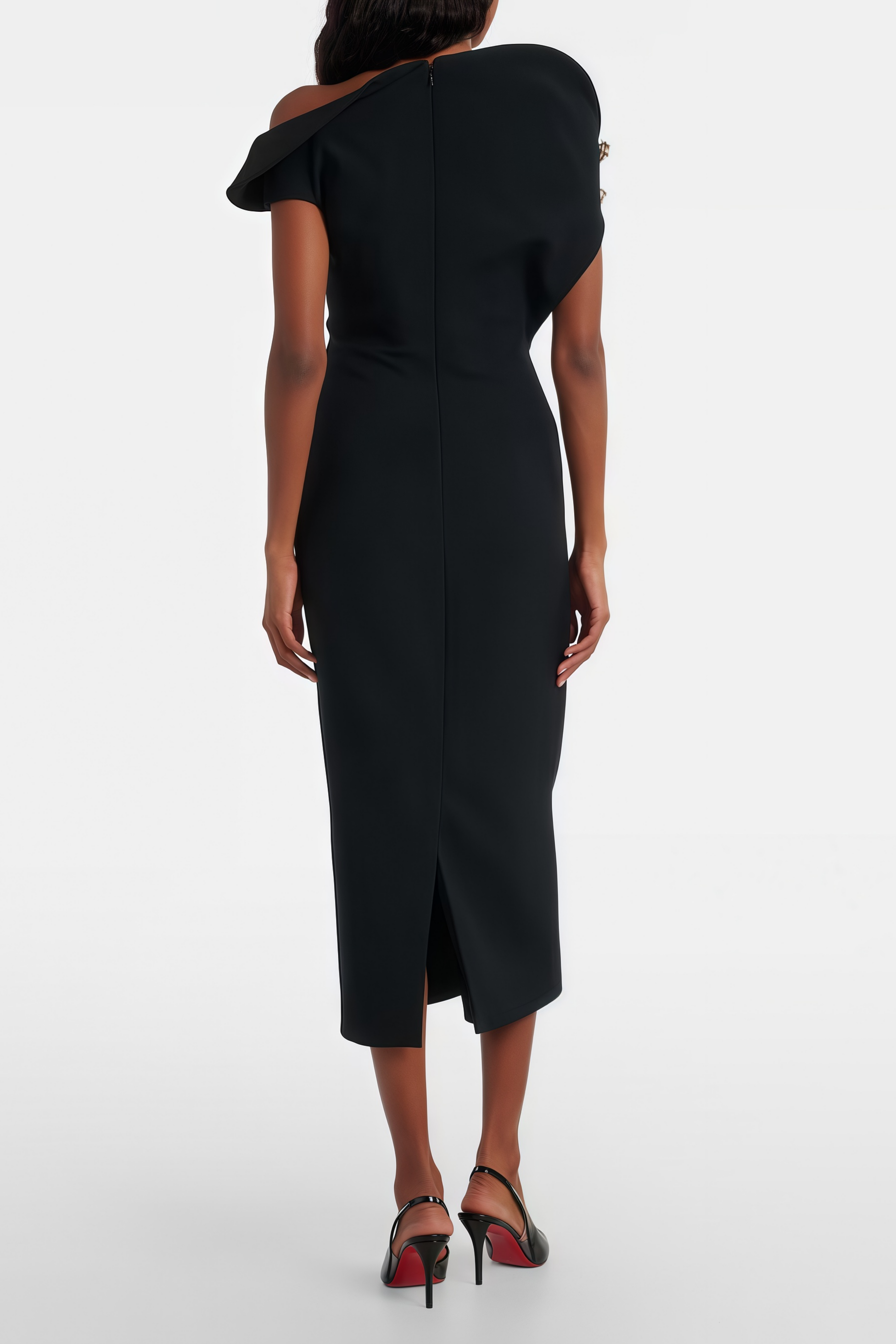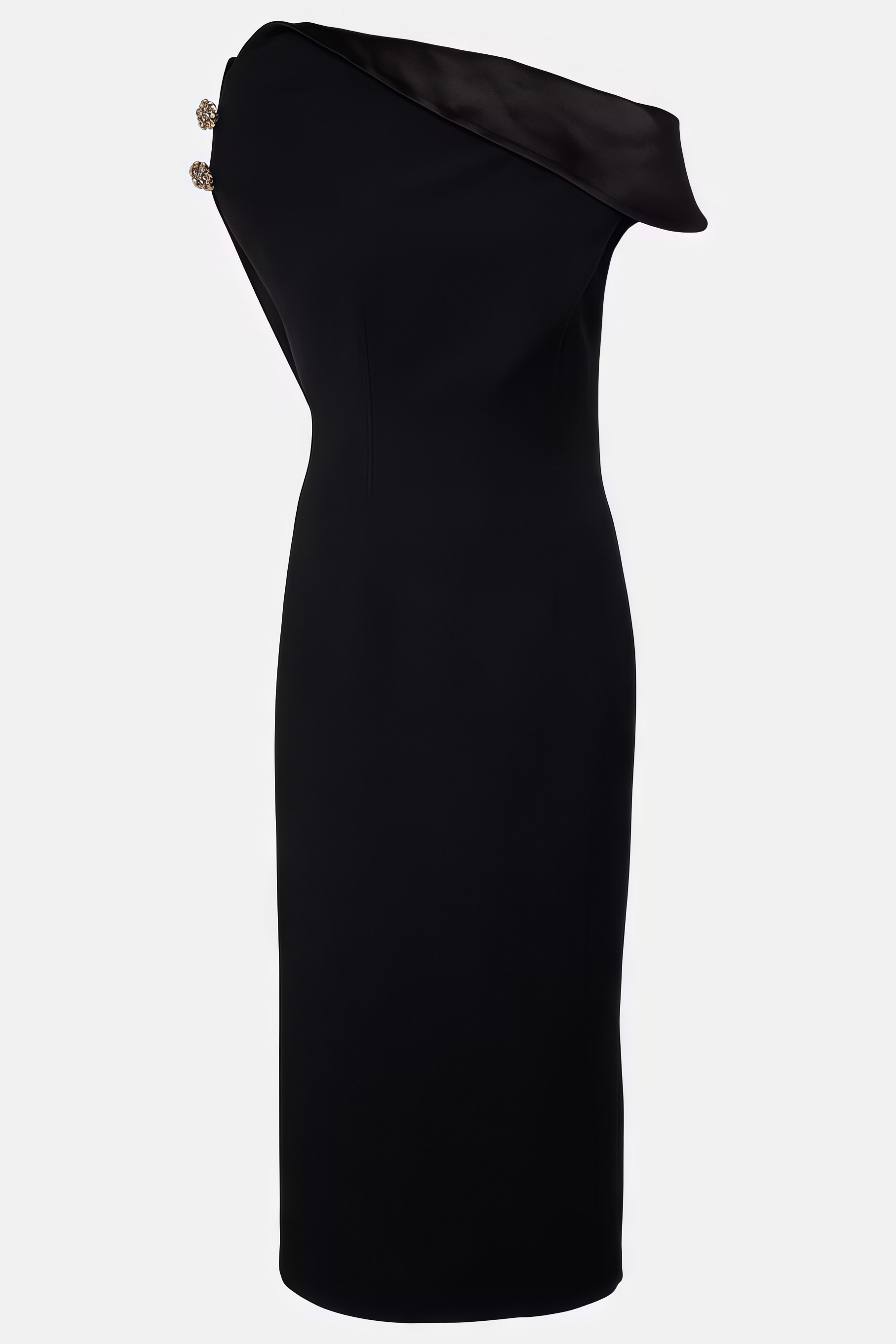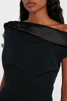 Galatea Black Asymmetric Cap Sleeve Midi Dress