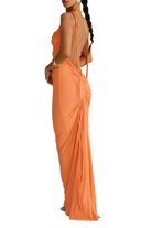 Gustave Peach Orange Open Back Ruched Maxi Dress