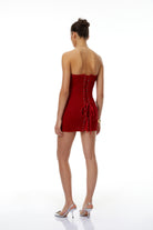 Hunter Red Off Shoulder Lace Up Mini Dress