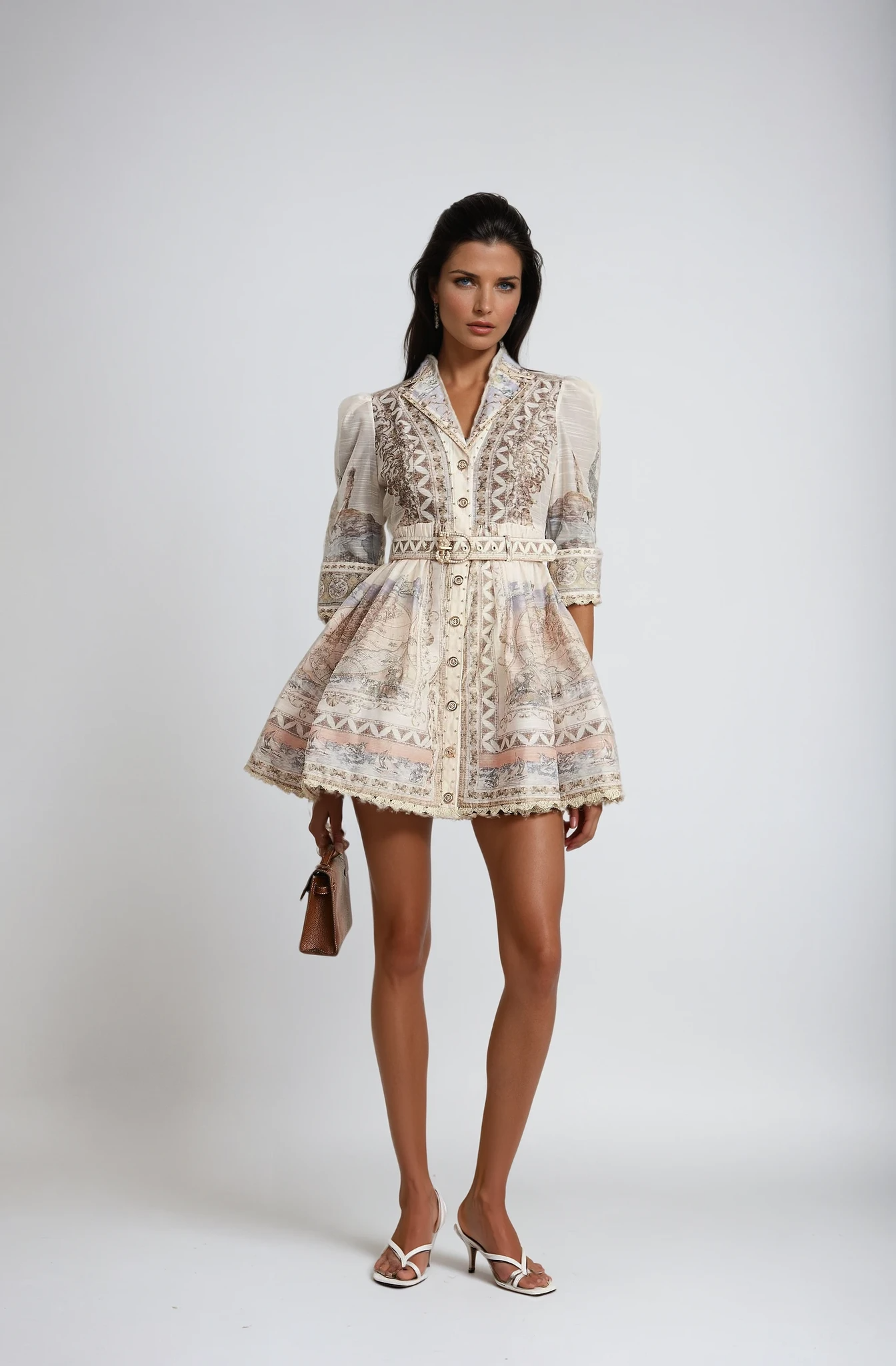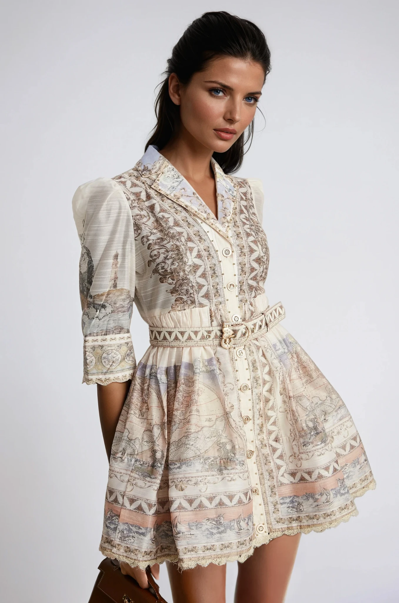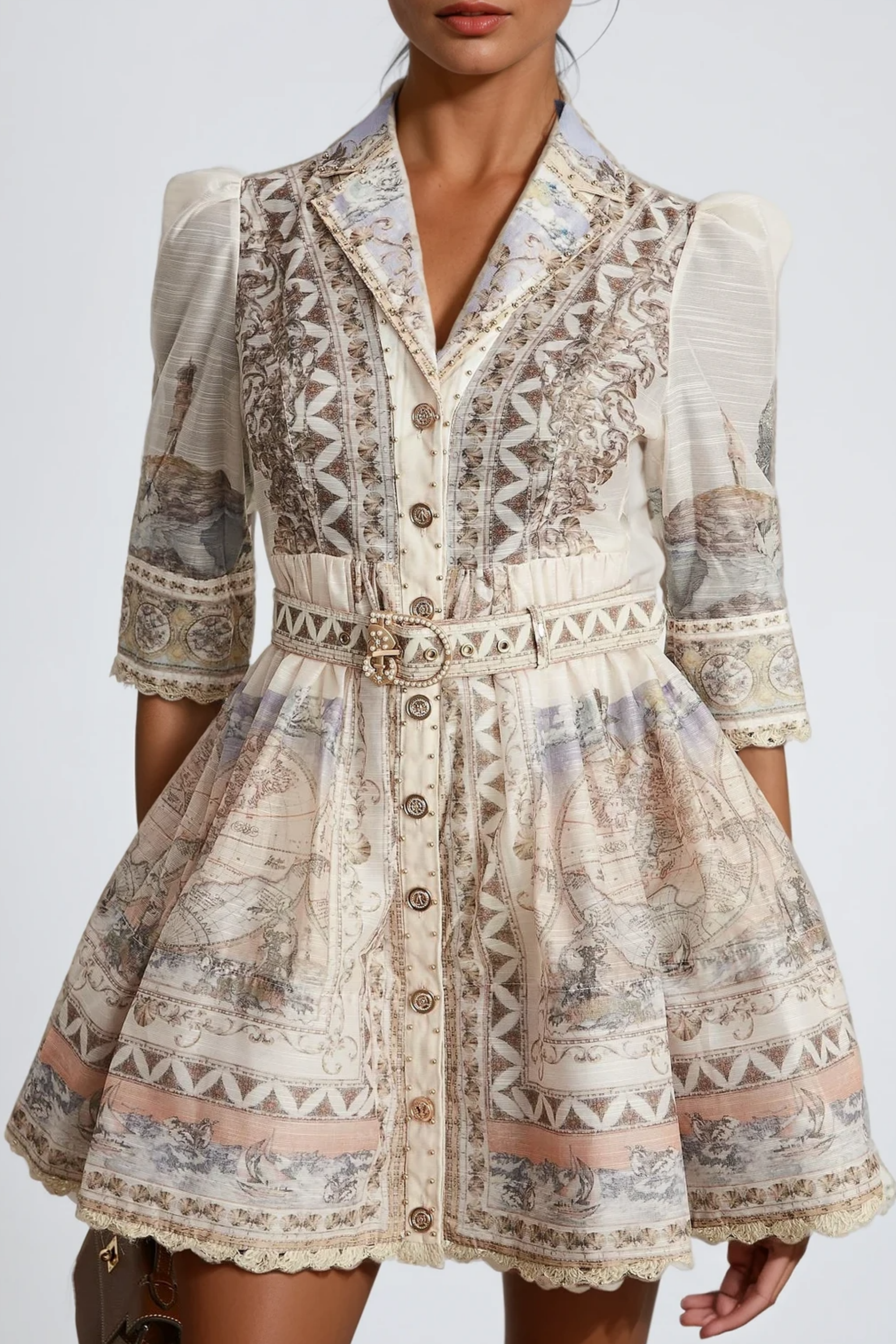 Joséphine Mini Dress With V-Neck & Classic Belt