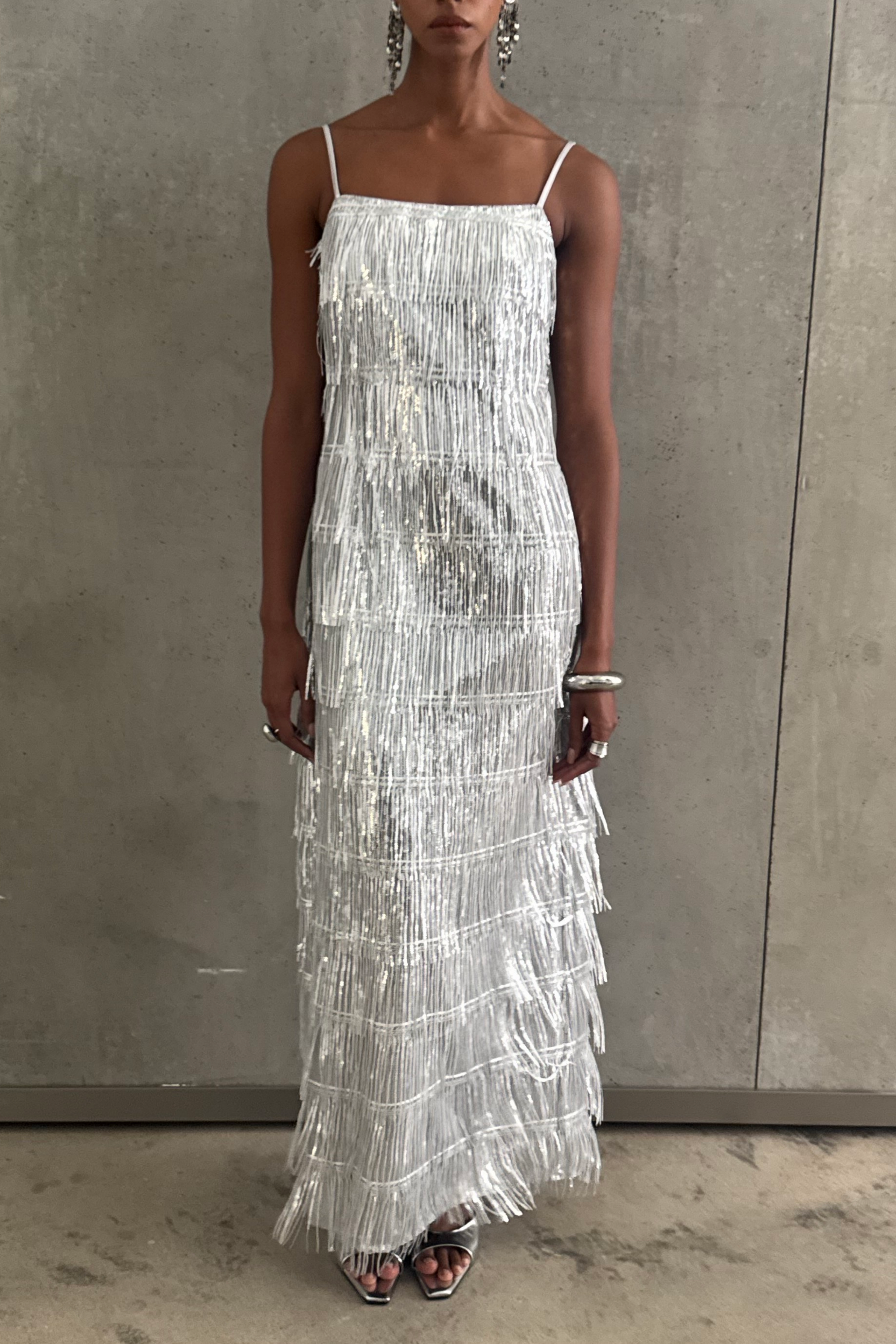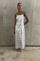 Zinnia Silver Fringed Design Maxi Dress