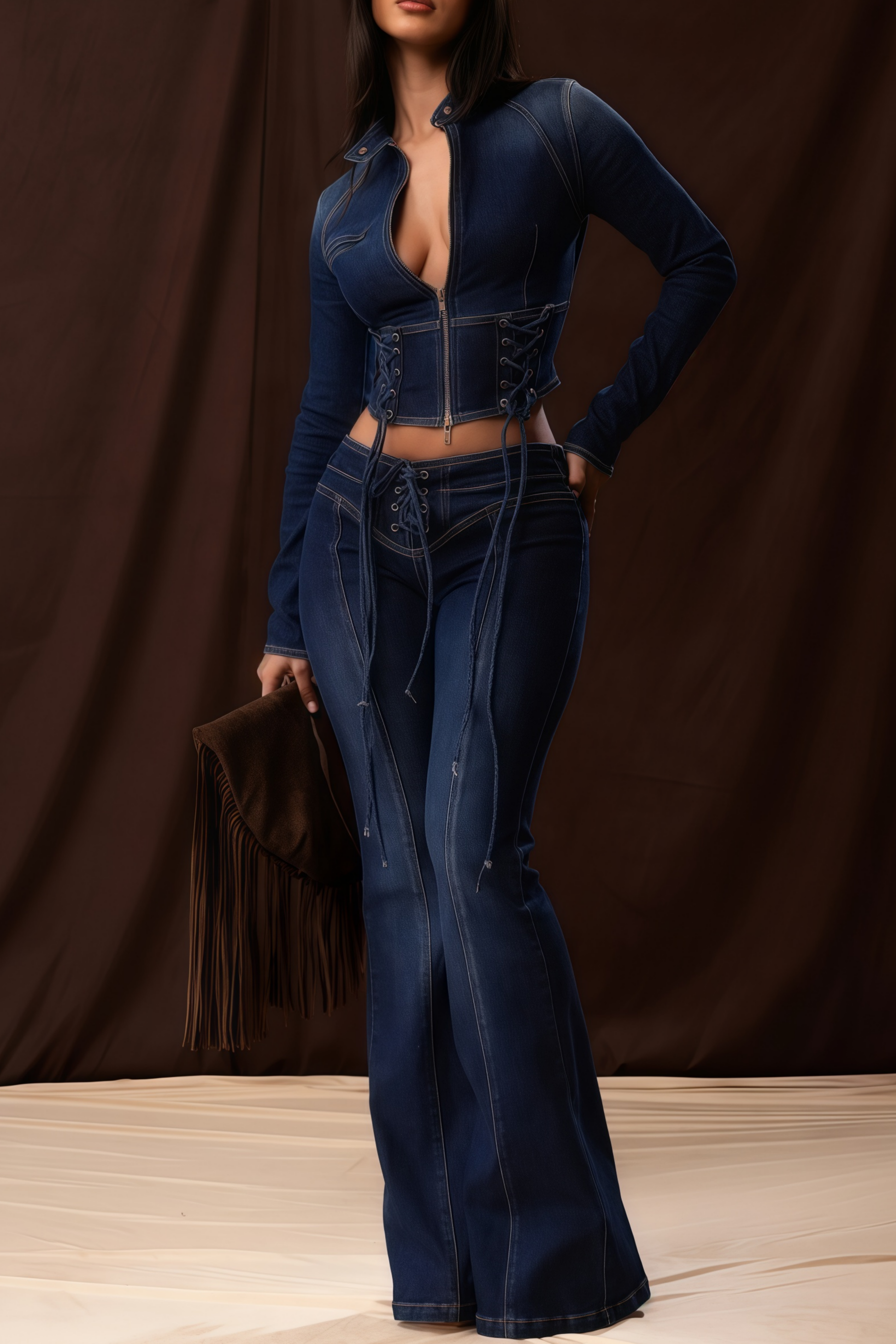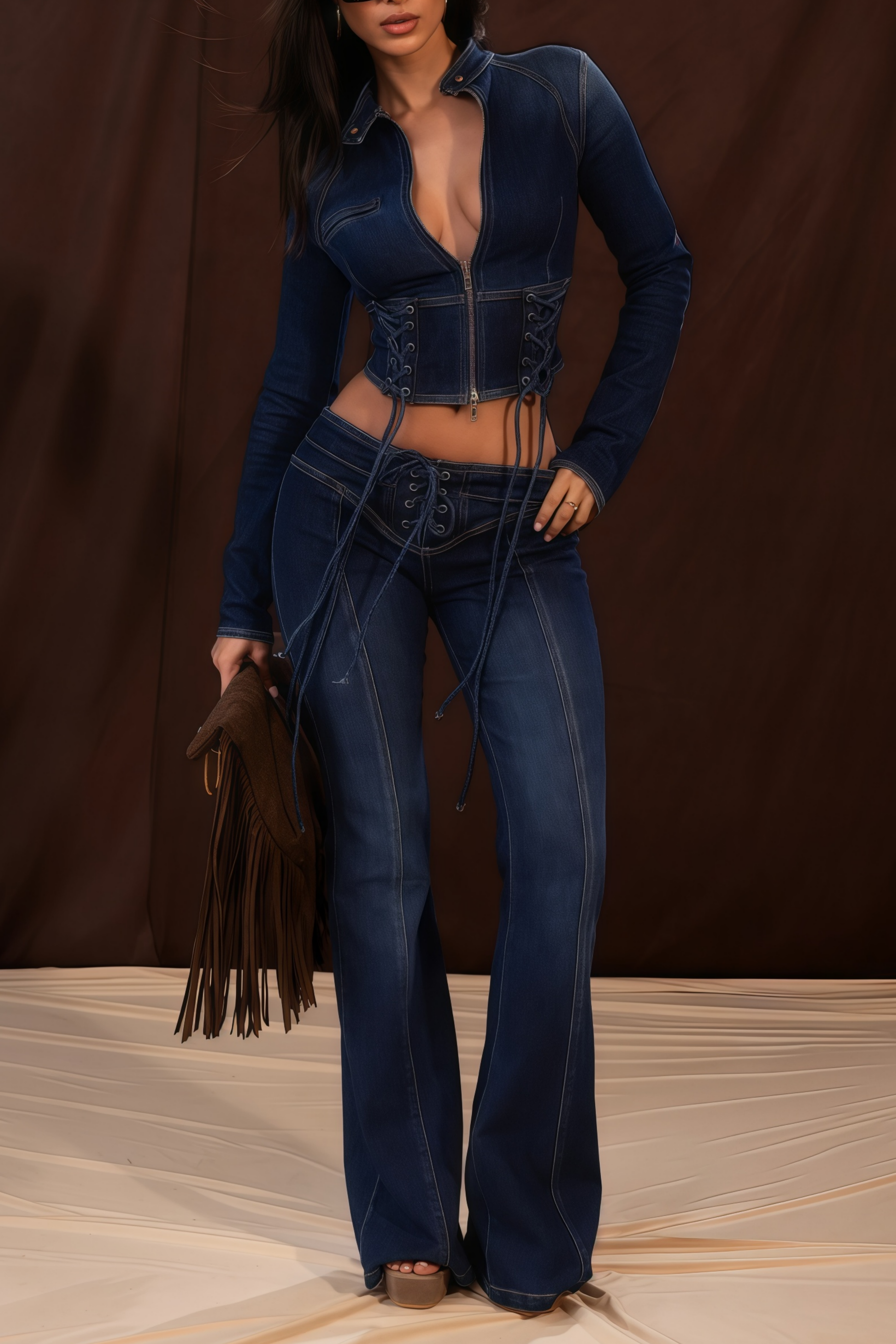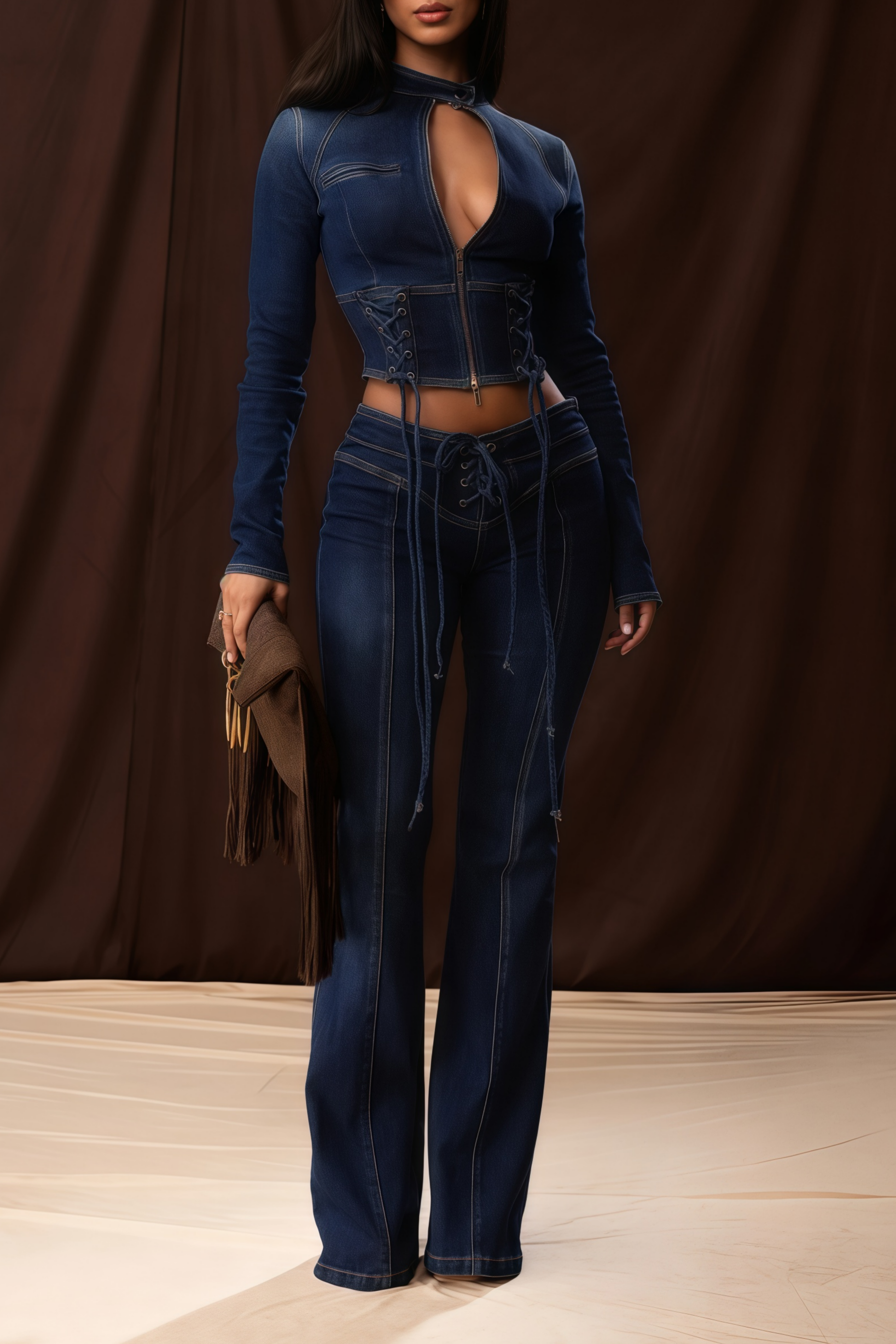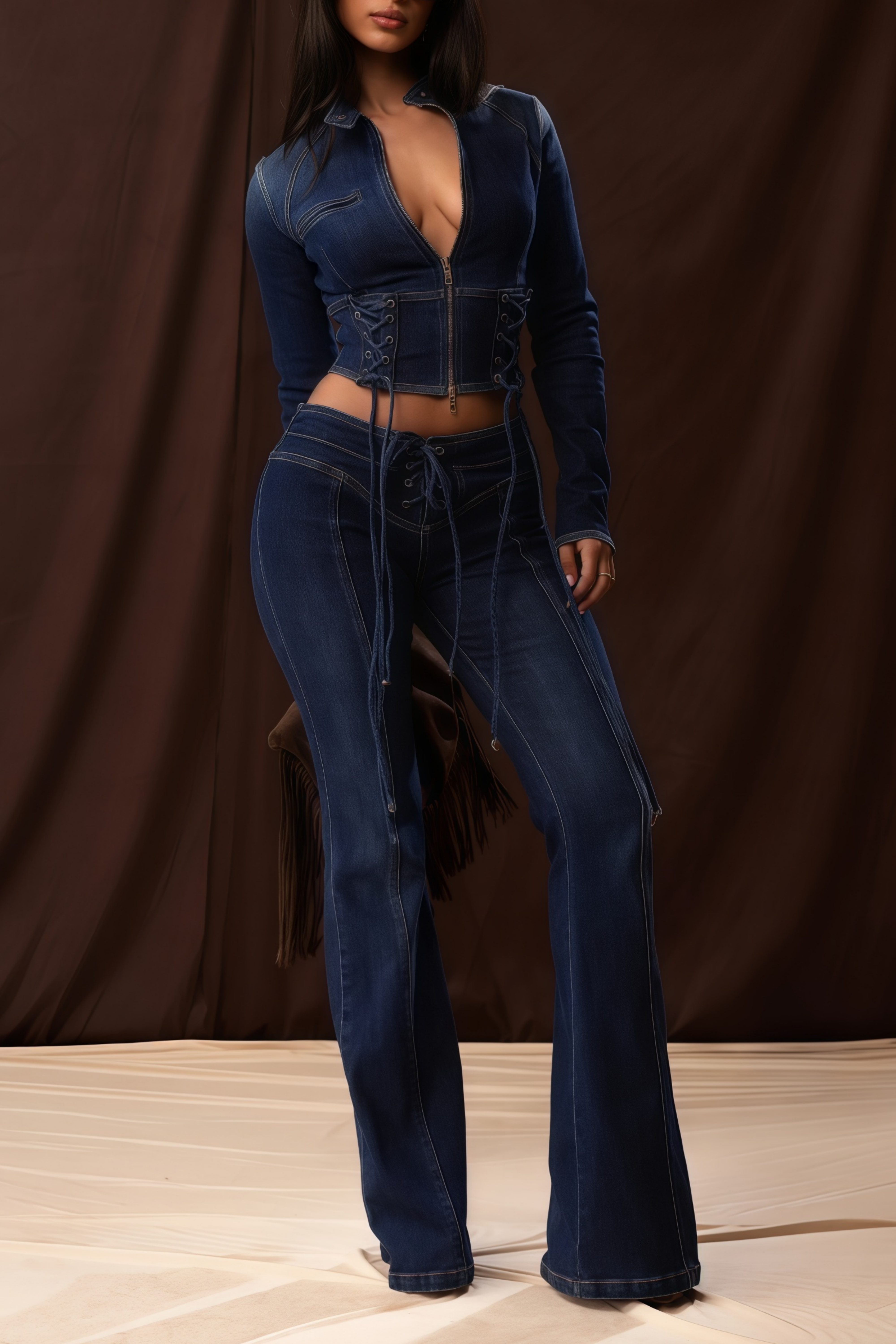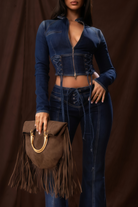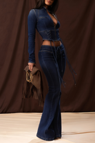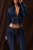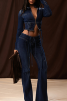 Dante Blue Lace Up Denim Top & Trousers Set