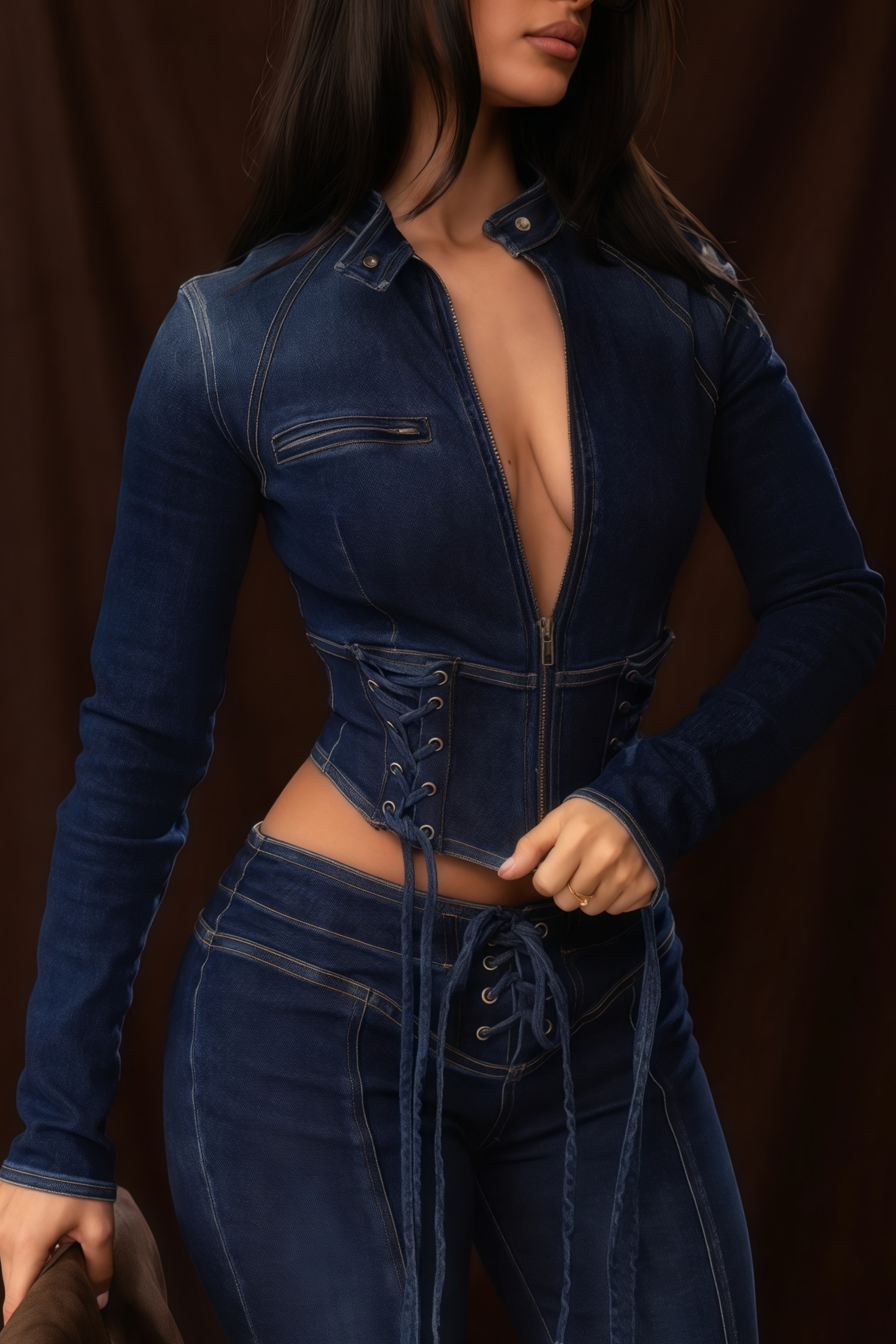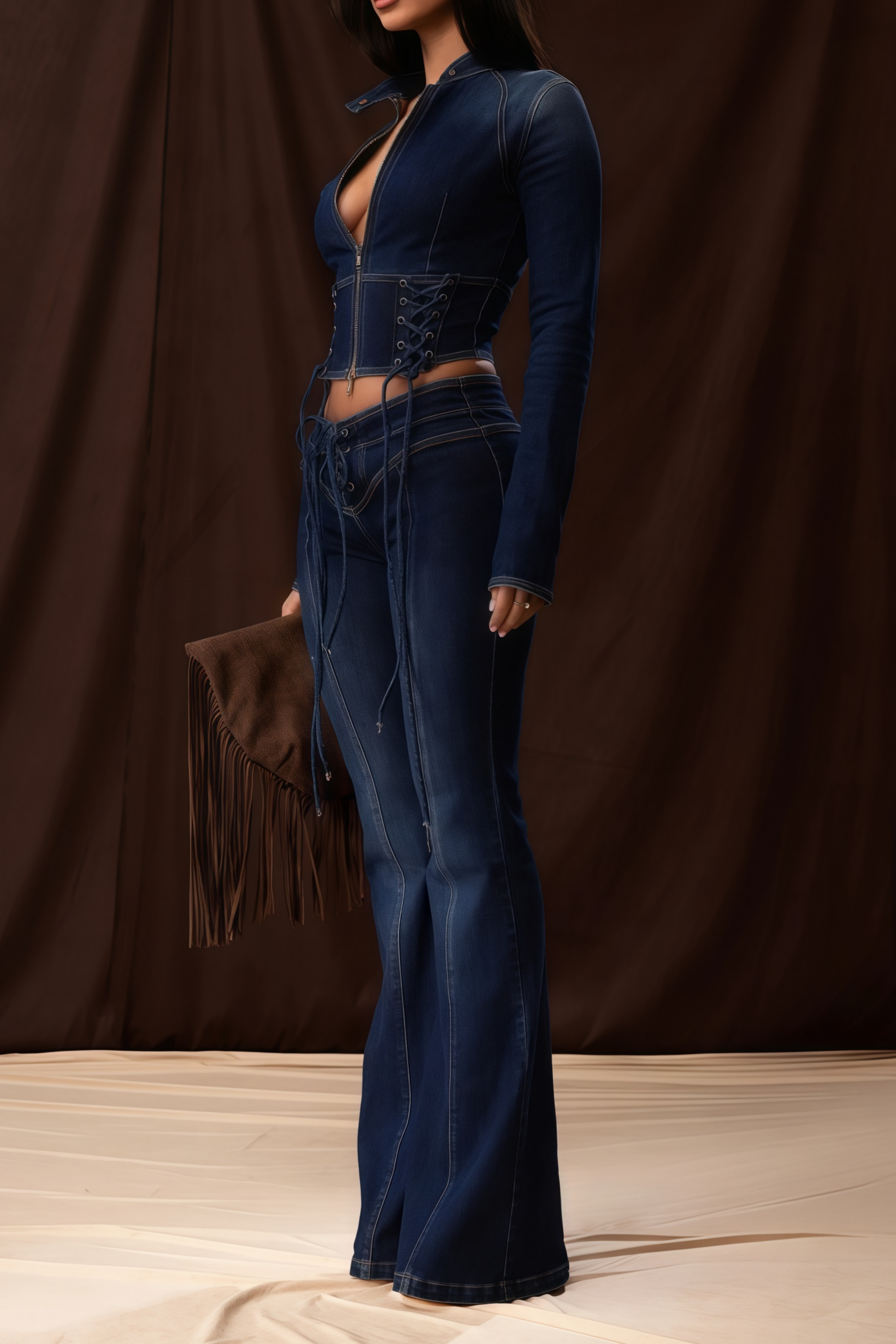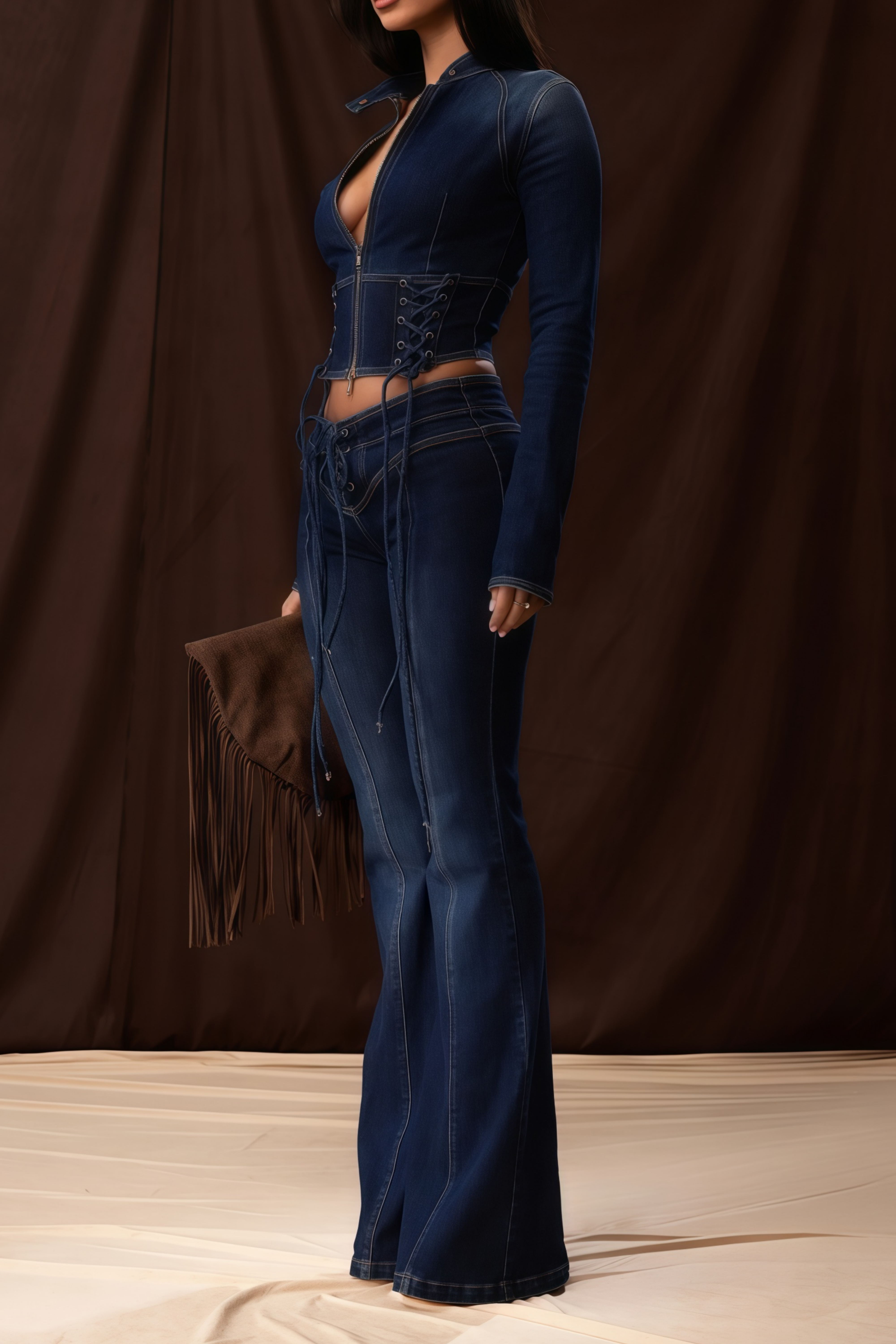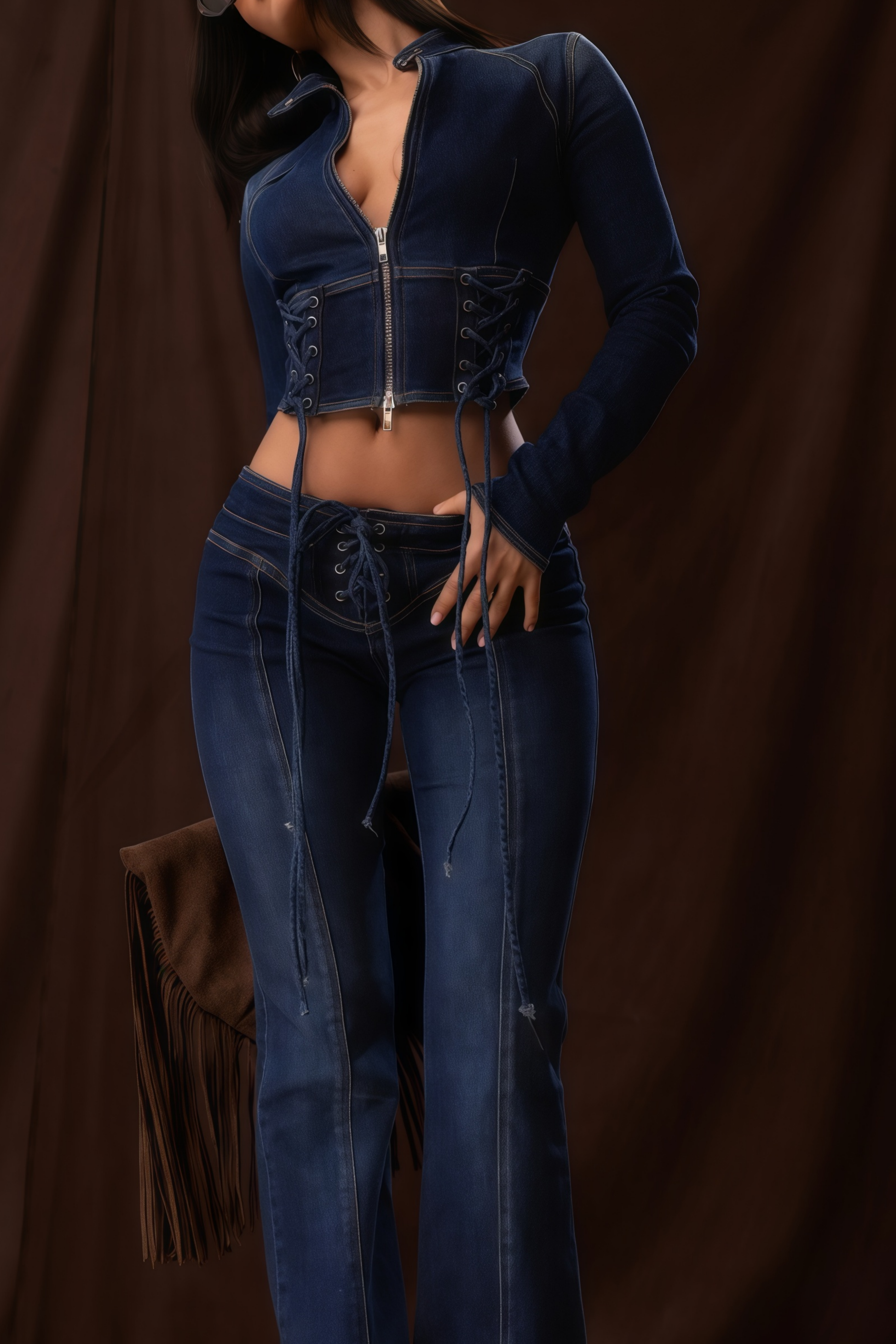 Dante Blue Lace Up Denim Top & Trousers Set