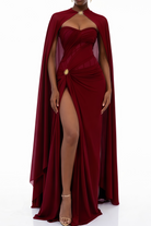 Veronica Burgundy Sheer Cape & Off Shoulder Dress Set