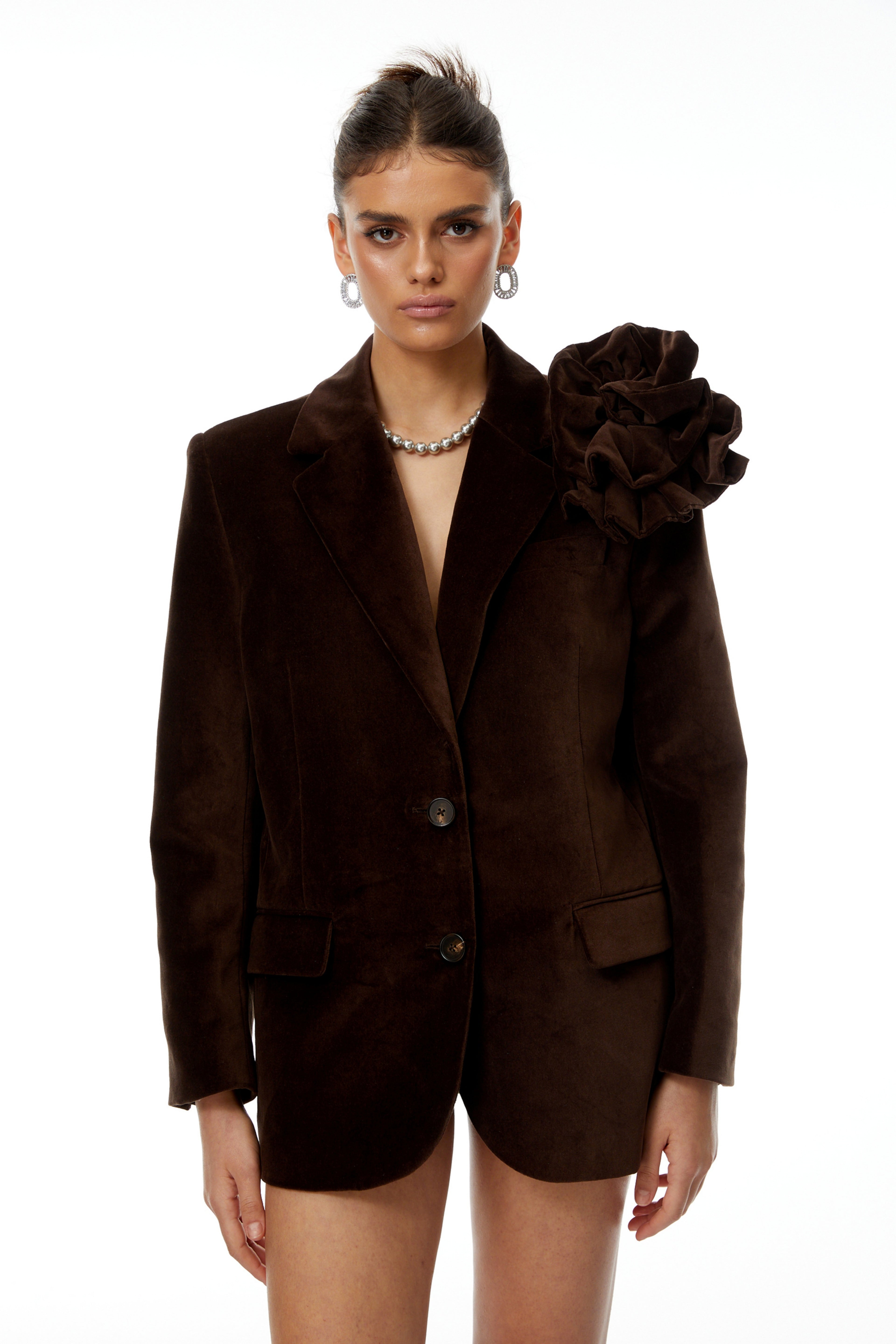 Dolores Brown Single Breasted Petal Blazer
