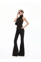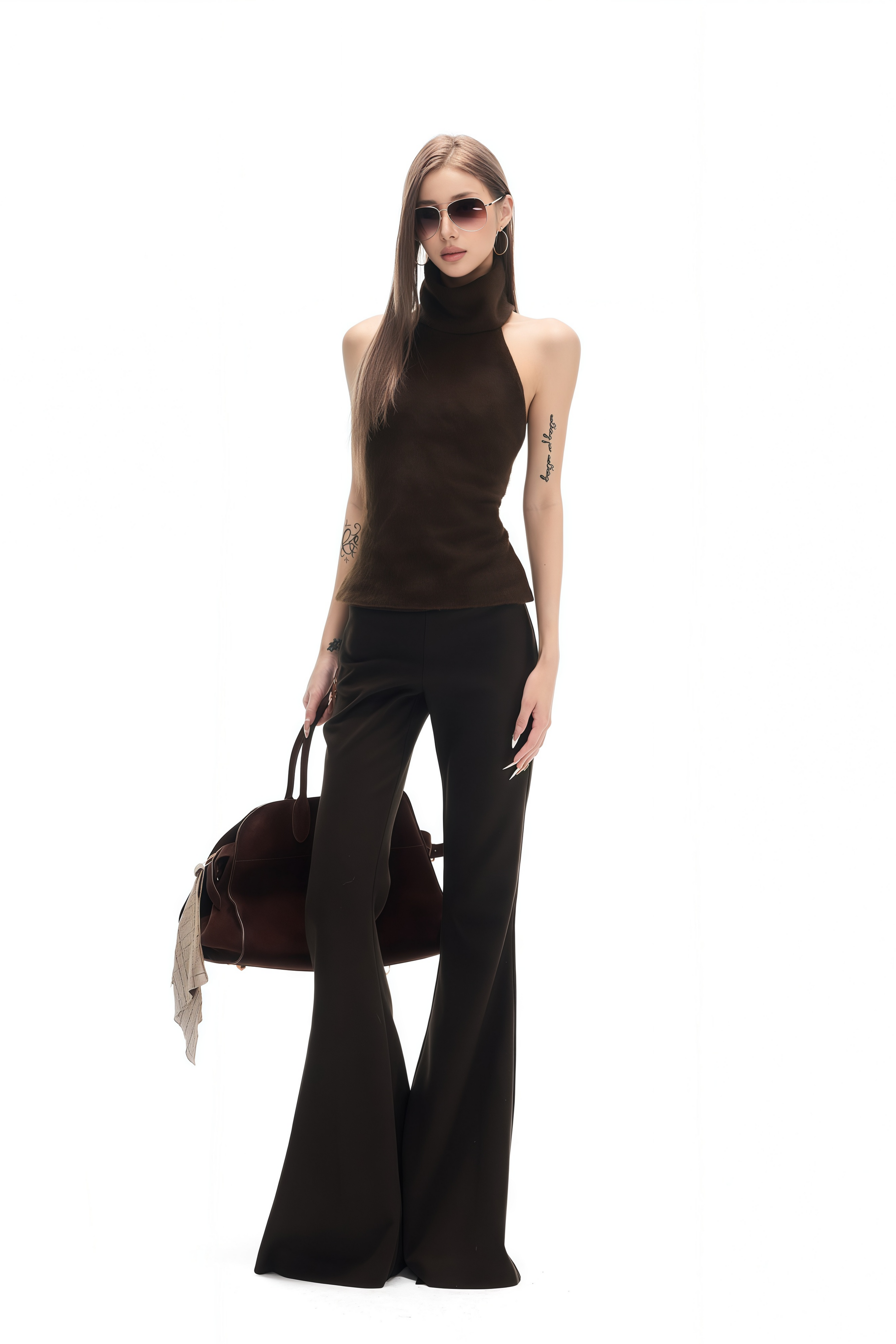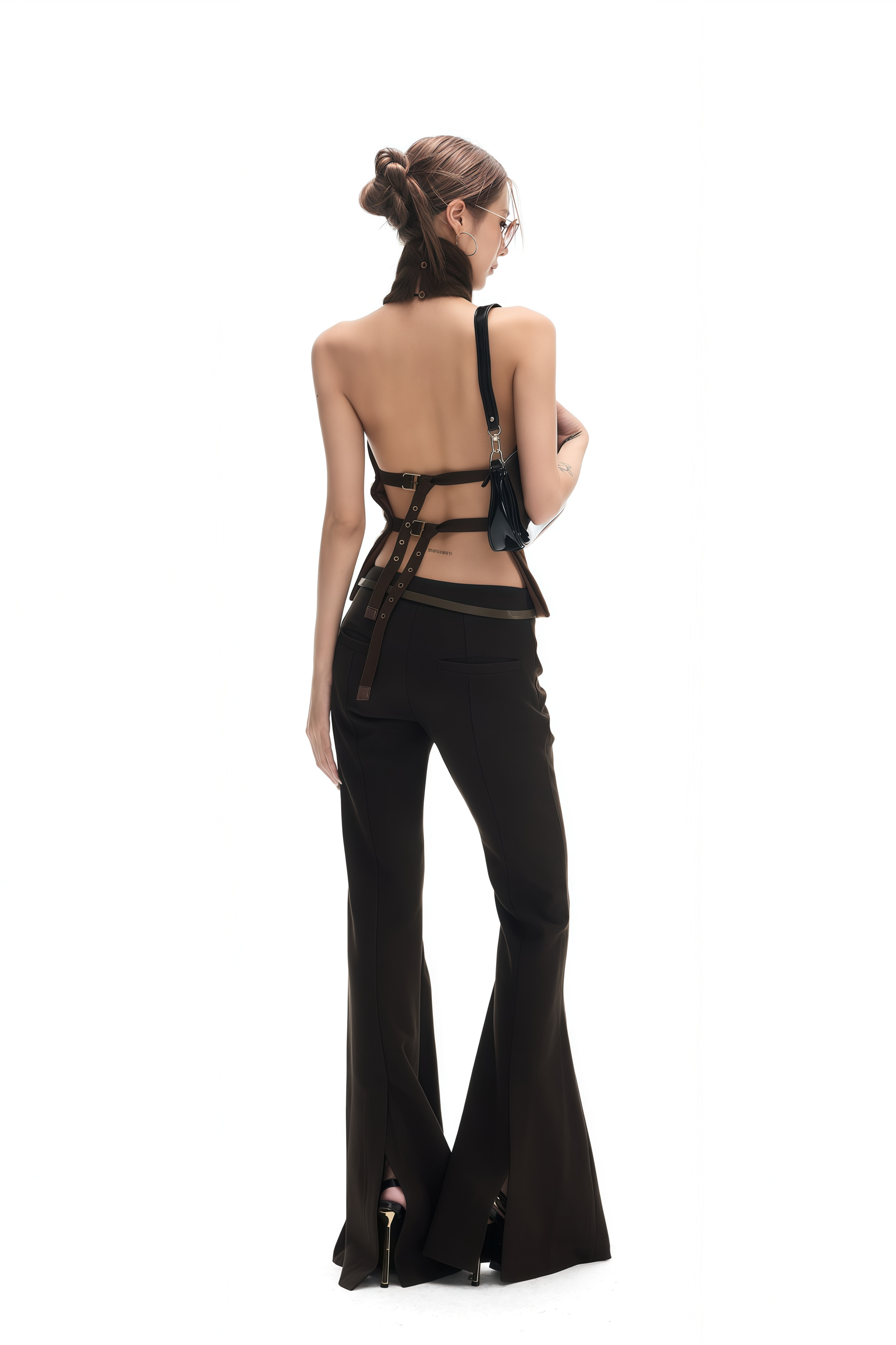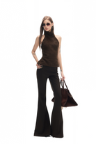 Novalie Brown Off Shoulder Halter Neck Faux Fur Top