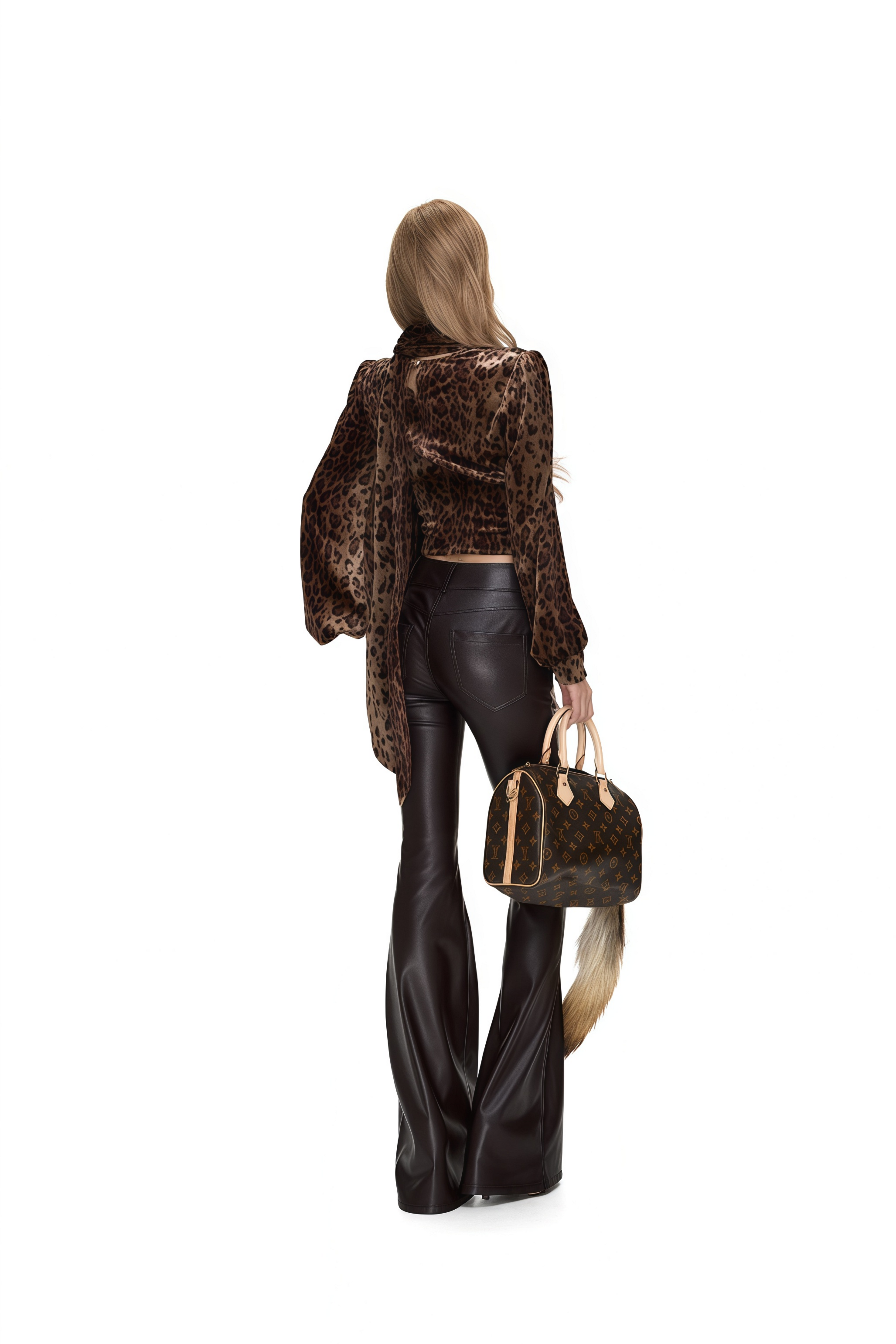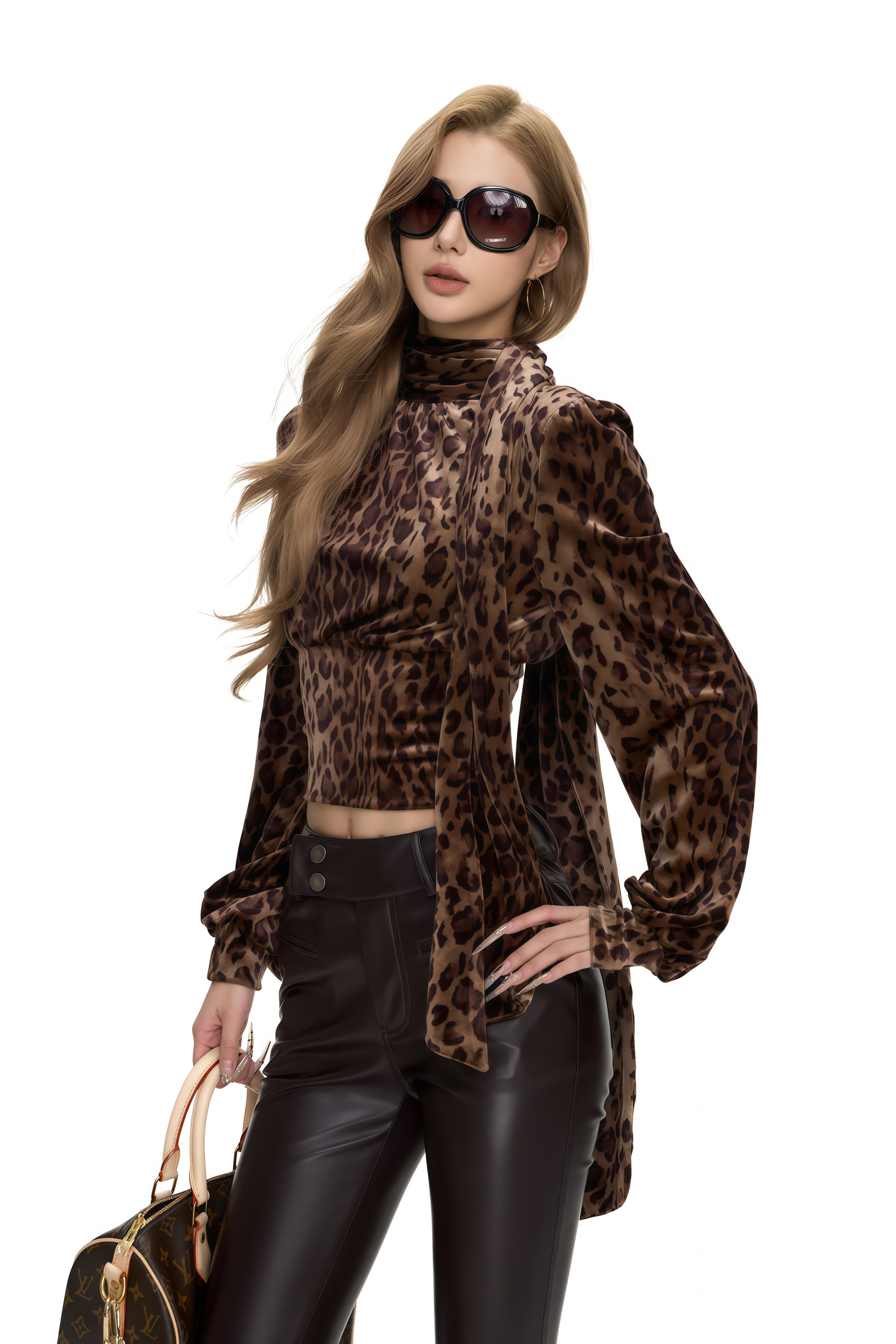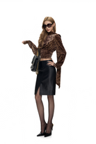 Sholom Brown Crew Neck Leopard Stretch Knit Top