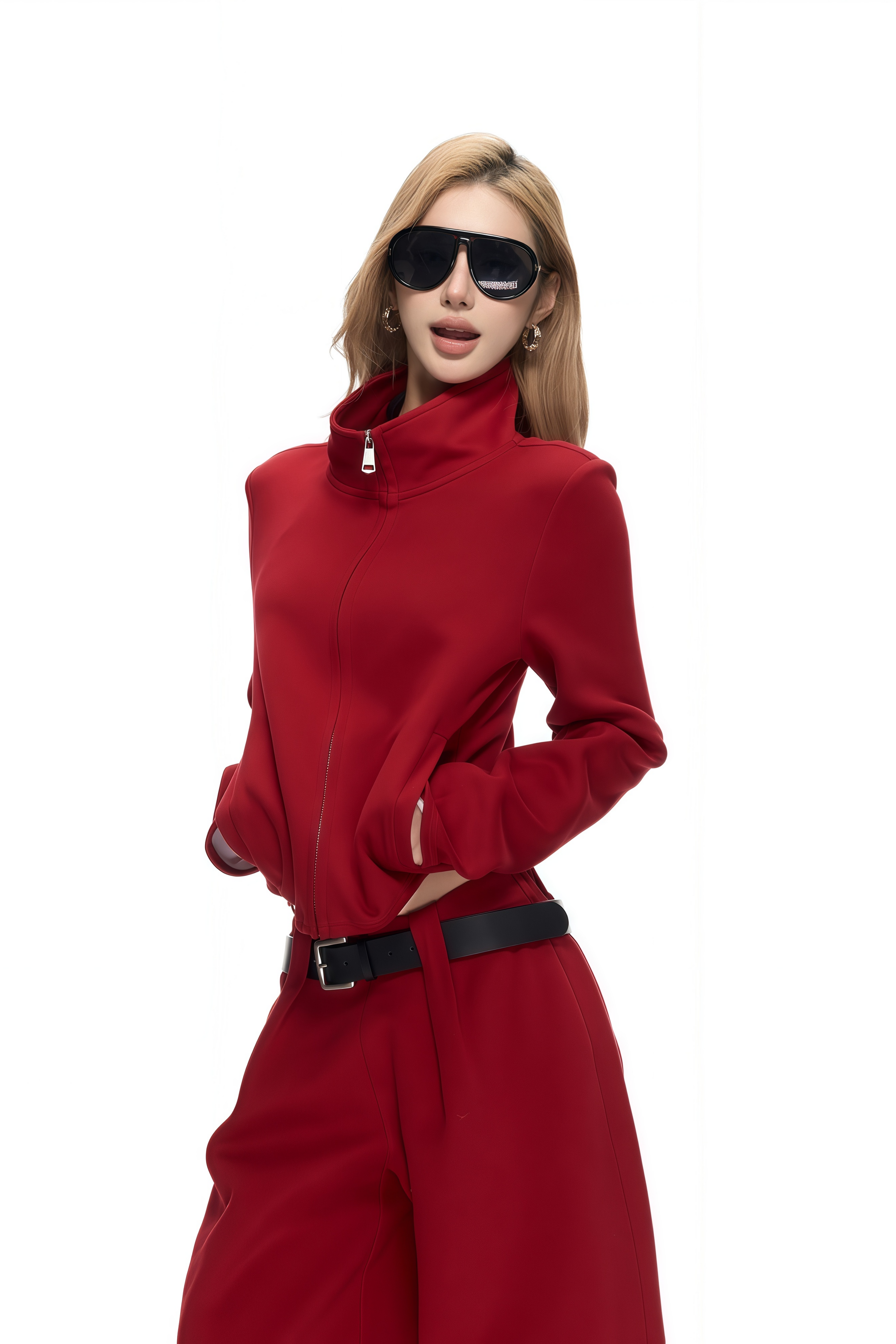 Introducing the Wren Red Stand-Up Collar Coat, a must-have addition to your wardrobe. This coat features vibrant red stand-up collar and solid-color boldness. With its long sleeves, two side pockets and front zip fastening, it offers an oversized yet flattering midi-length silhouette. Elevate your style with this elegant and versatile coat.