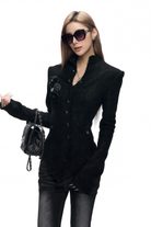 Alaia Black Stand-Up Collar Tweed Coat