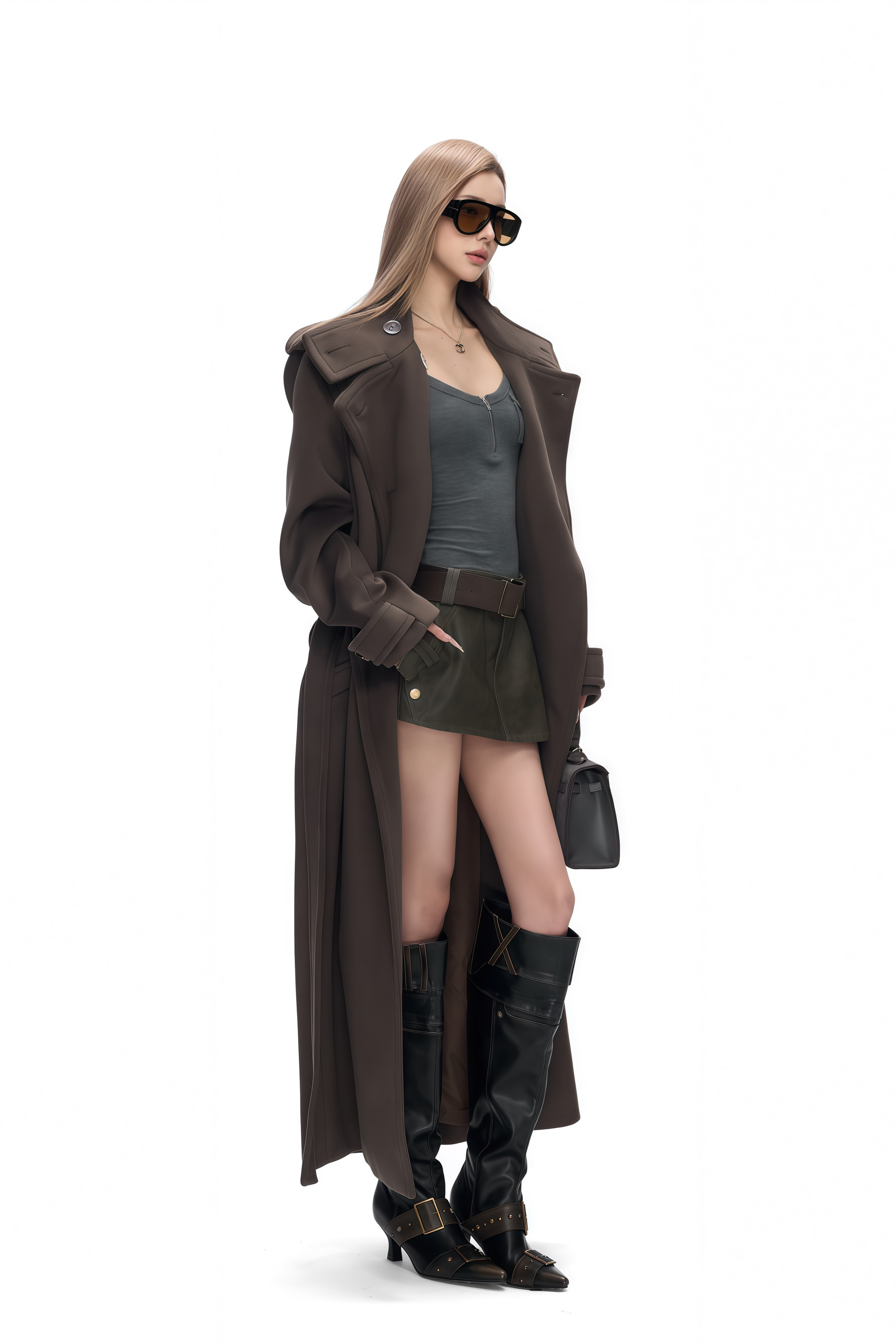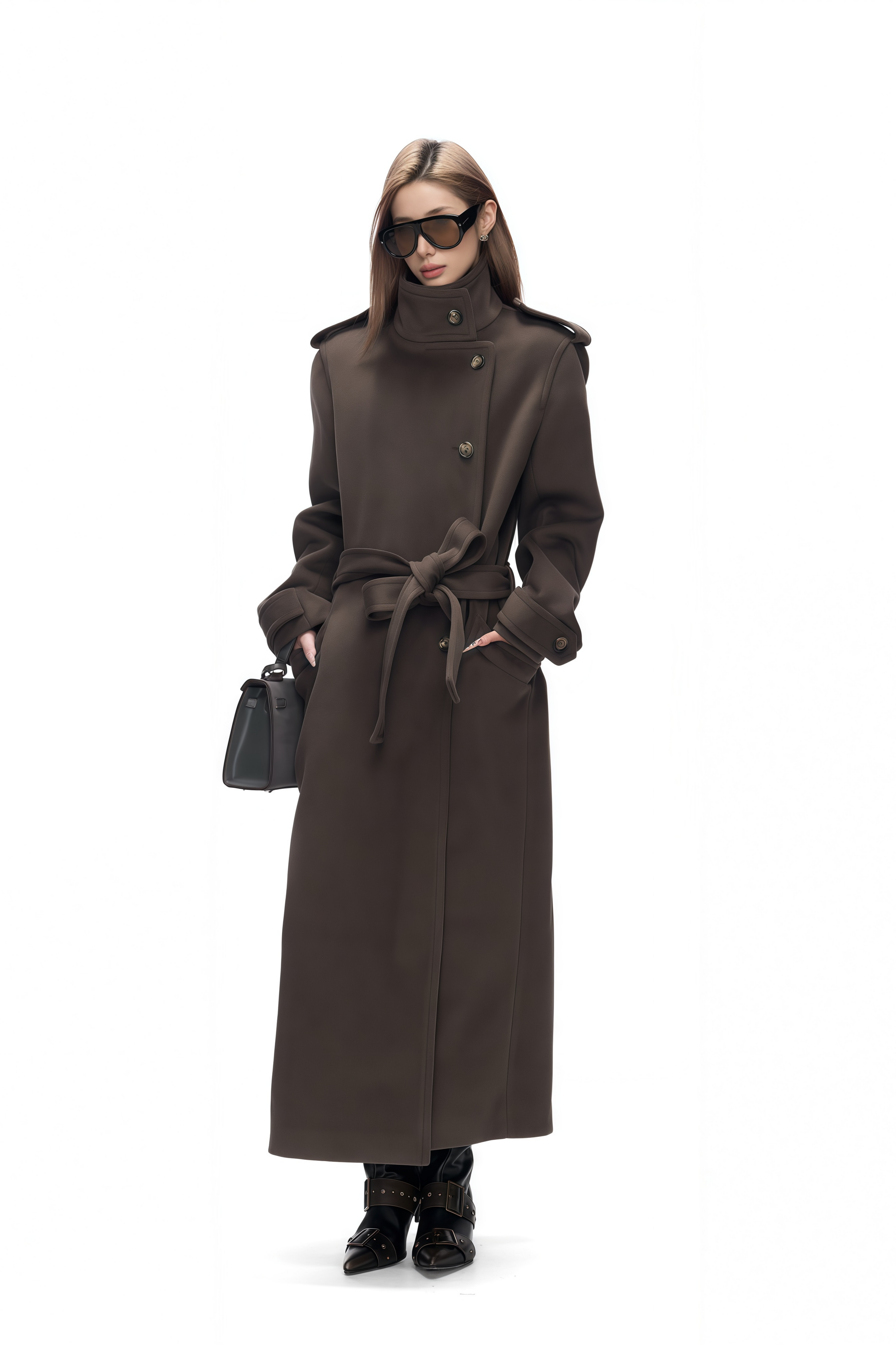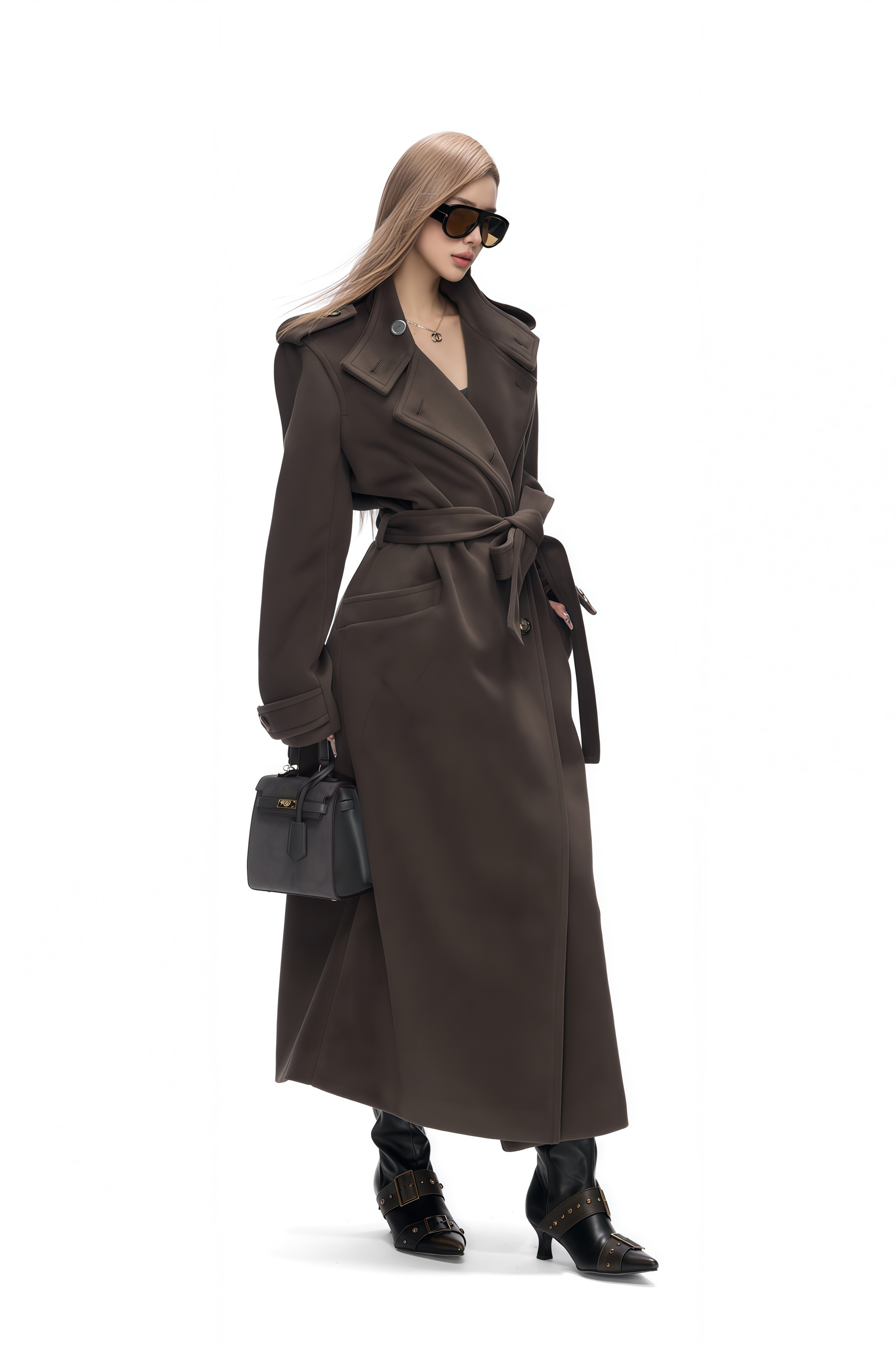 Amaris Brown Lapels Tweed Trench Coat