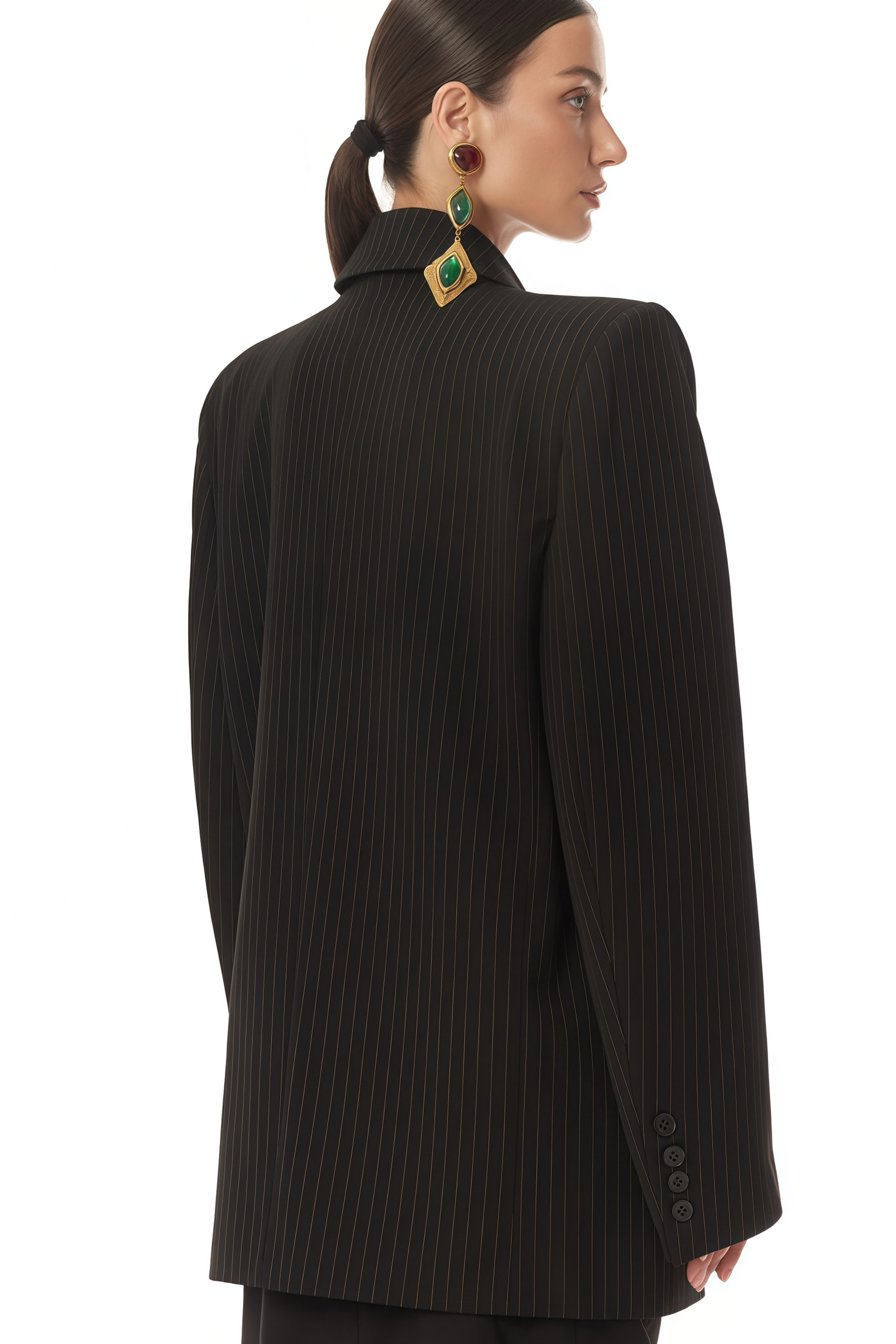 Anna Black Black Pinstriped Double-Breasted Blazer
