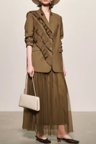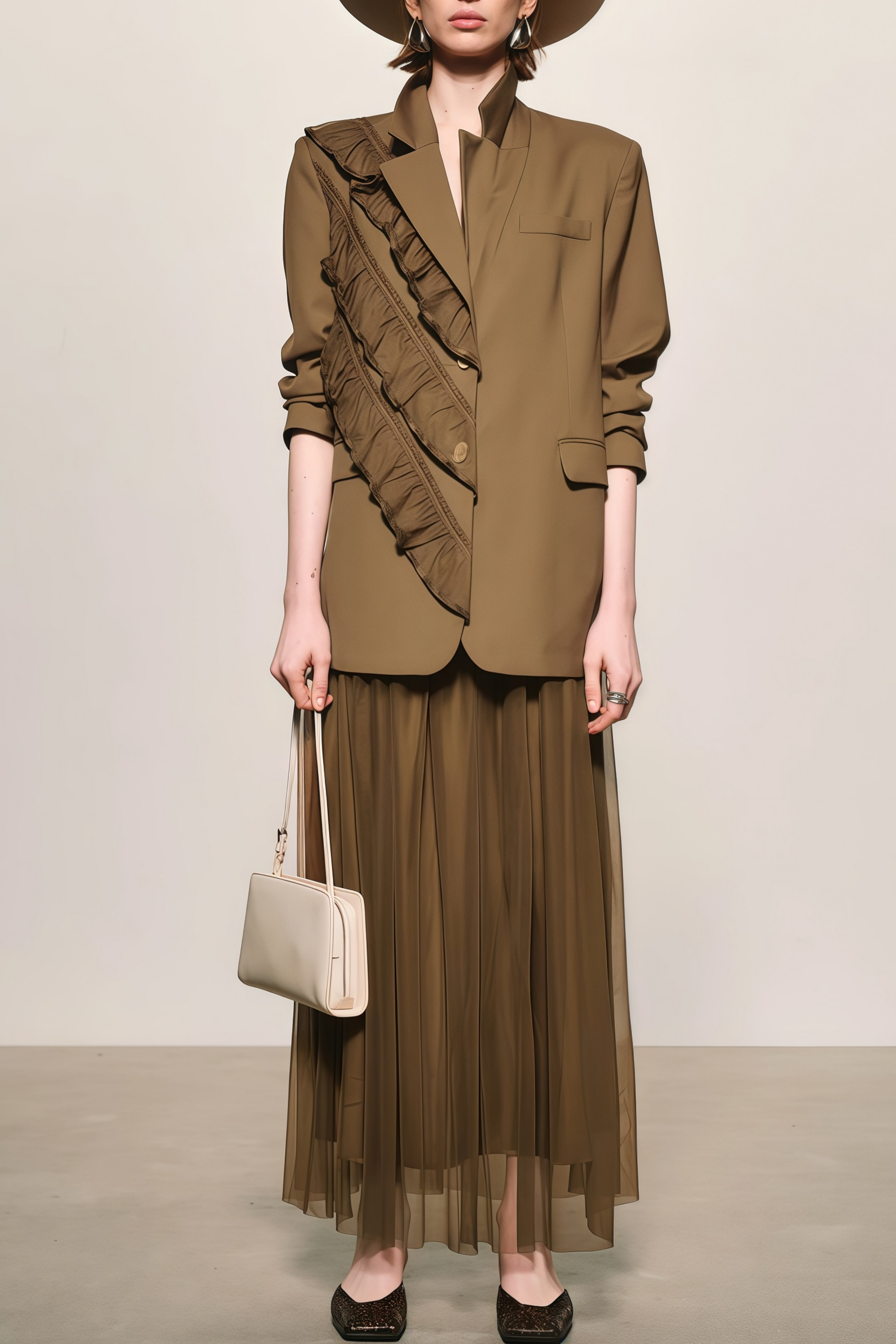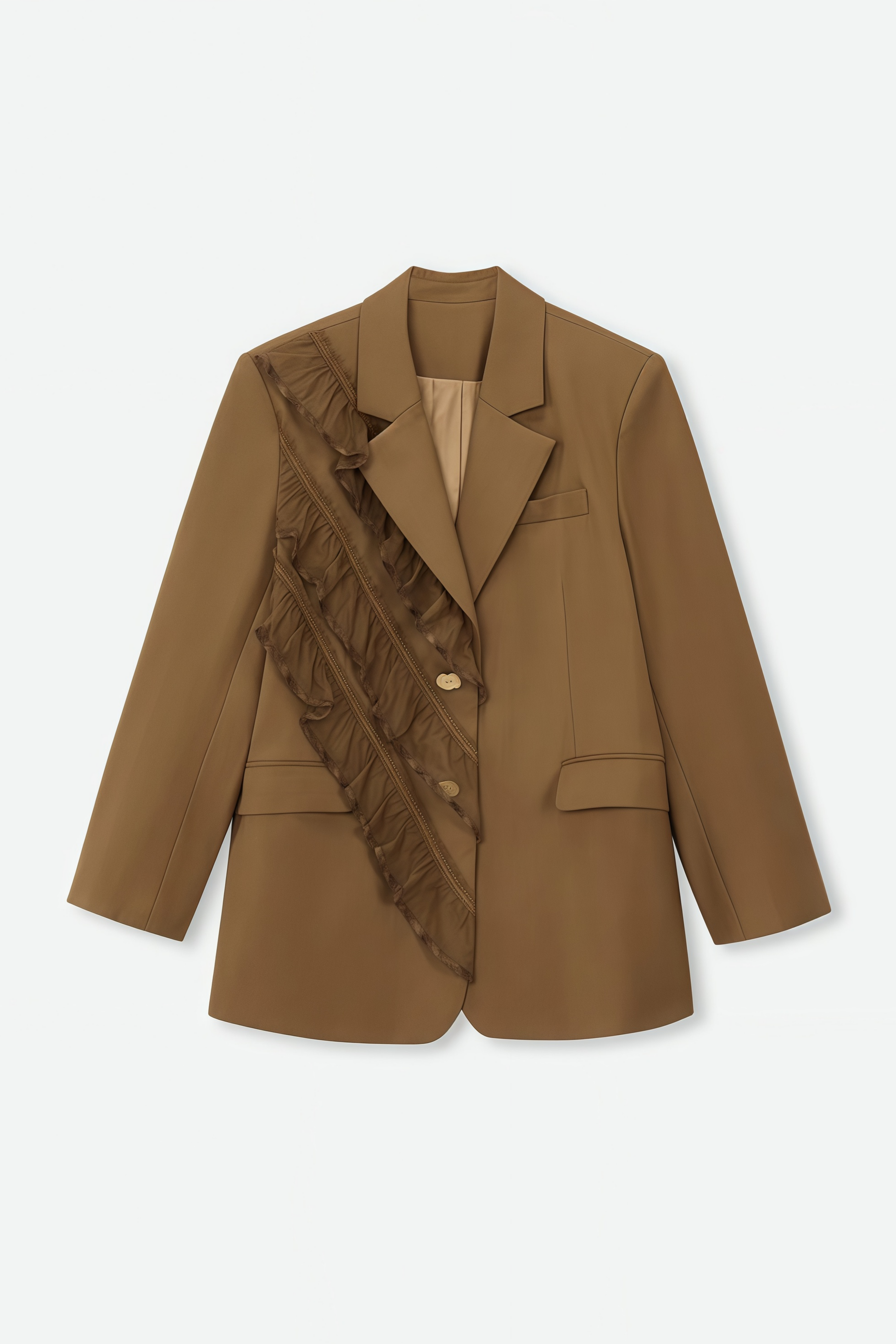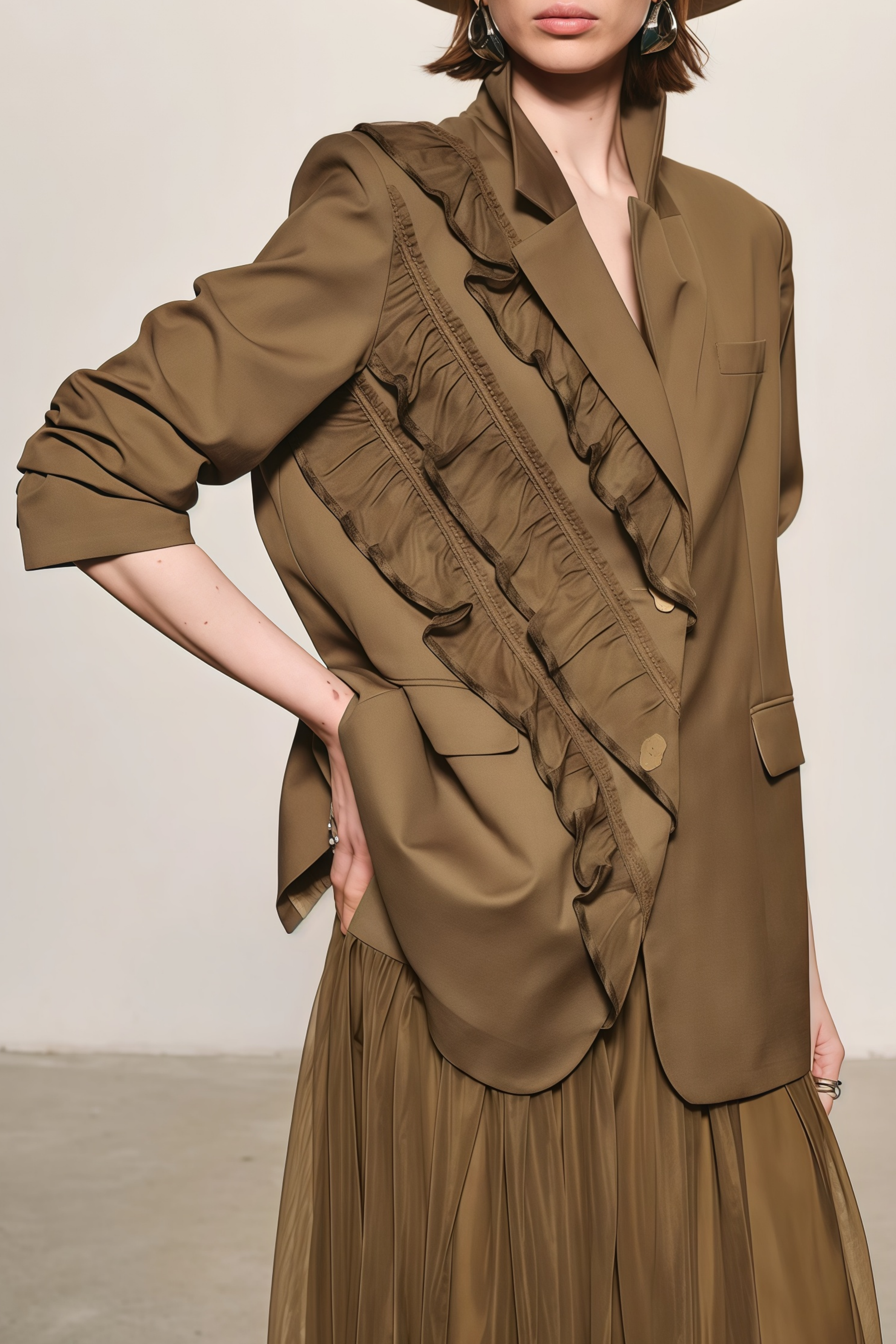Belinda Olive Brown Asymmetrical Ruffled Blazer