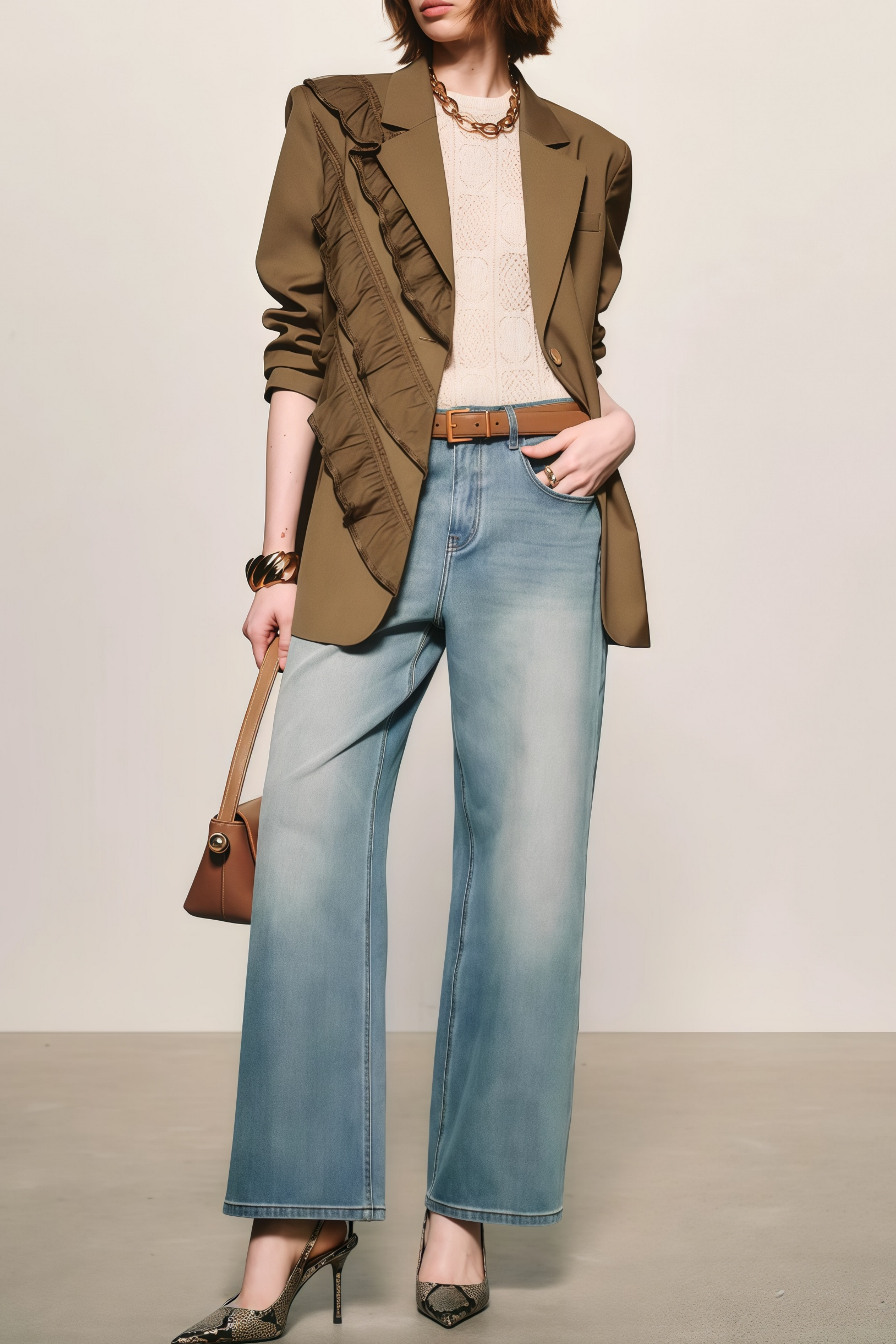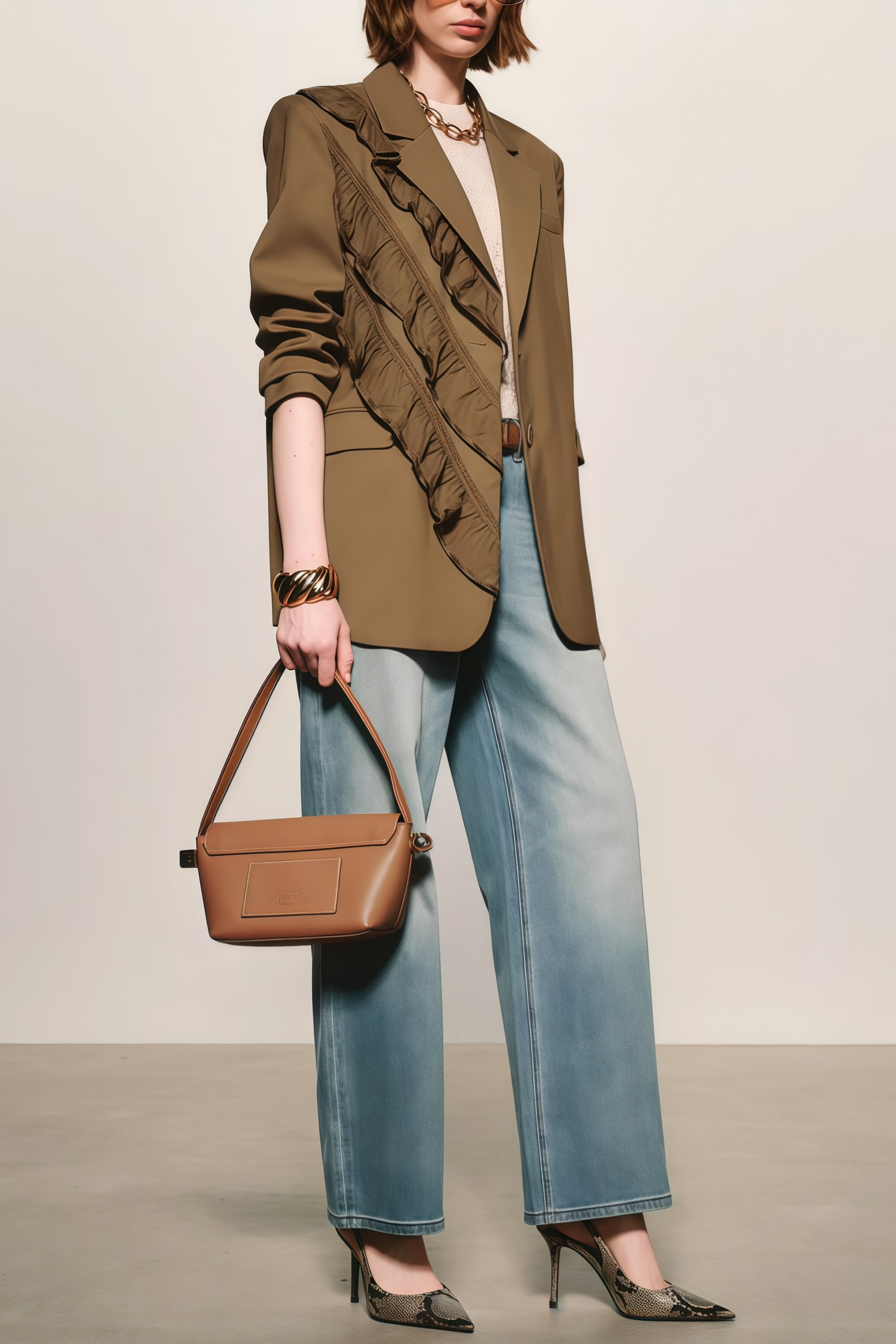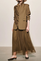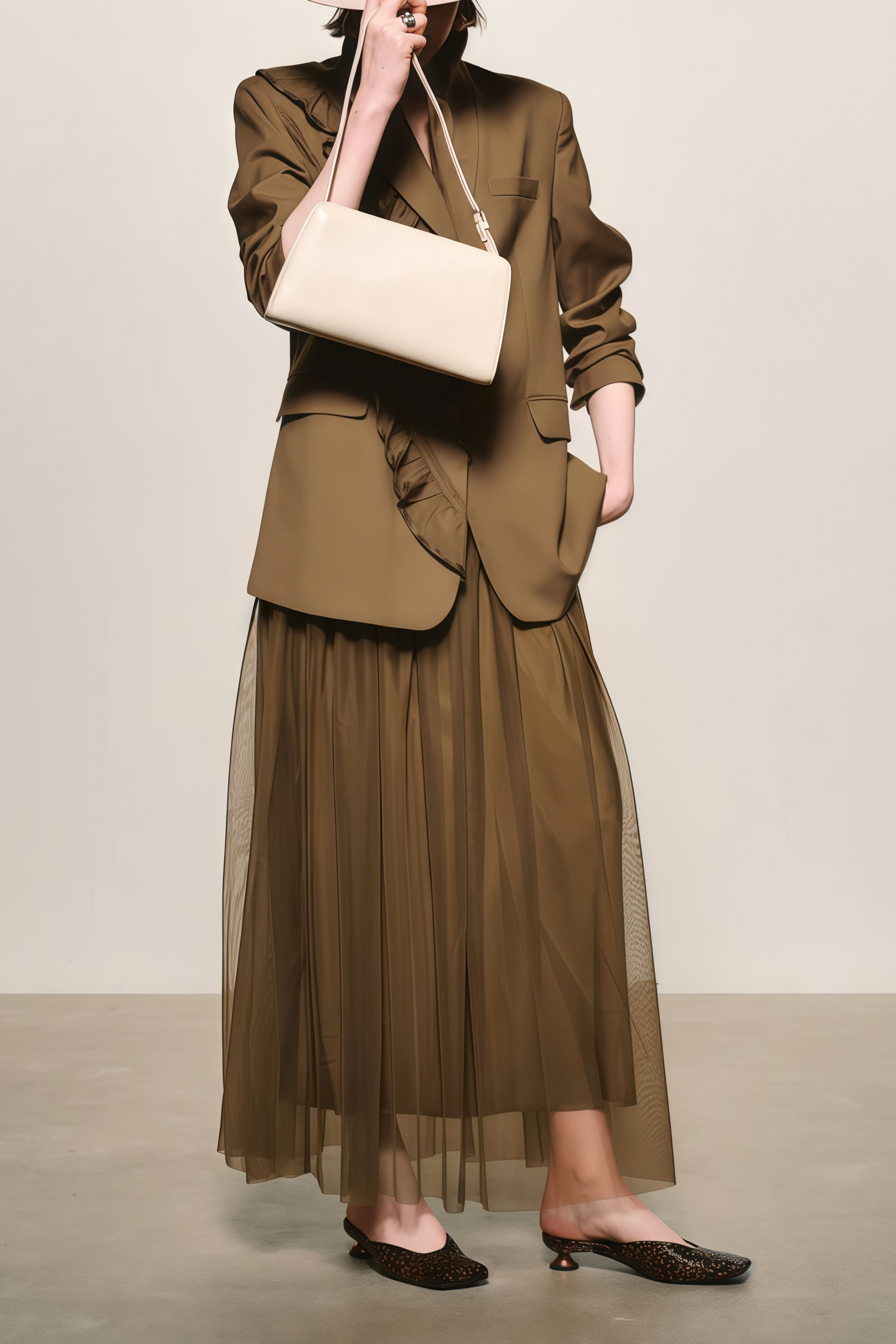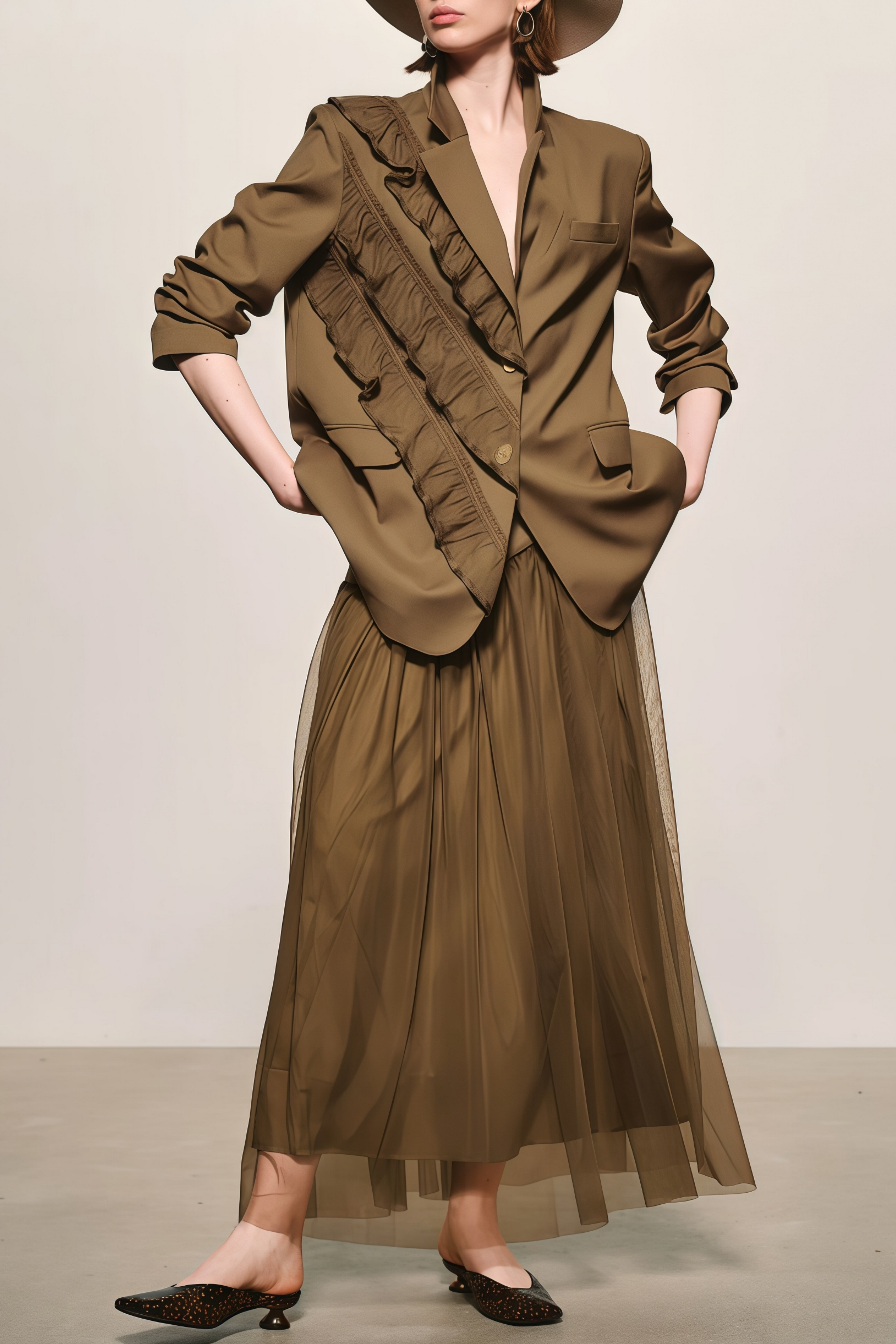 Belinda Olive Brown Asymmetrical Ruffled Blazer