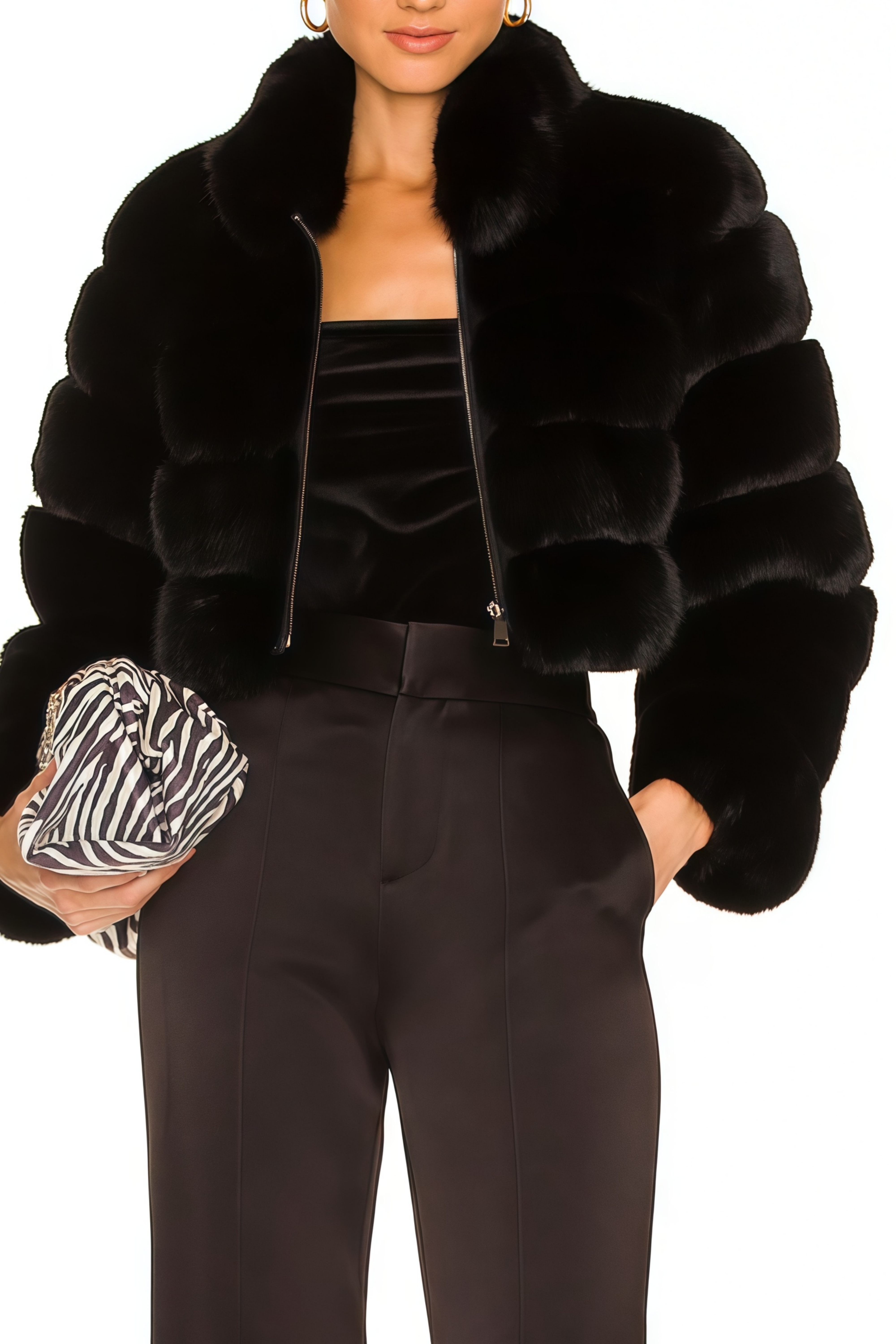 Eunice Black Cropped Fur Coat