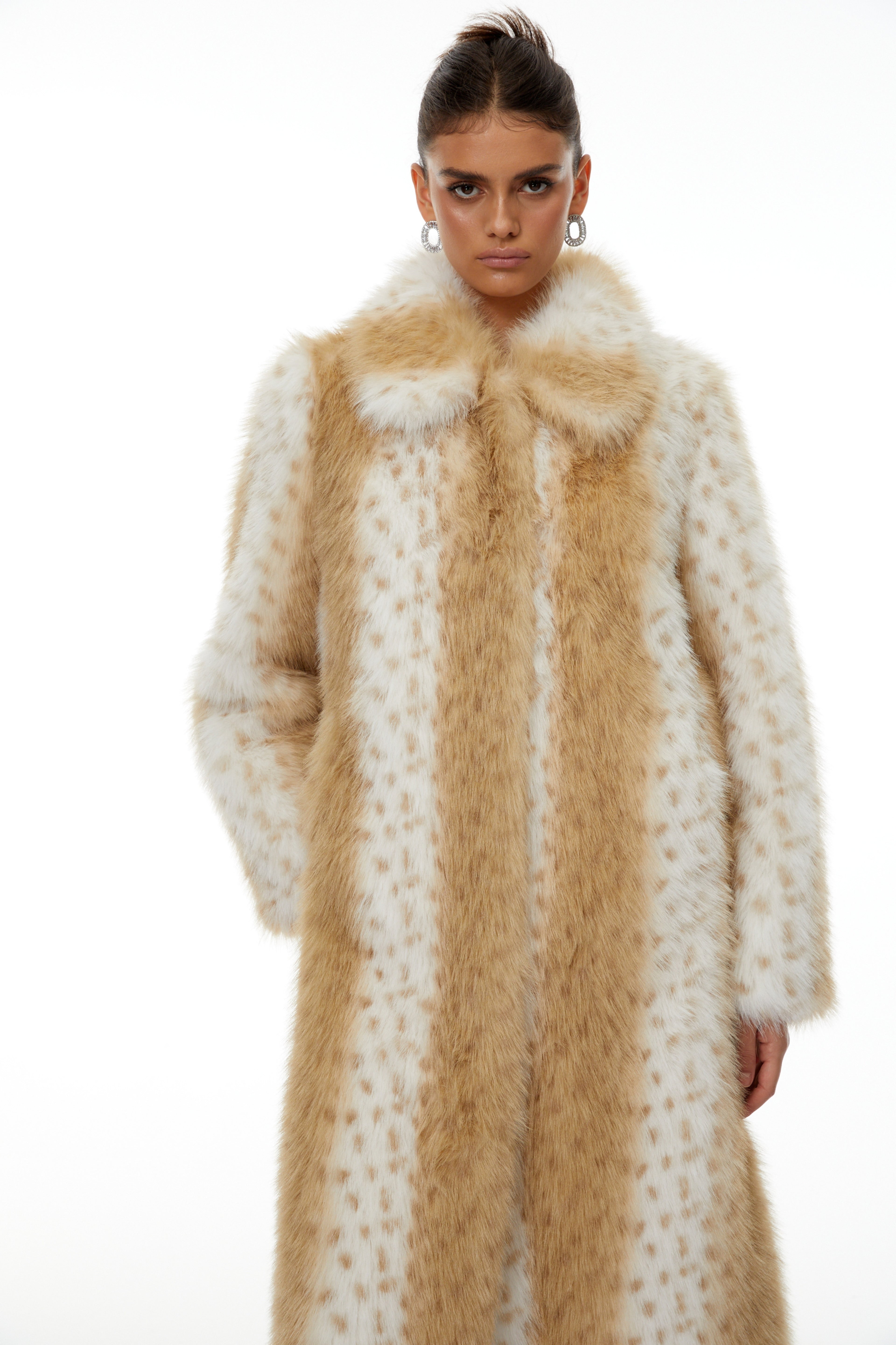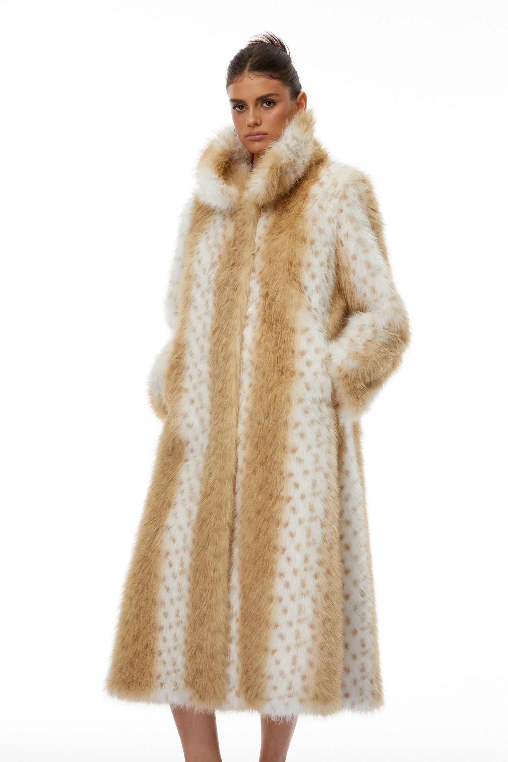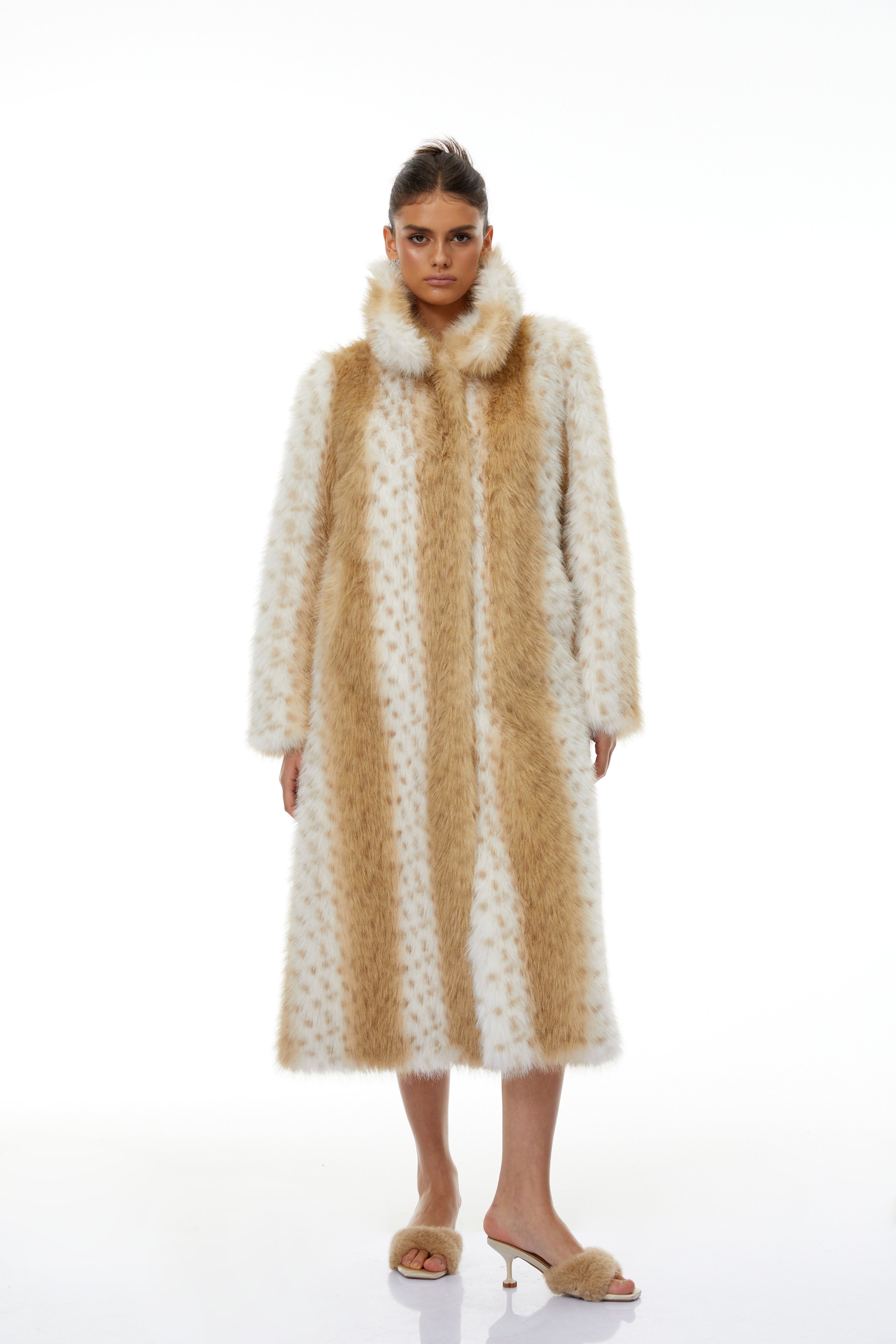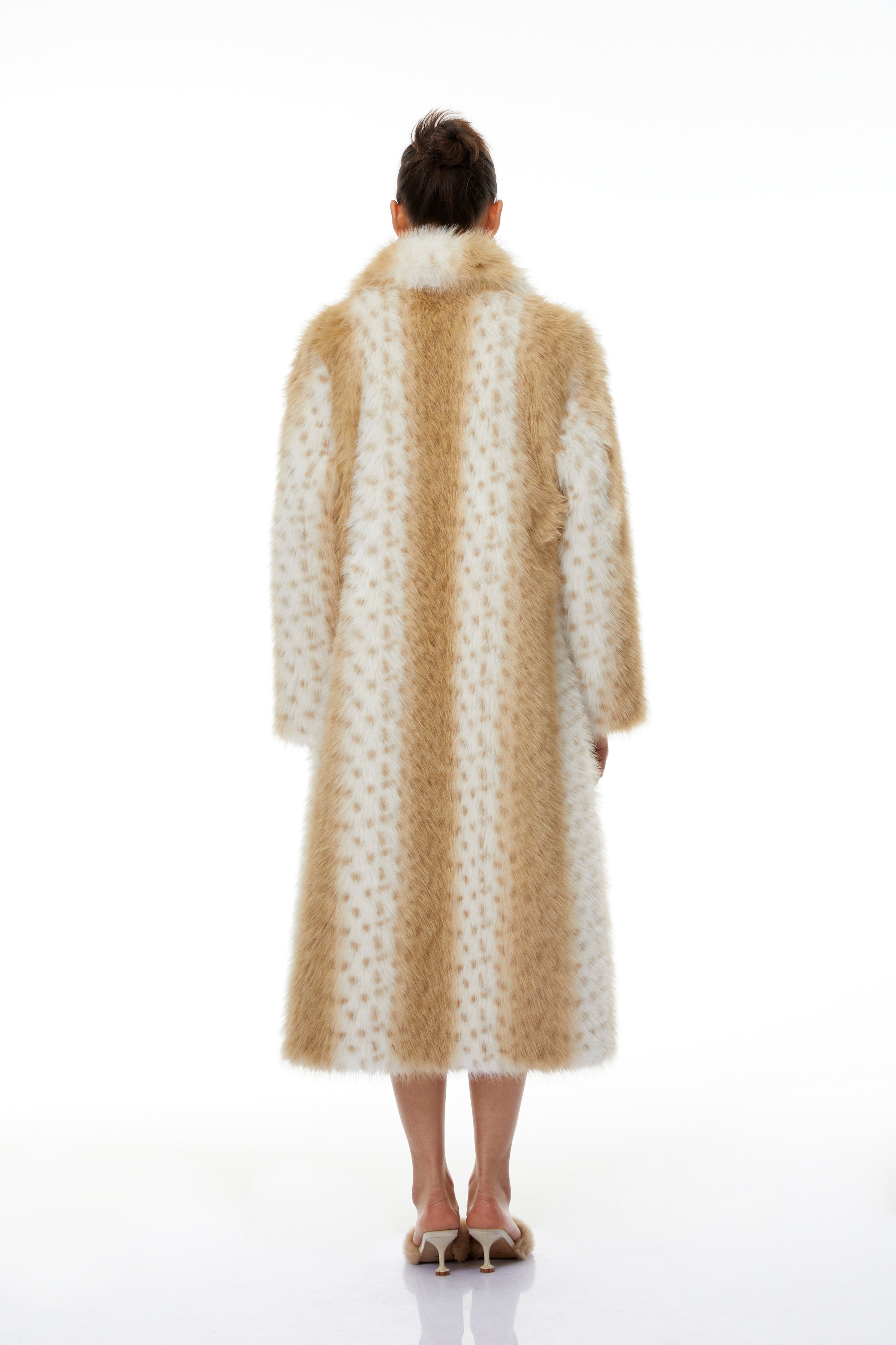 Norma Color Block Spotted Stripe Fur Coat
