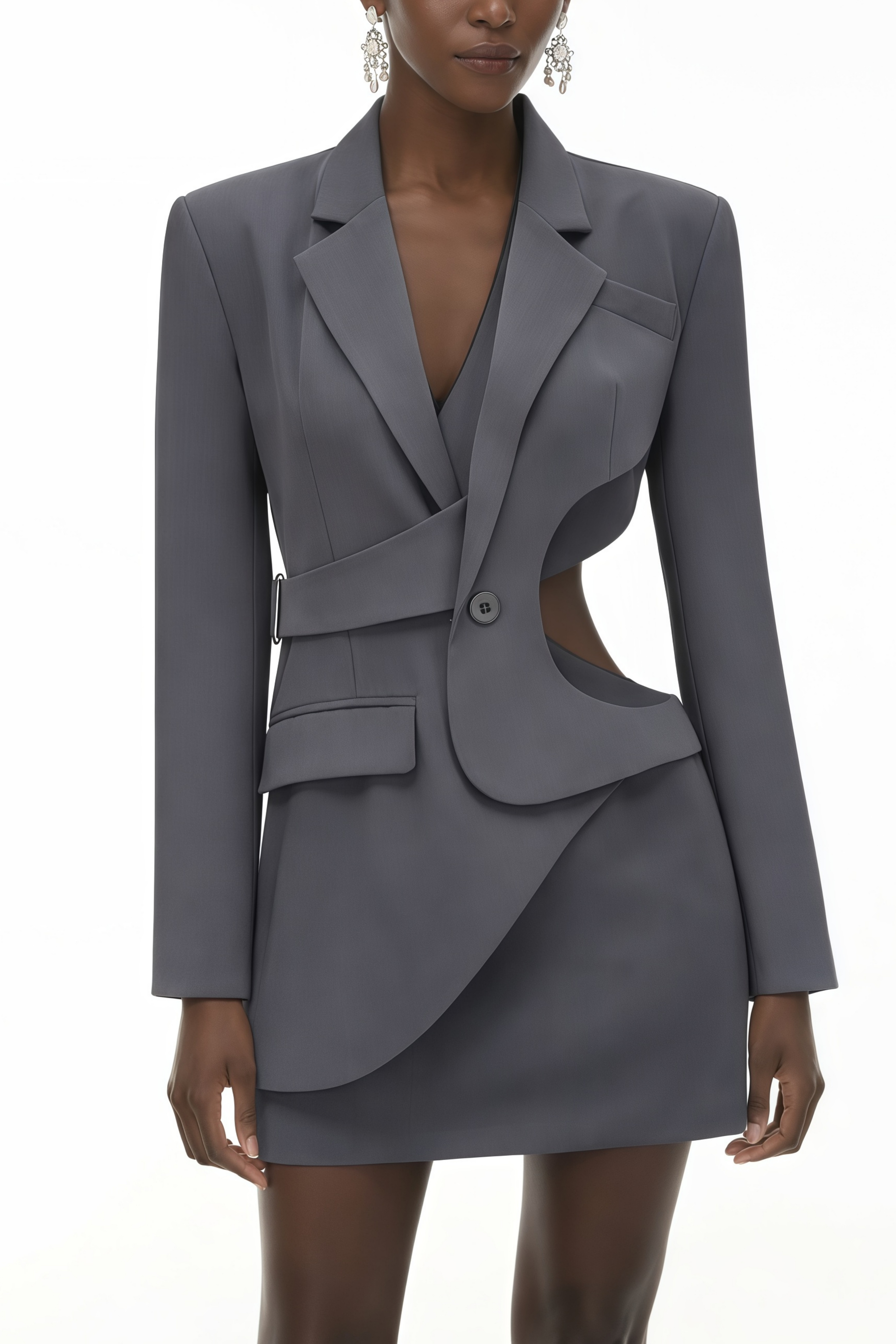 Odelia Grey Asymmetrical Cut Out Jacket