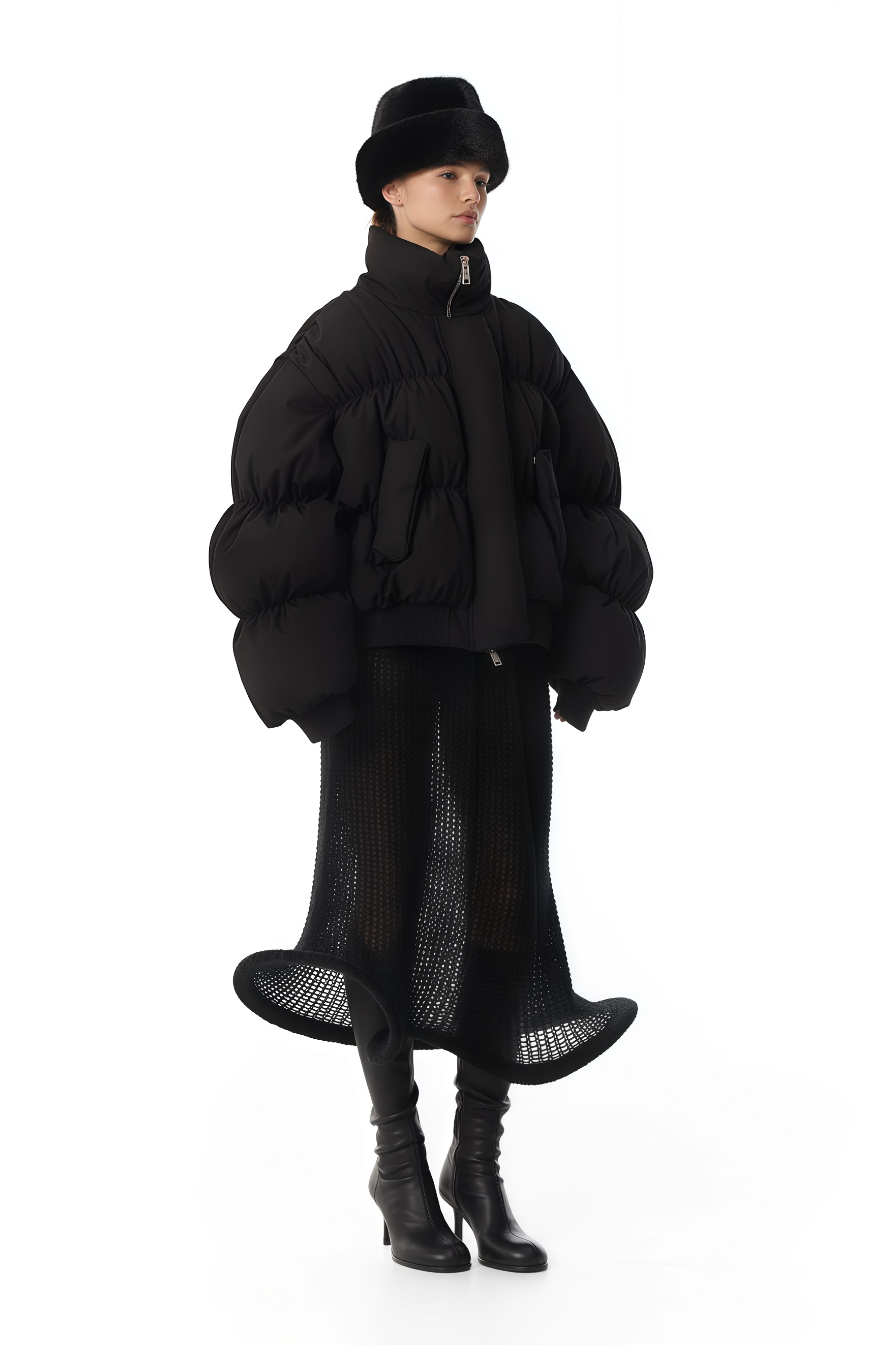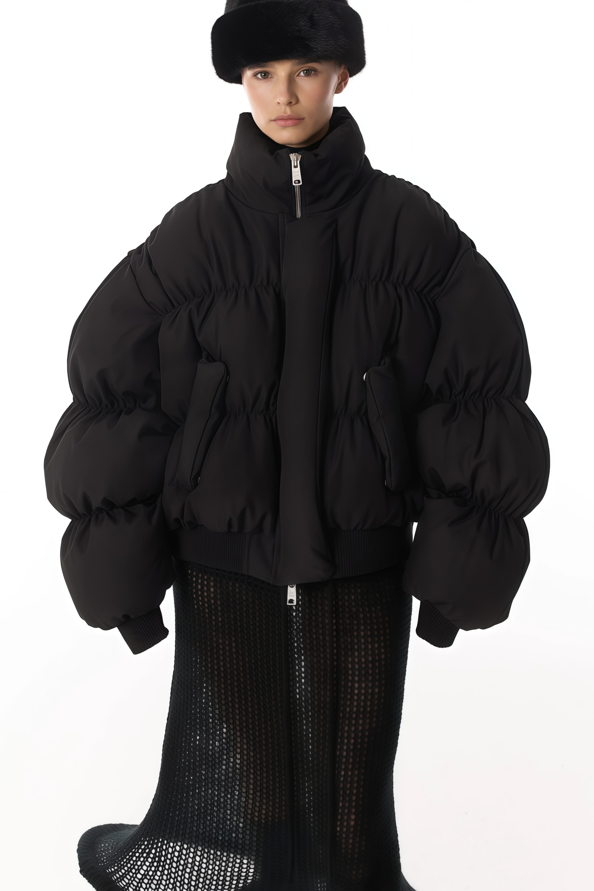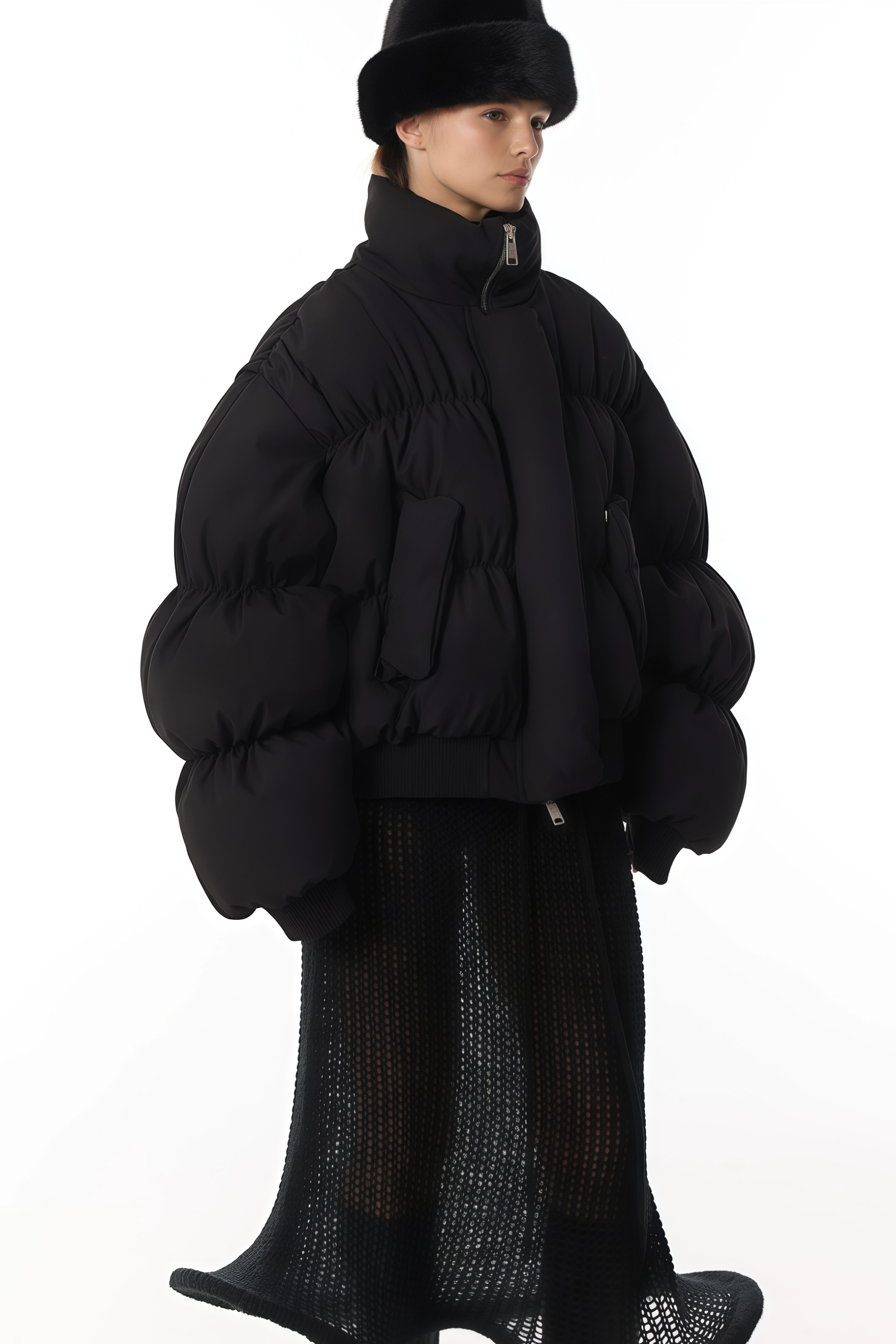 Introducing the Ursula Black Dropped Shoulder Down Coat, a must-have addition to your wardrobe. This sleek coat features long sleeves with a refined stand-up collar and a contemporary dropped shoulder design. Detailed with ribbed hem and cuffs for structure, it includes two side flap pockets and is secured with front zip fastening for a modern closure. Elevate your style with this elegant and versatile piece.