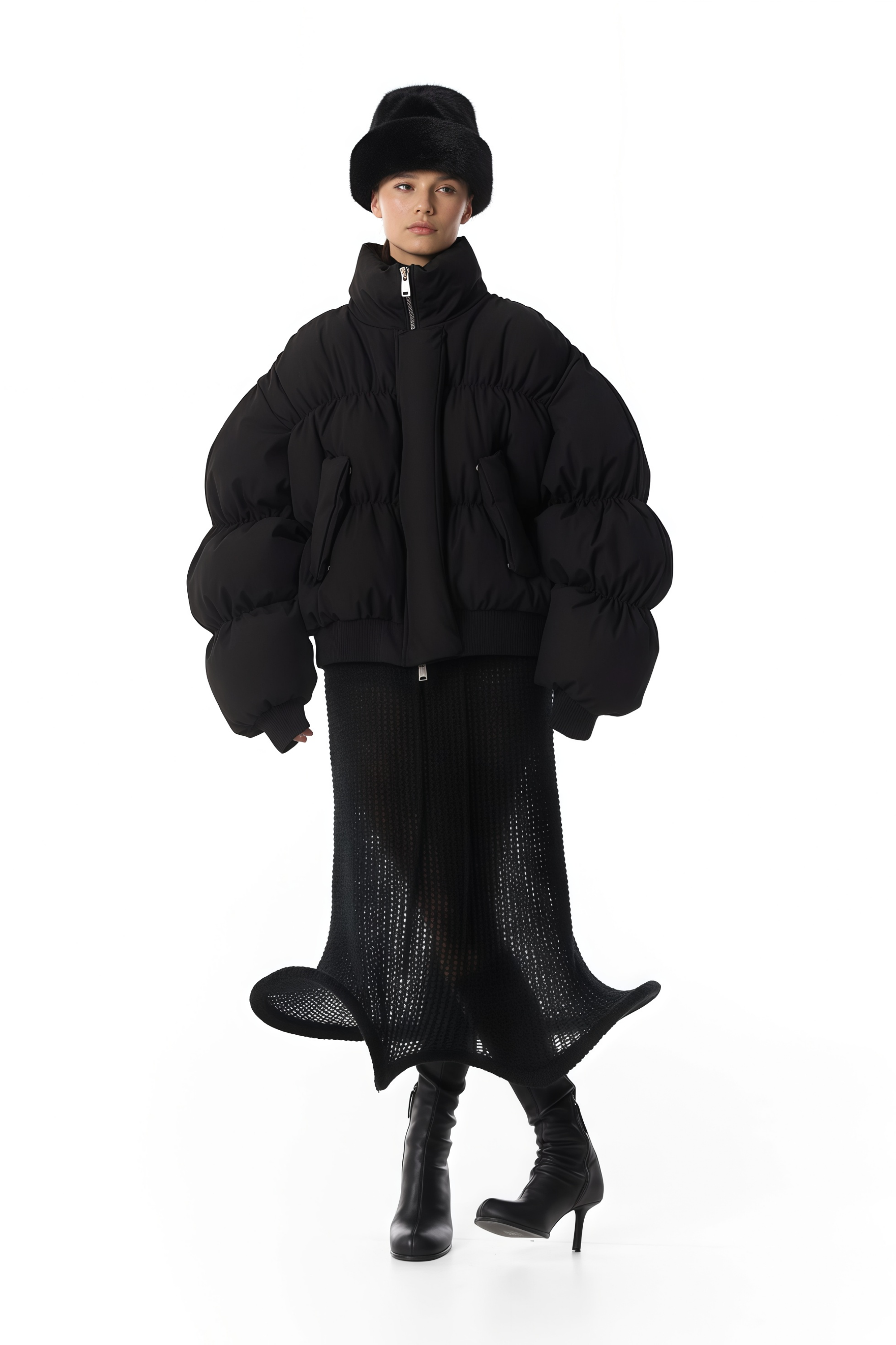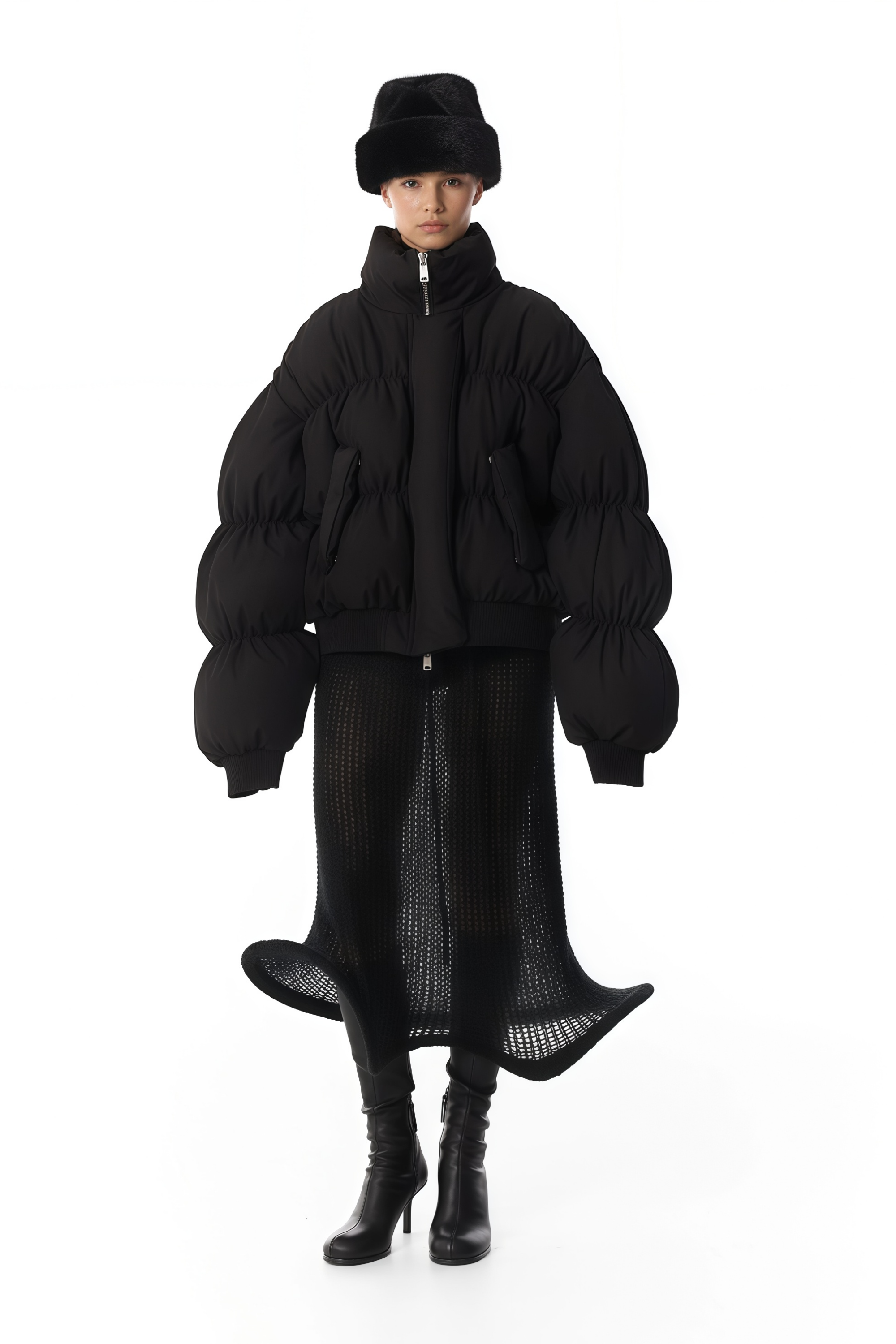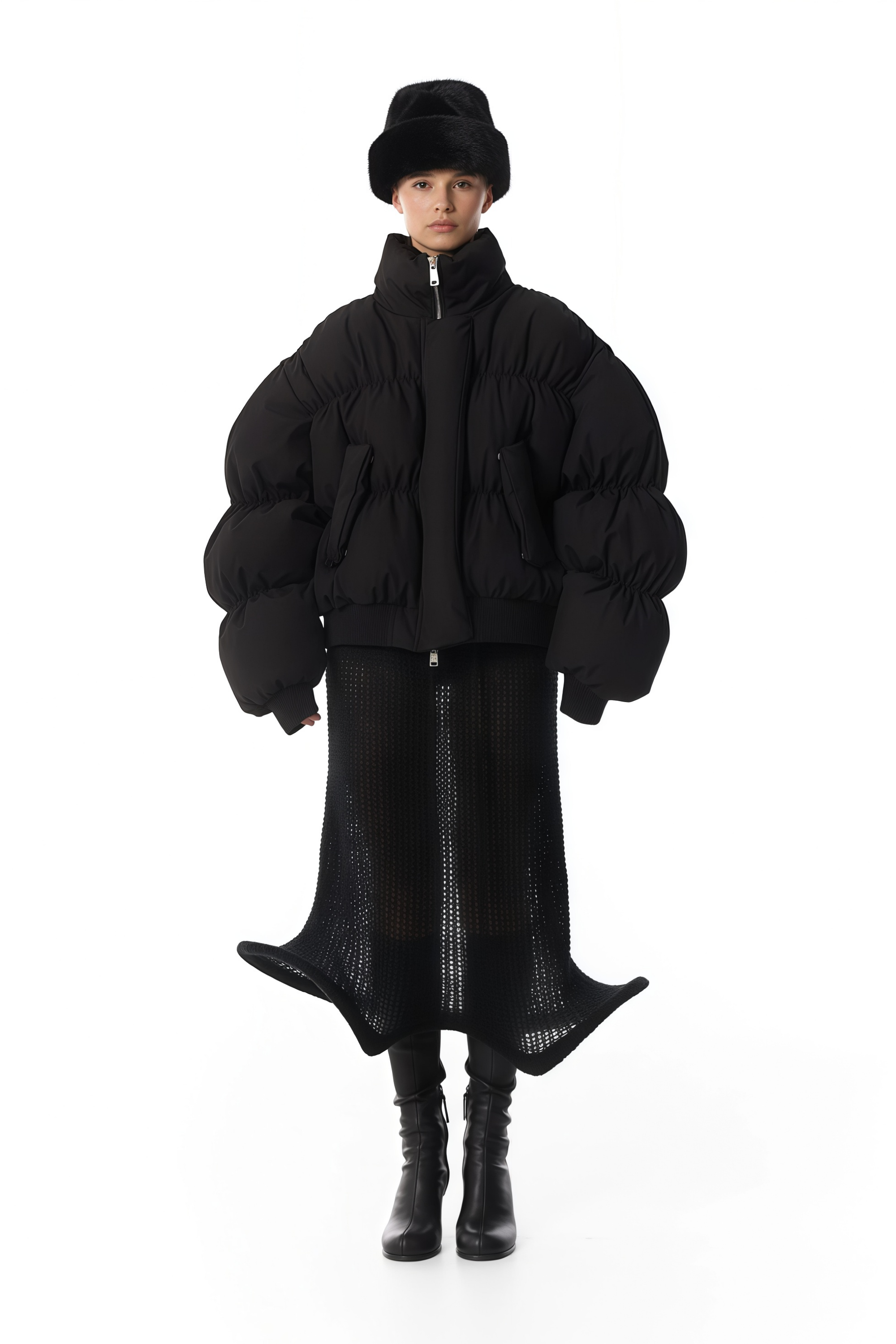 Introducing the Ursula Black Dropped Shoulder Down Coat, a must-have addition to your wardrobe. This sleek coat features long sleeves with a refined stand-up collar and a contemporary dropped shoulder design. Detailed with ribbed hem and cuffs for structure, it includes two side flap pockets and is secured with front zip fastening for a modern closure. Elevate your style with this elegant and versatile piece.