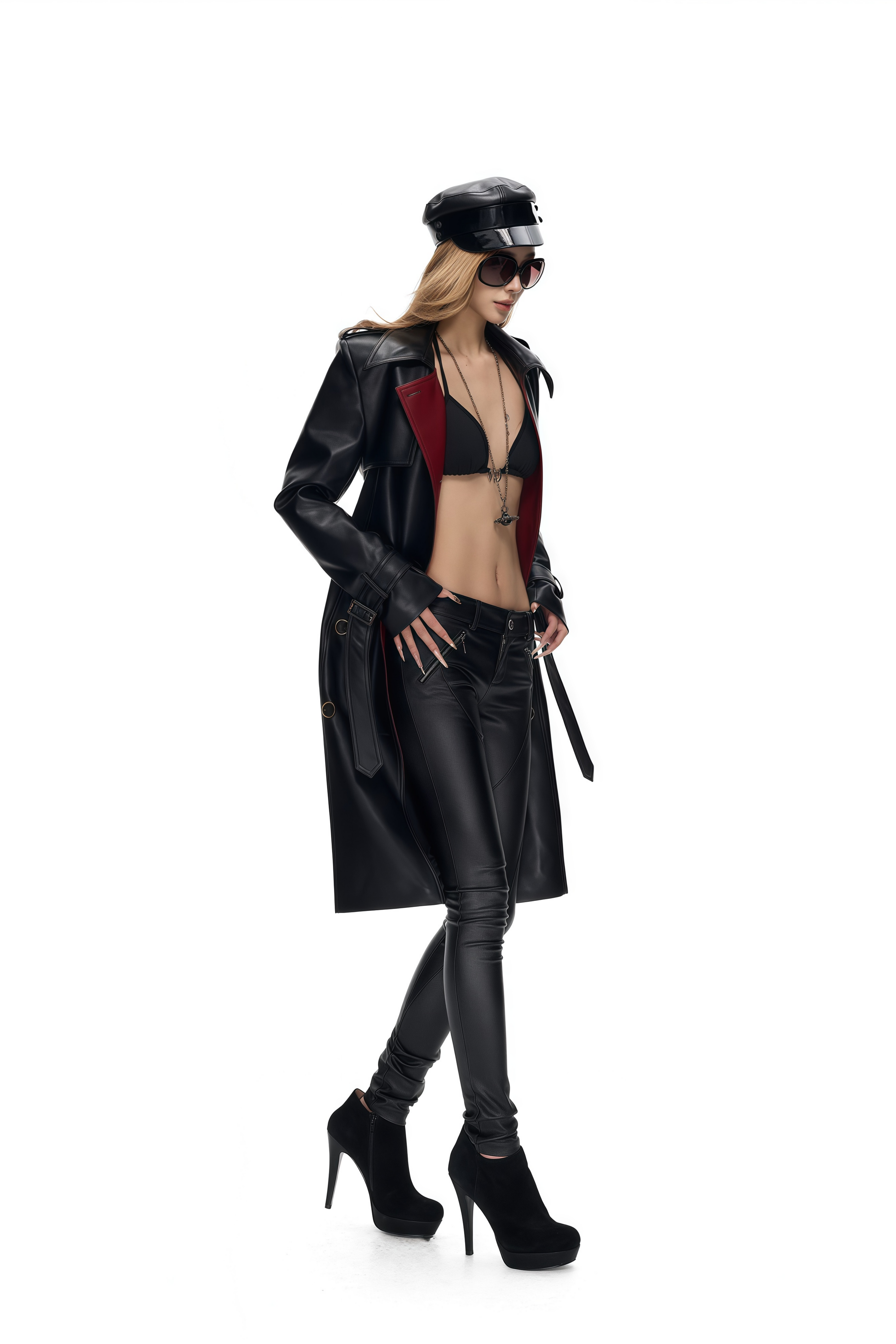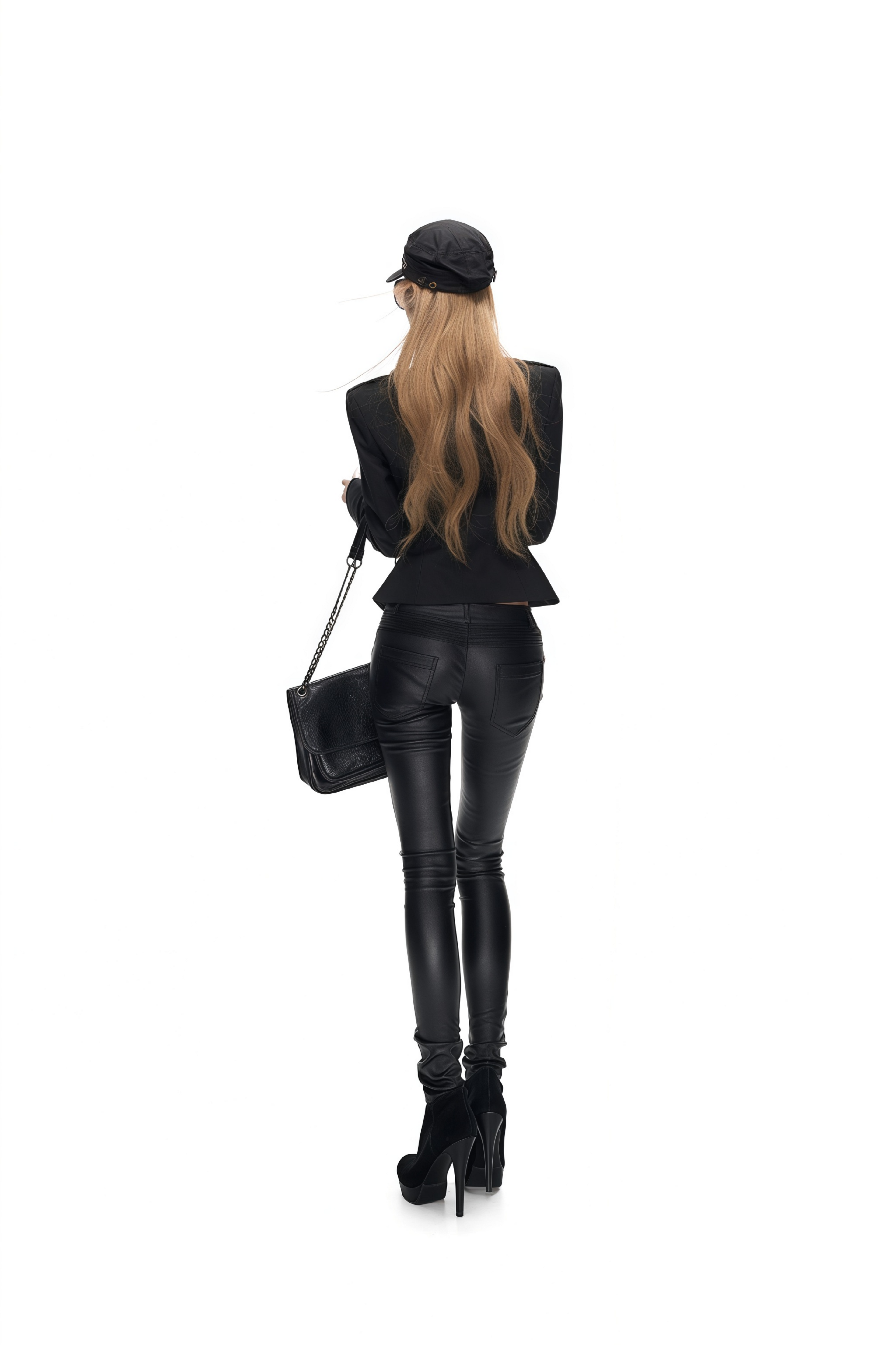 Kairi Black Ruched Faux Leather Trousers