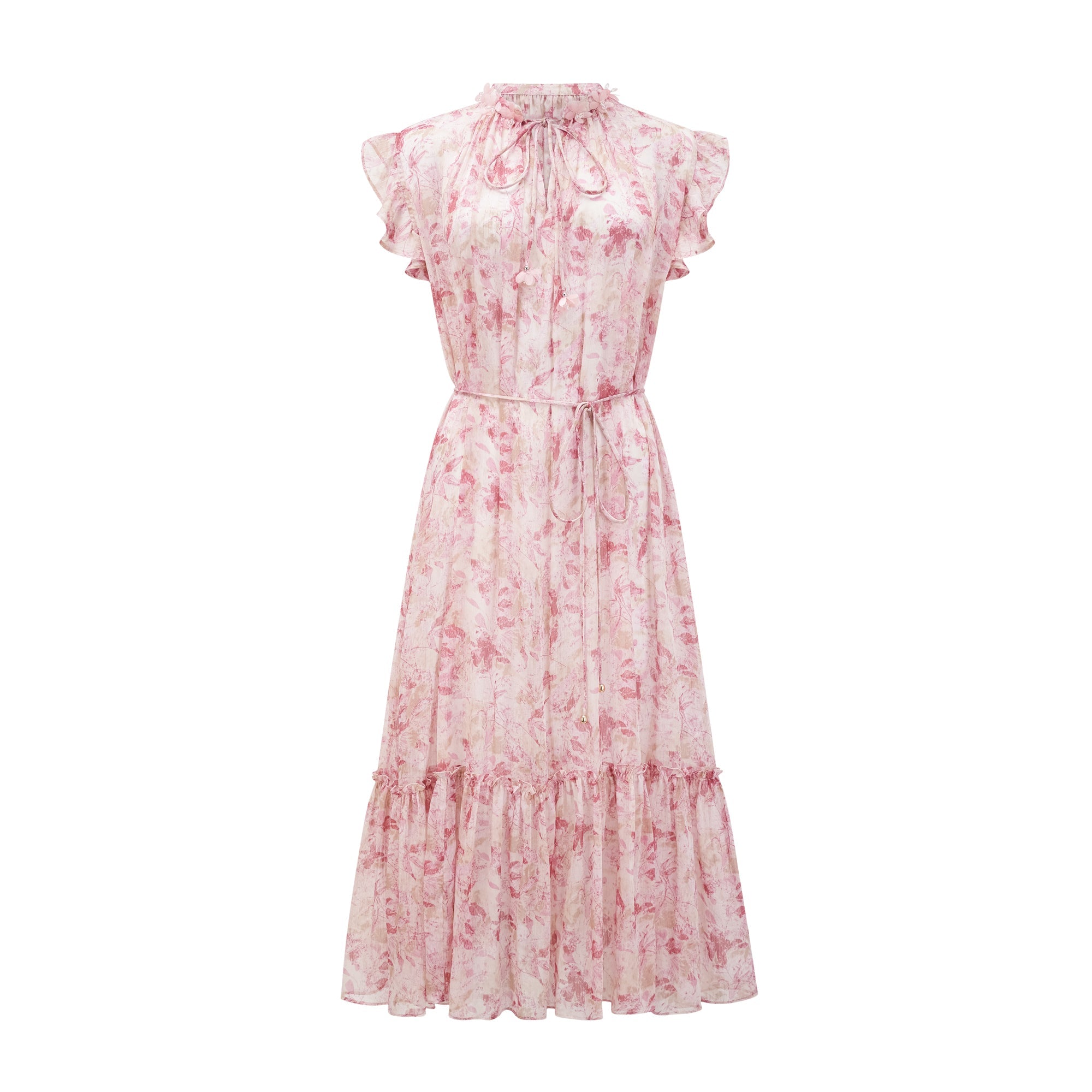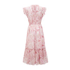 Introducing the Désirée Midi Dress With All-Over Floral Print, a must-have addition to your wardrobe. This dress features sleeveless cut, crew neck, and flounce hem. With its tied-waist belt included and pleat detailing, it offers a perfect fit. Elevate your style with this elegant and versatile dress.