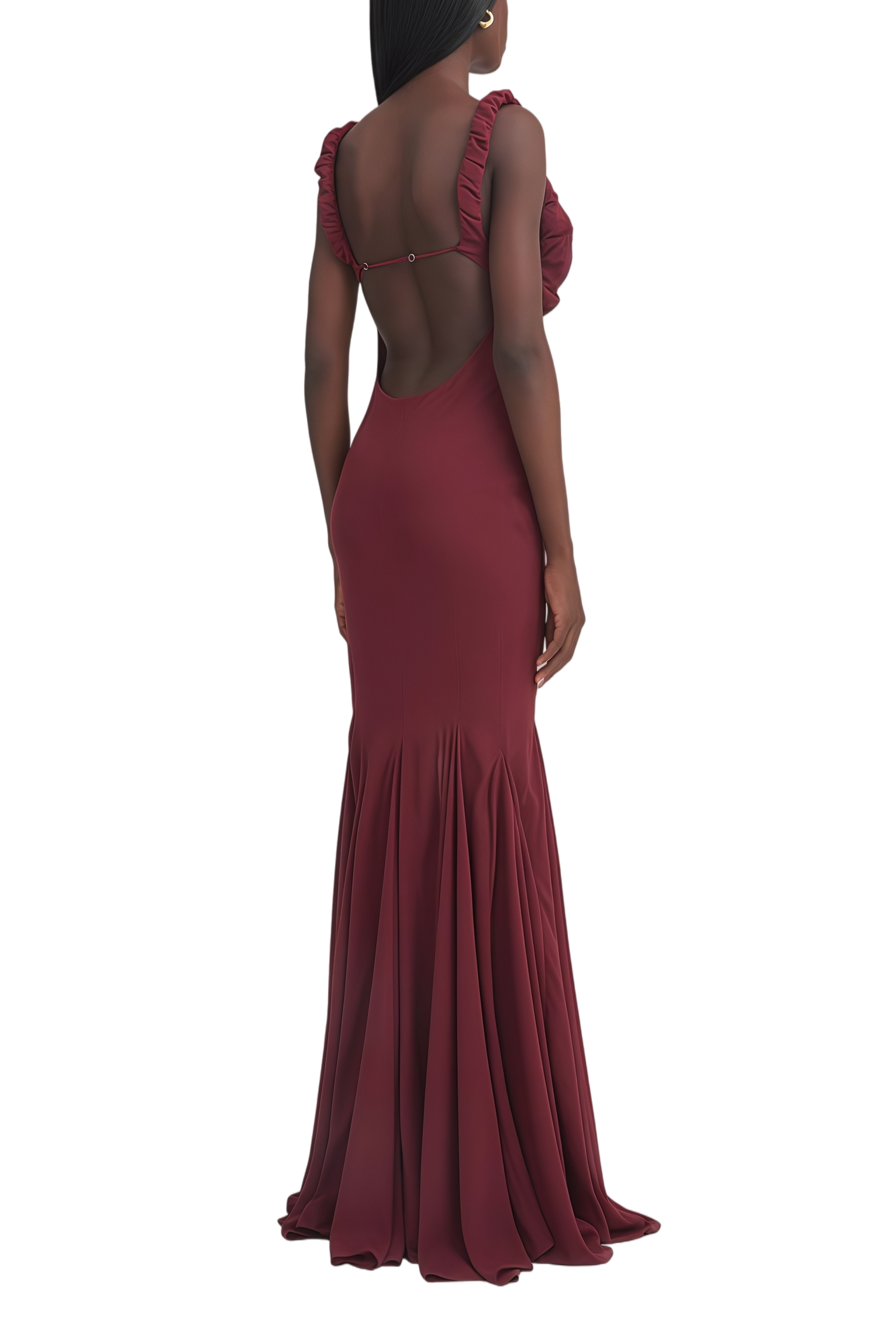Eleanore Burgundy Open Back Mermaid Maxi Dress