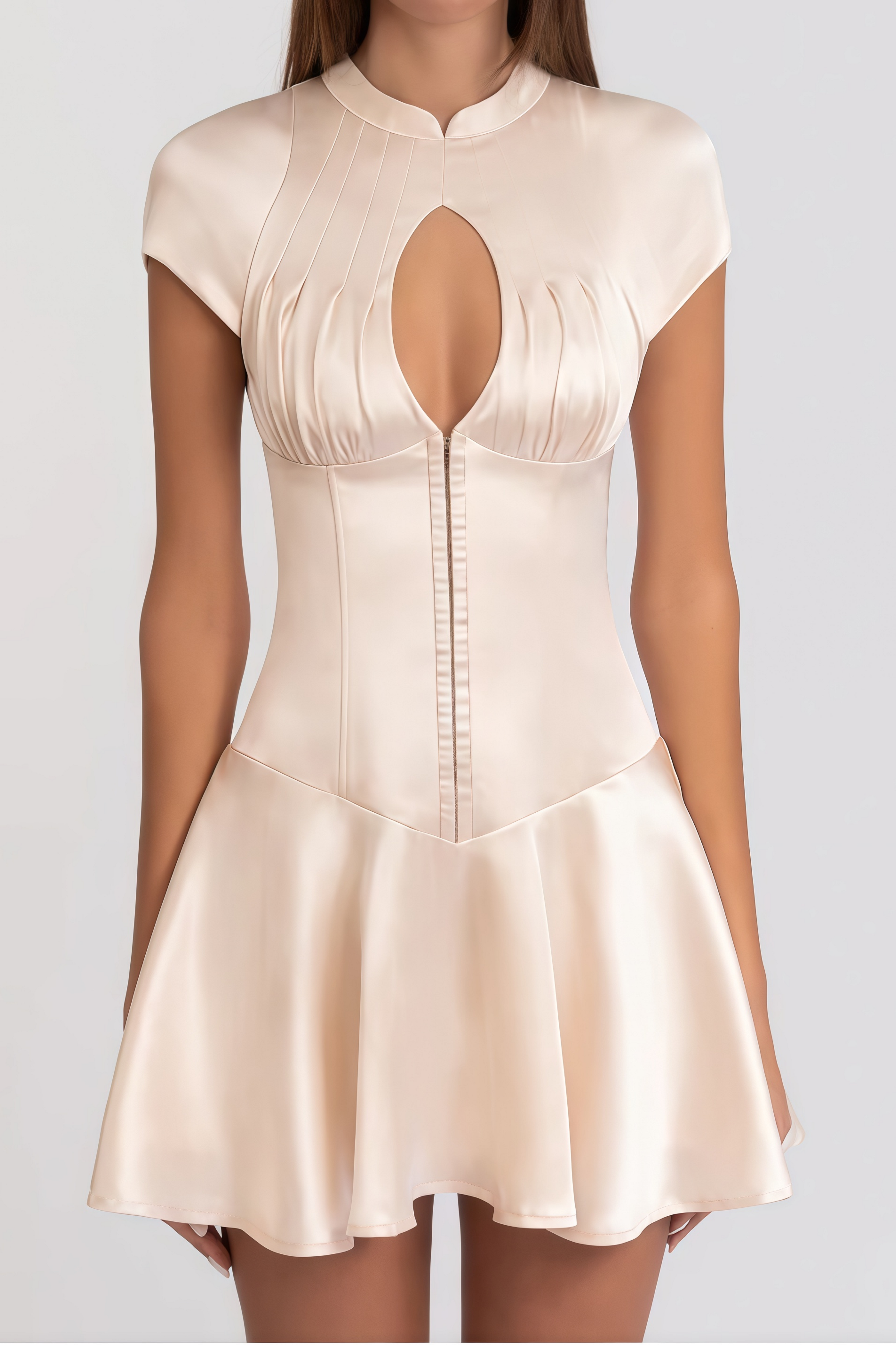 Kama Neutral Flared Cut Out Mini Dress