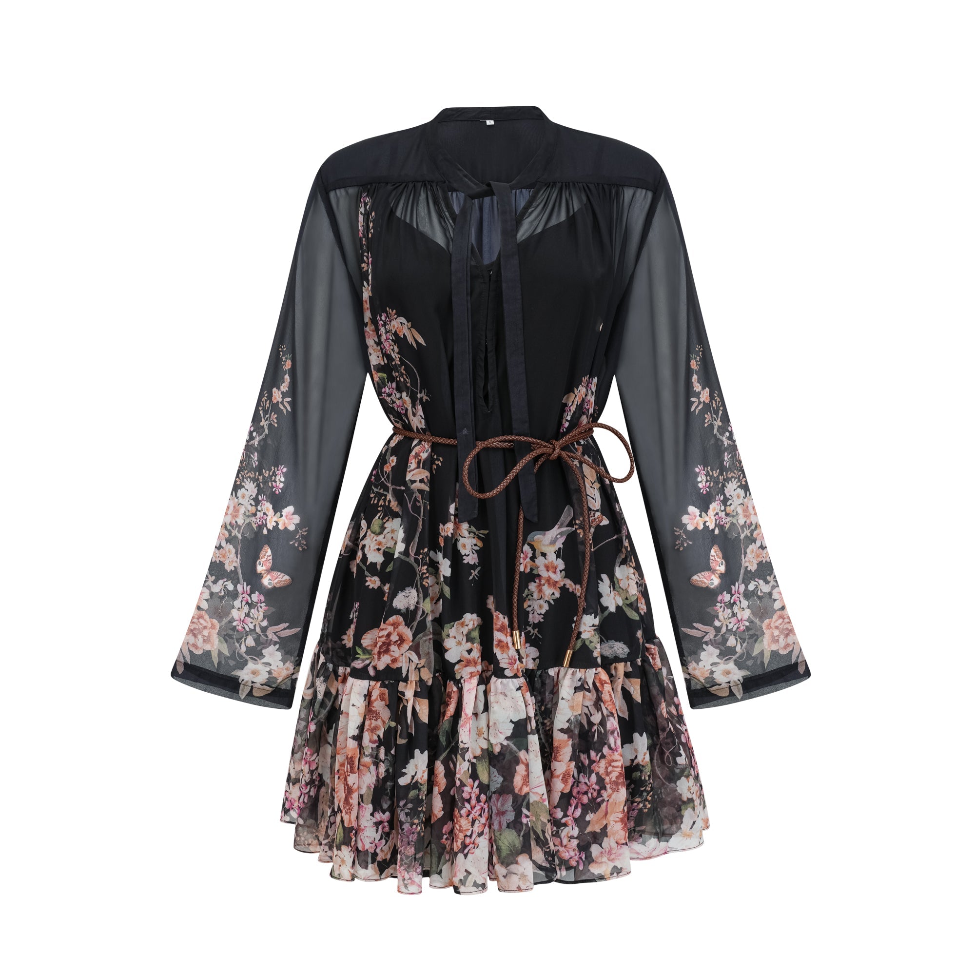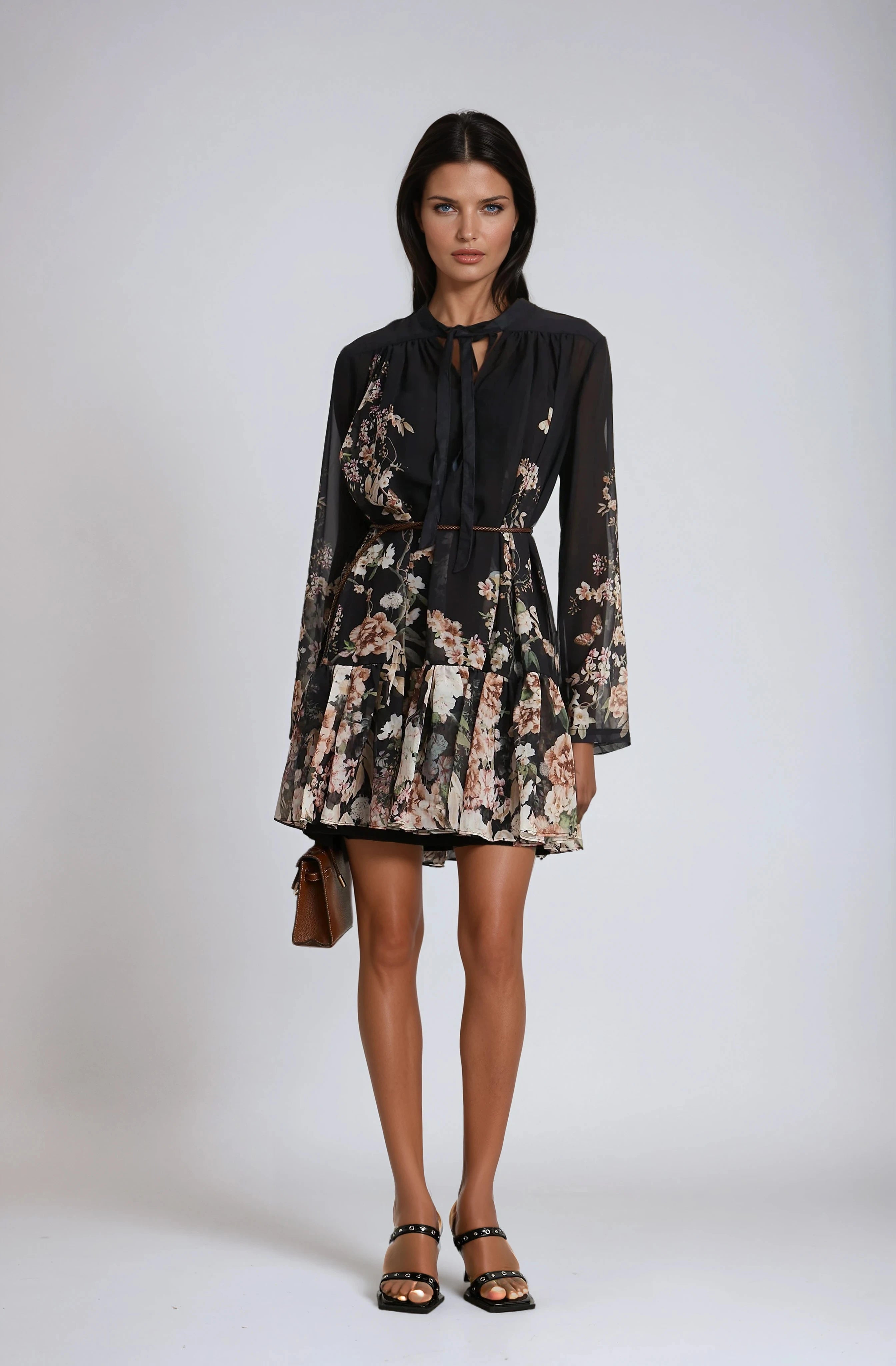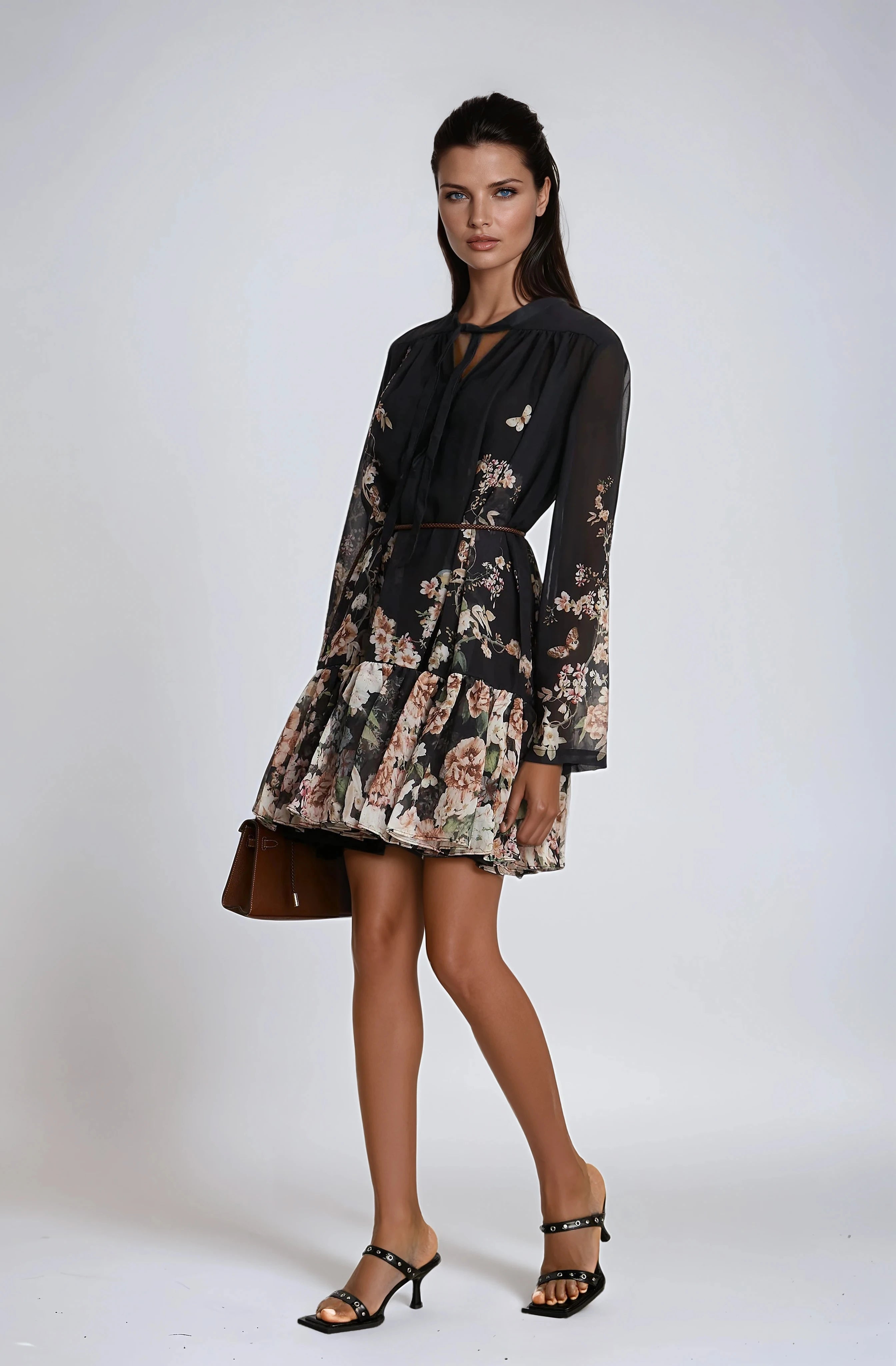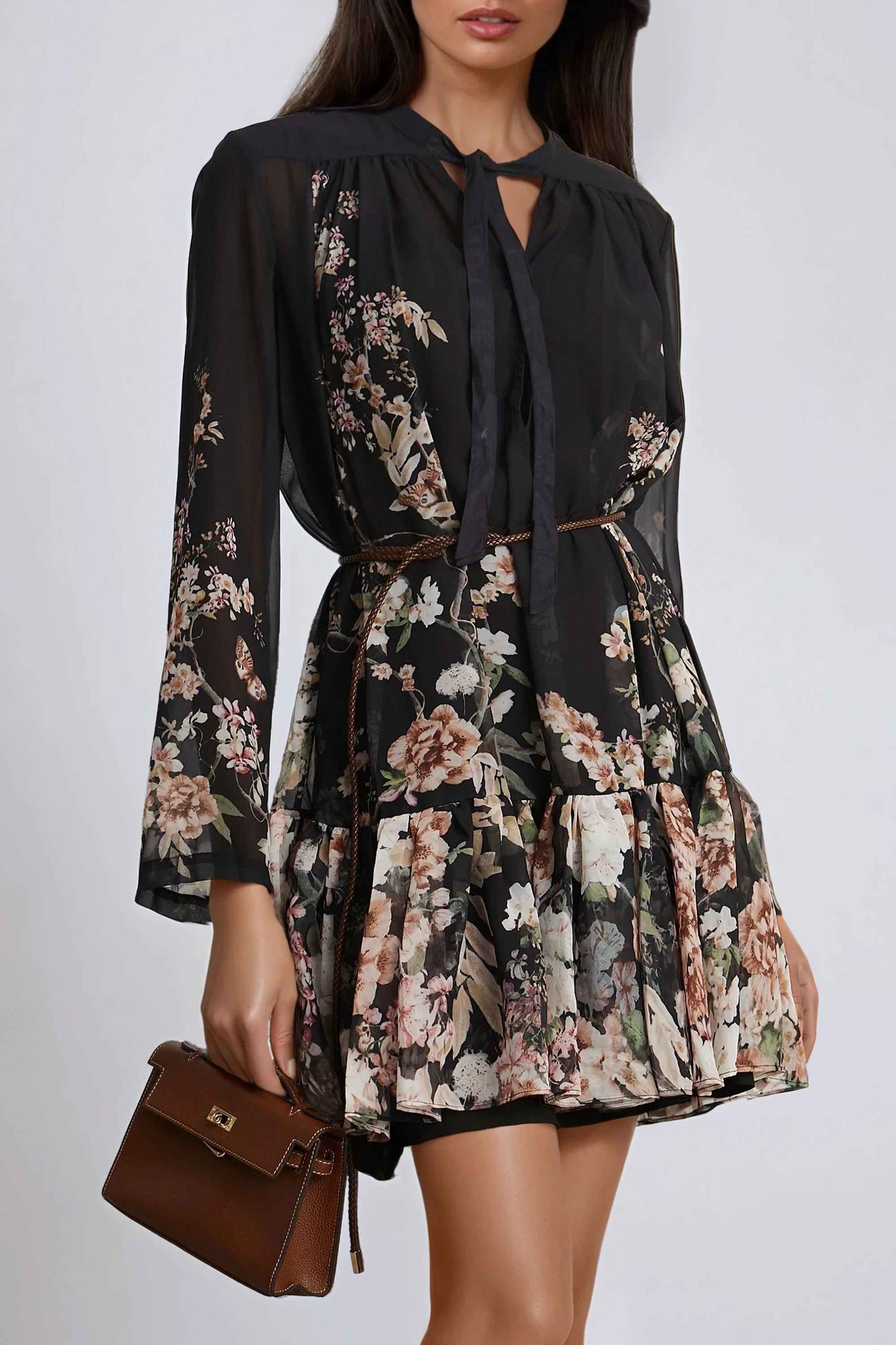 Oceana Mini Dress With Floral Print And Semi-Sheer