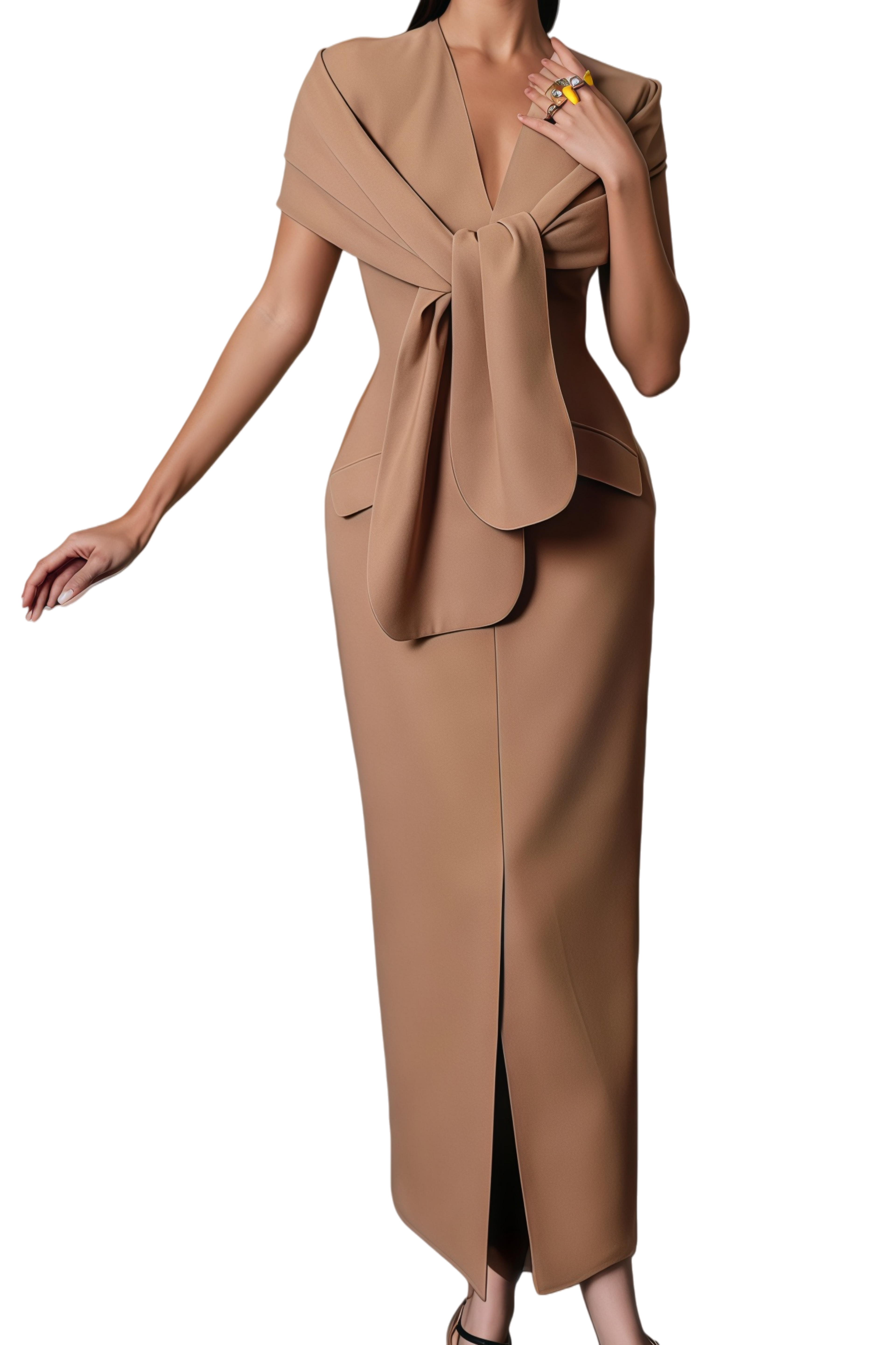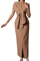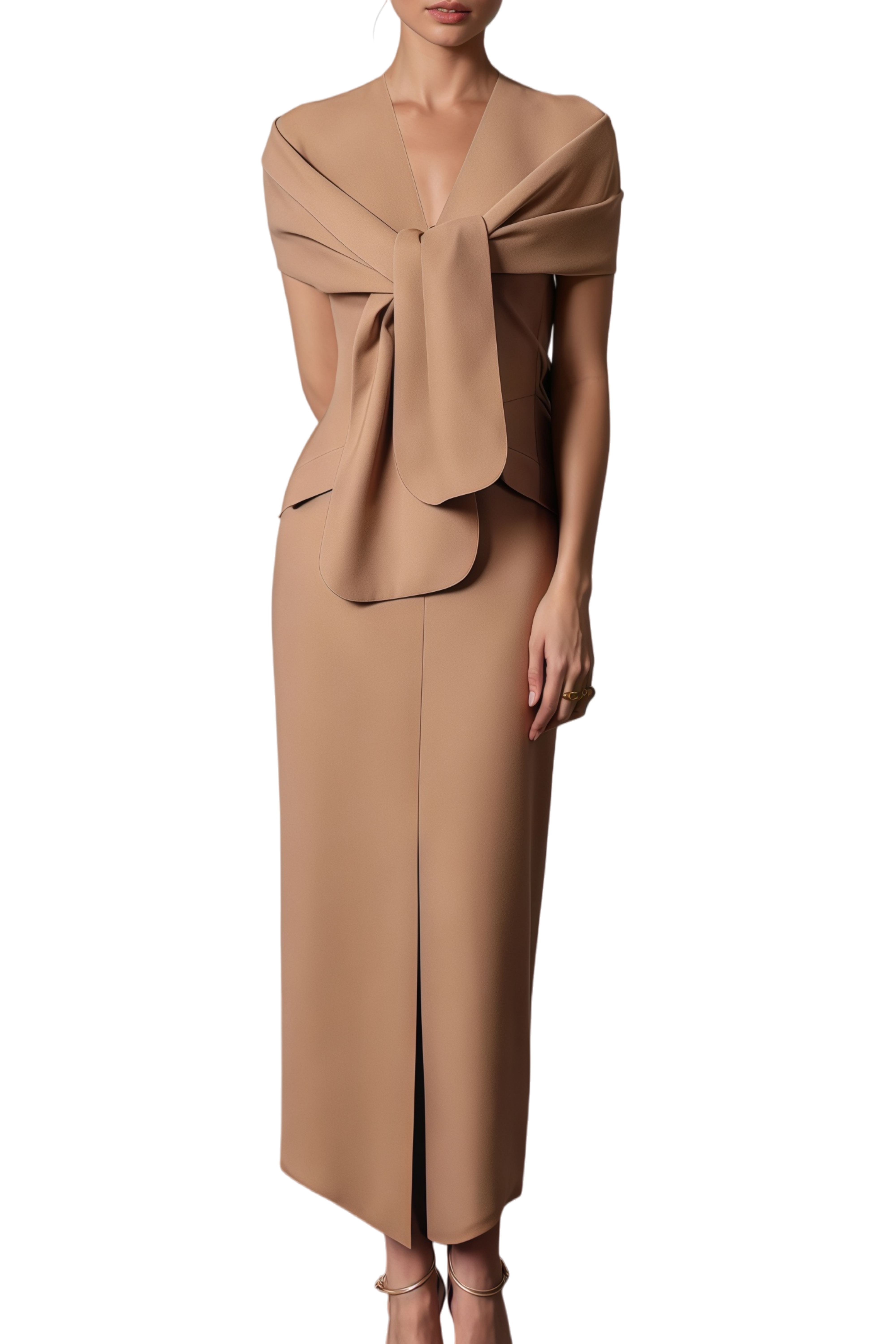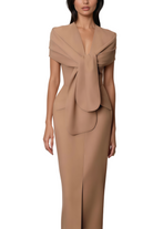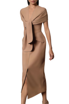Pamela Camel Scarf Draped Midi Dress