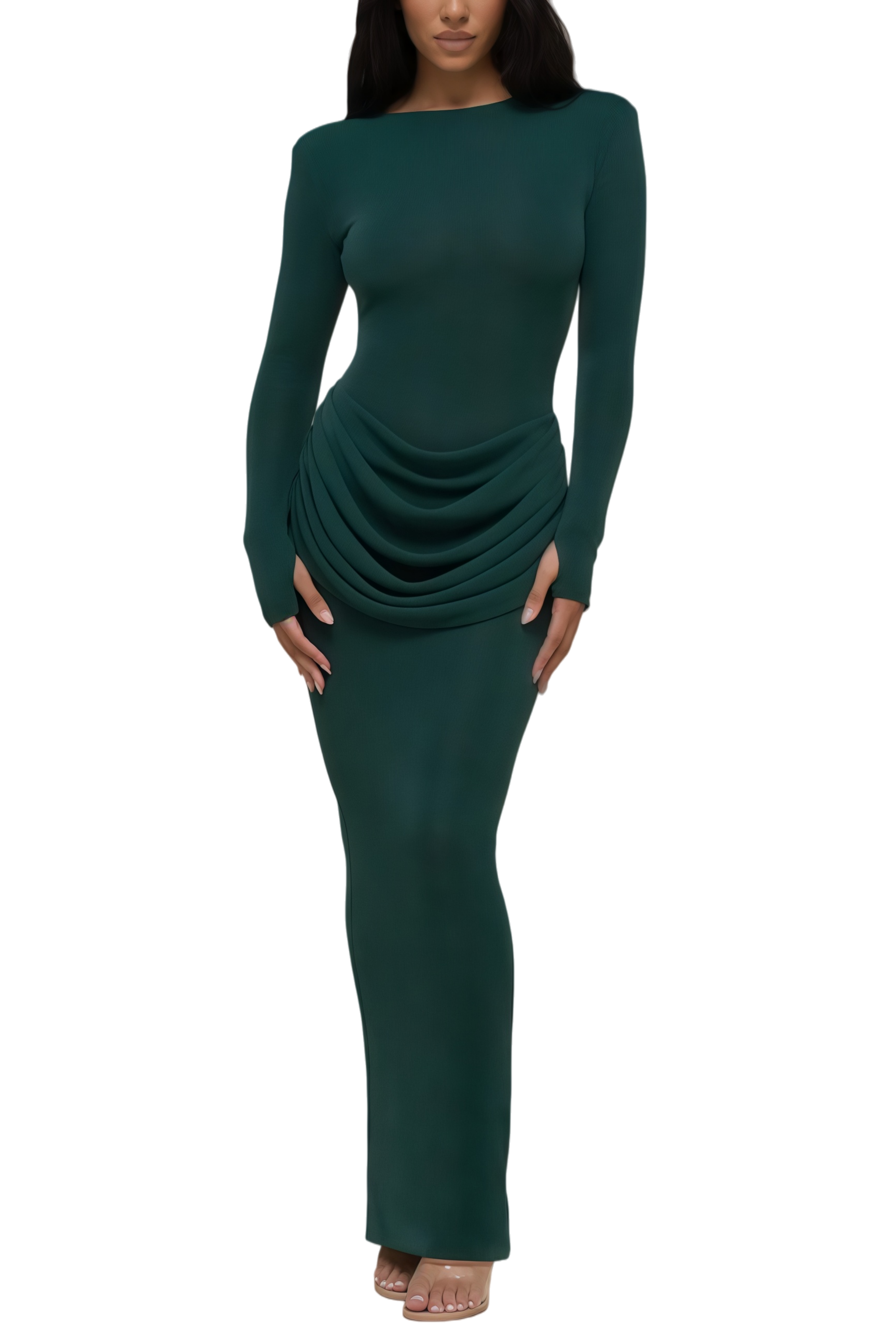 Venus Peacock Green Draped Maxi Dress