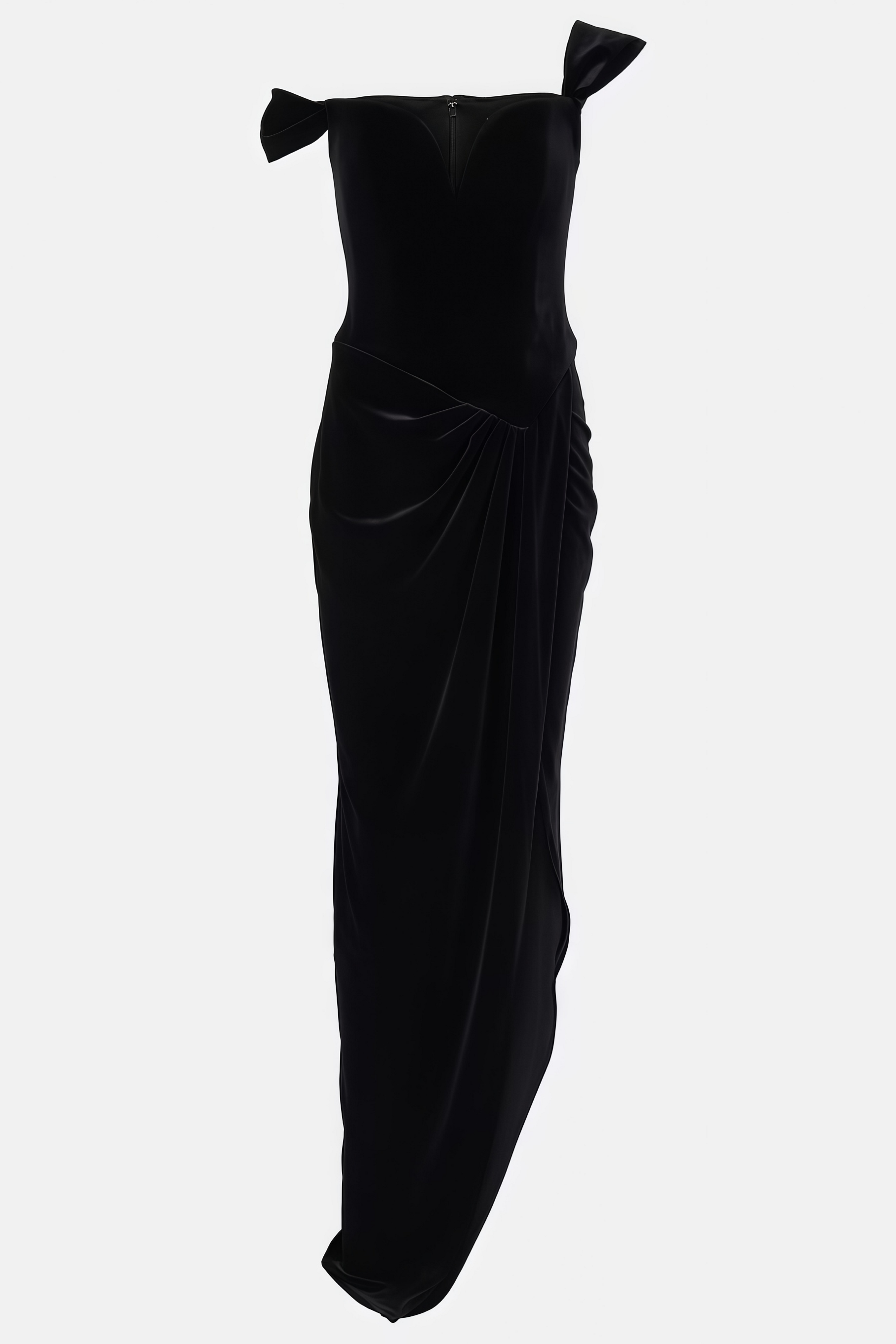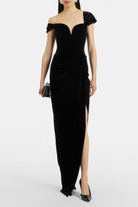Wilma Black Velvet Off Shoulder Maxi Dress