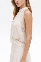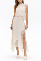 Eartha Cream White Lace Panlled Asymmetrical Top & Skirt Set