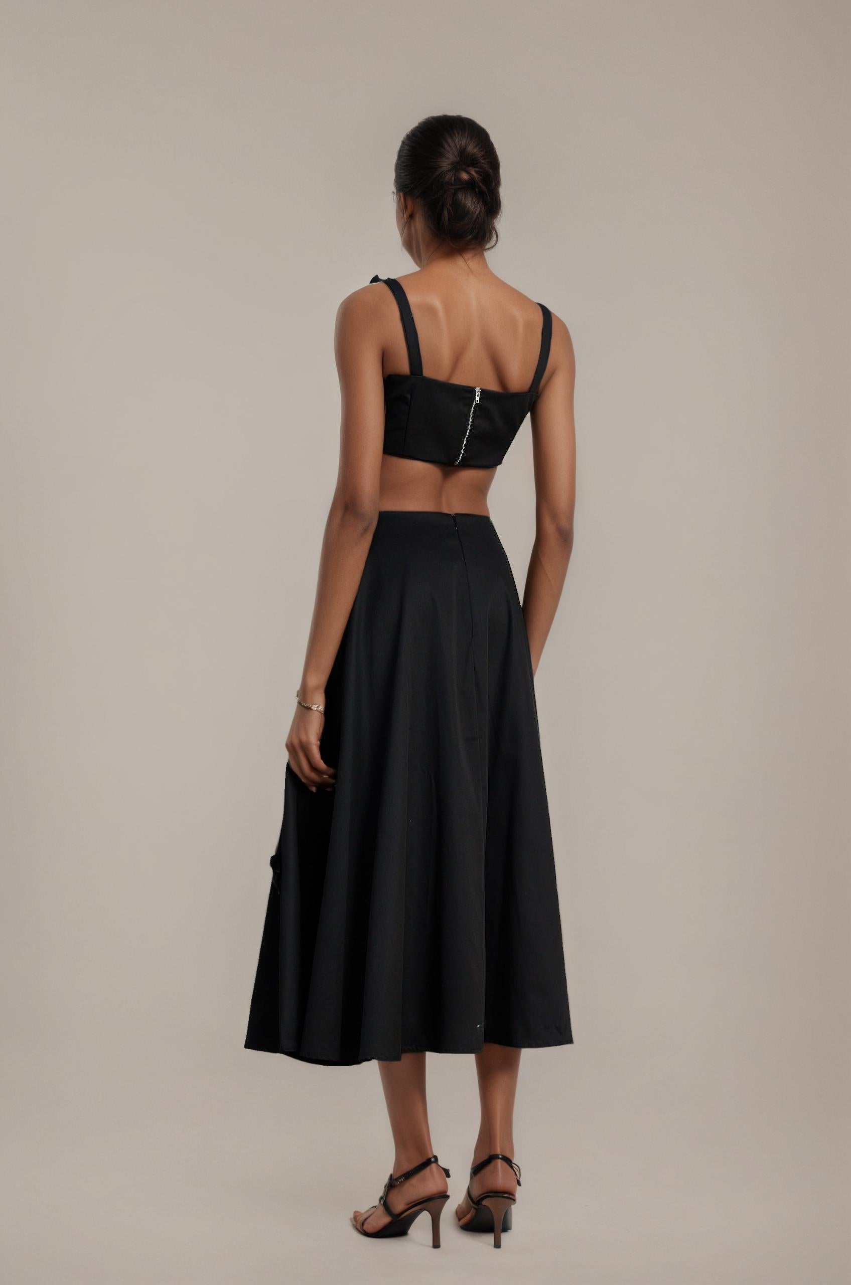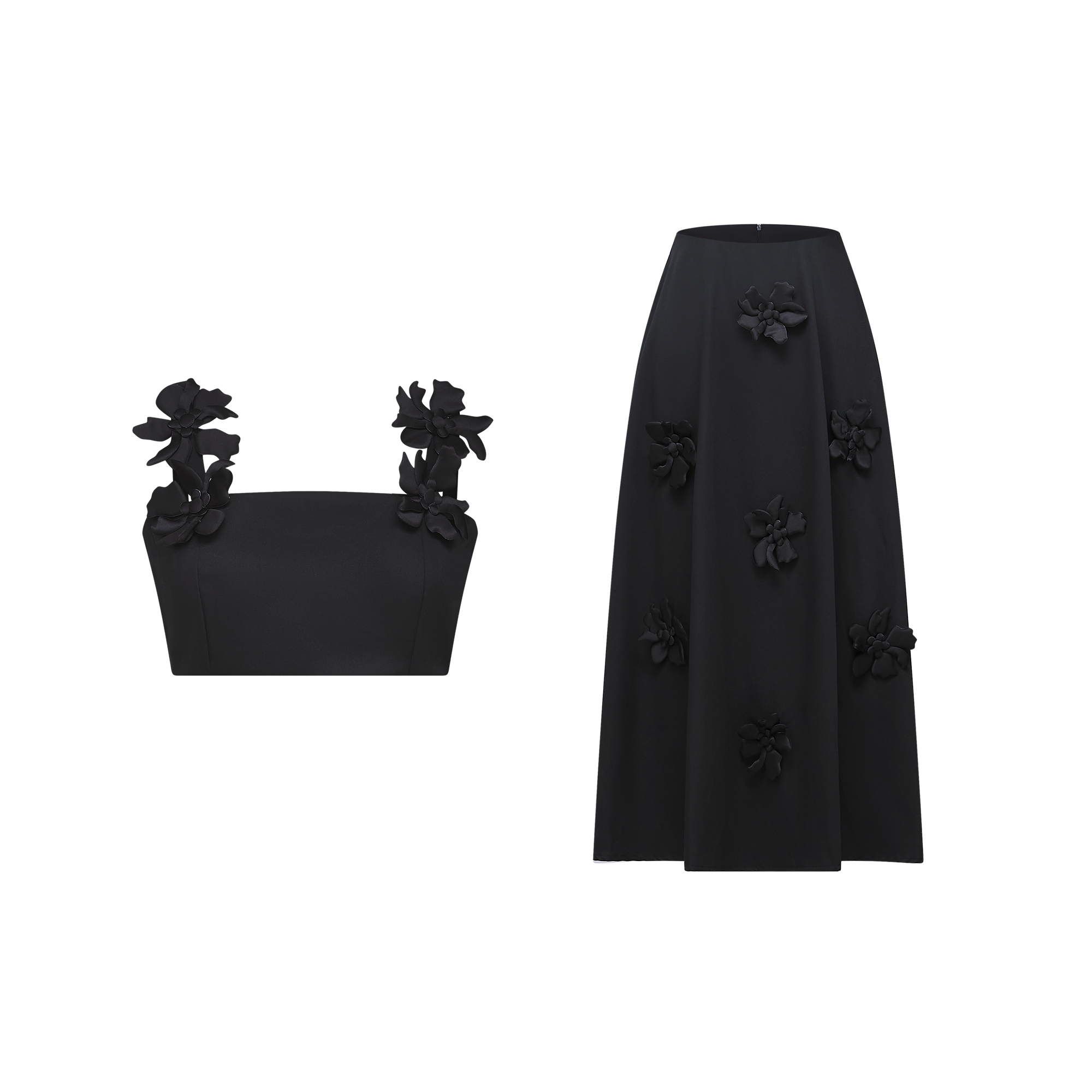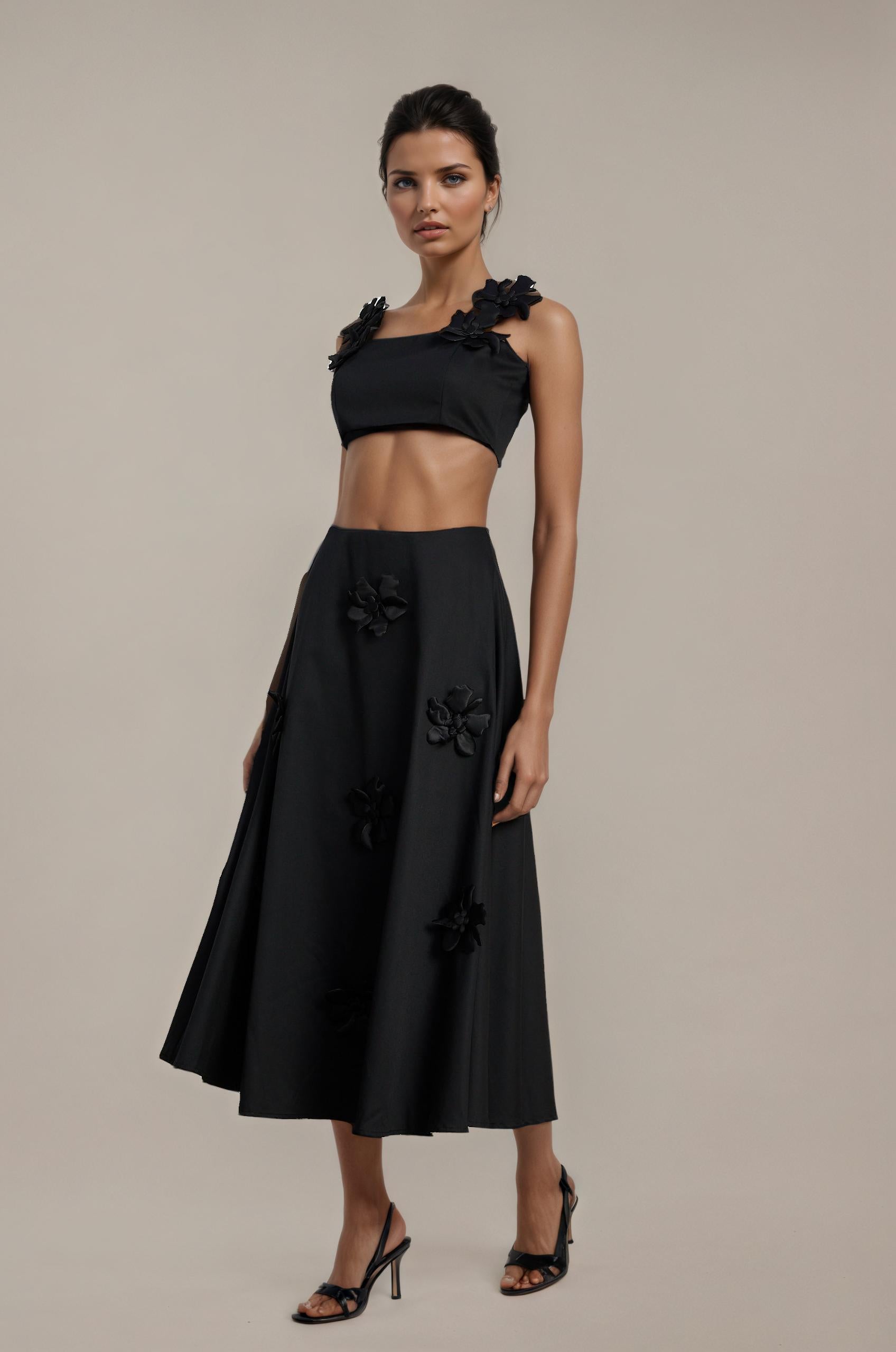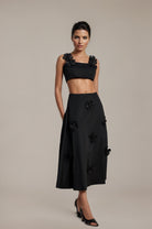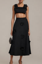Olessia Top & Skirt Set With Black Floral Pattern