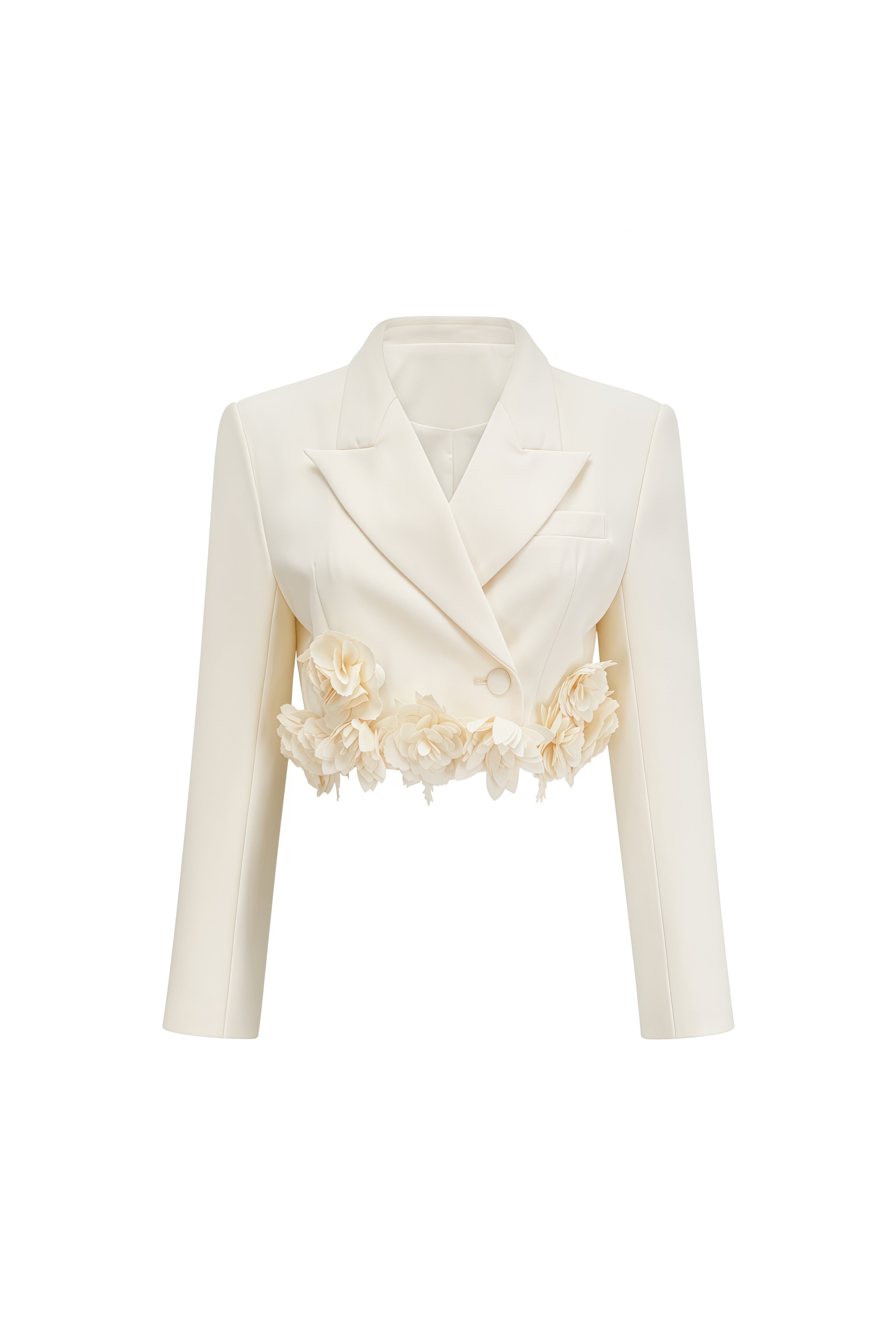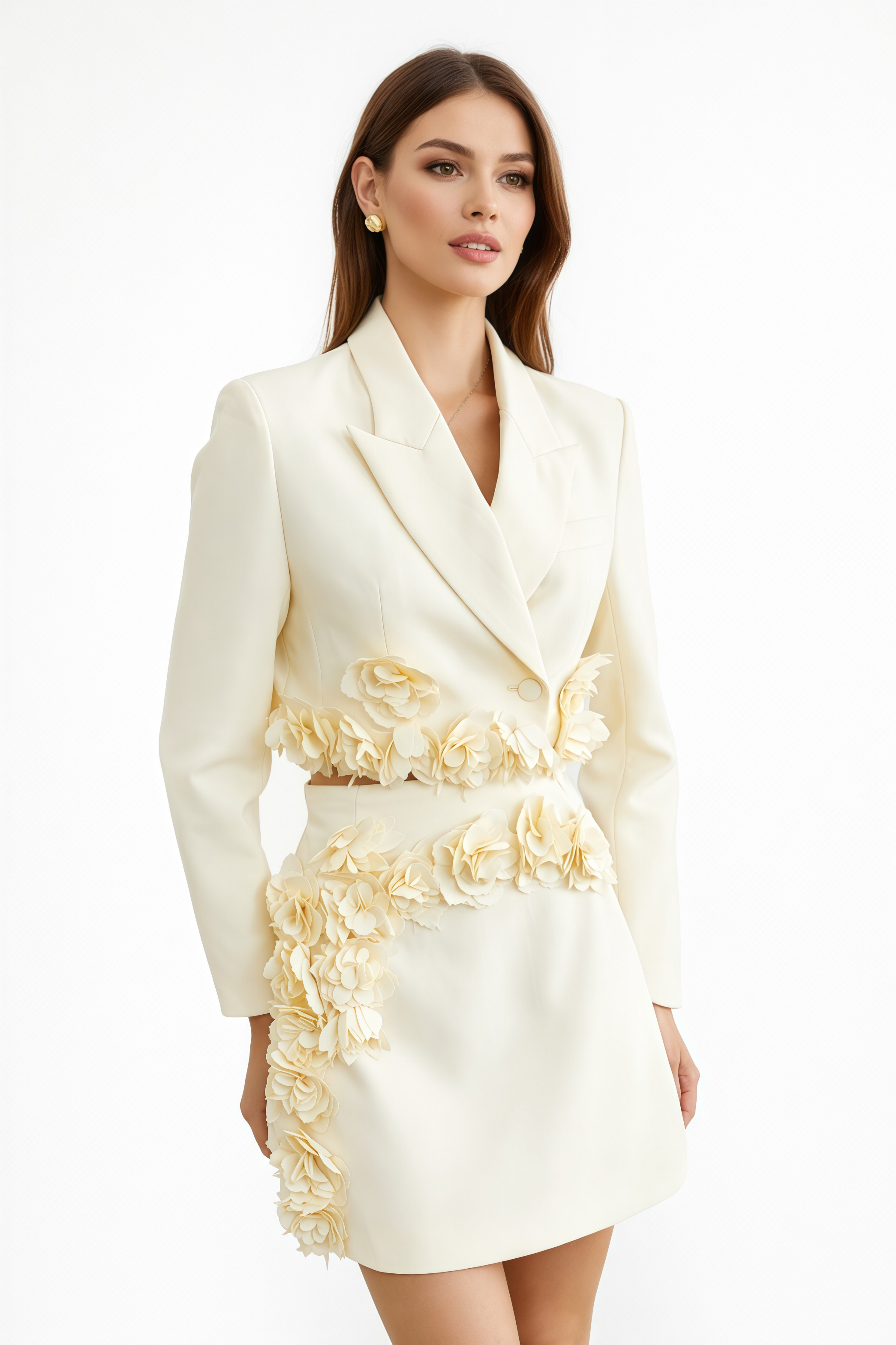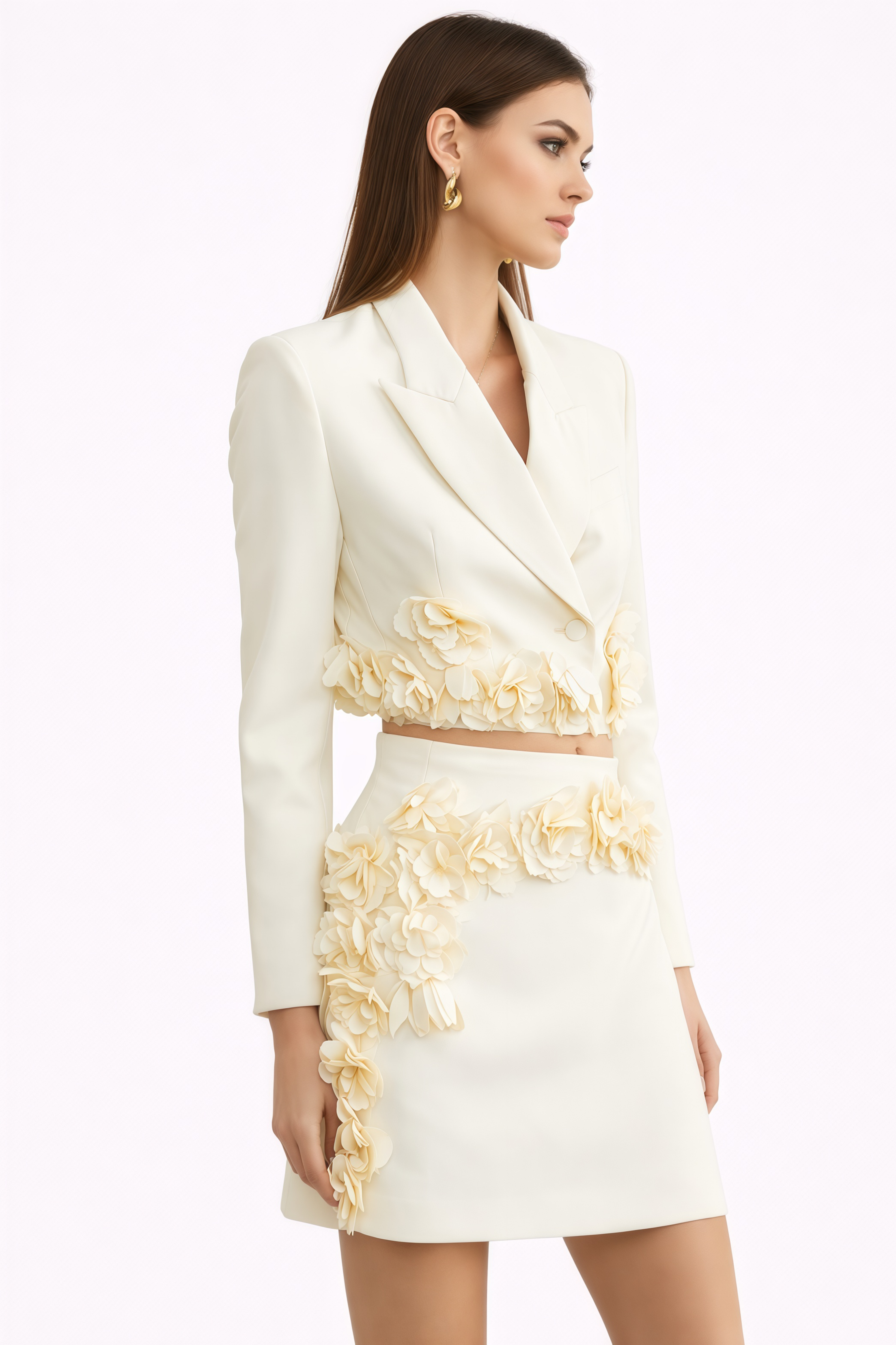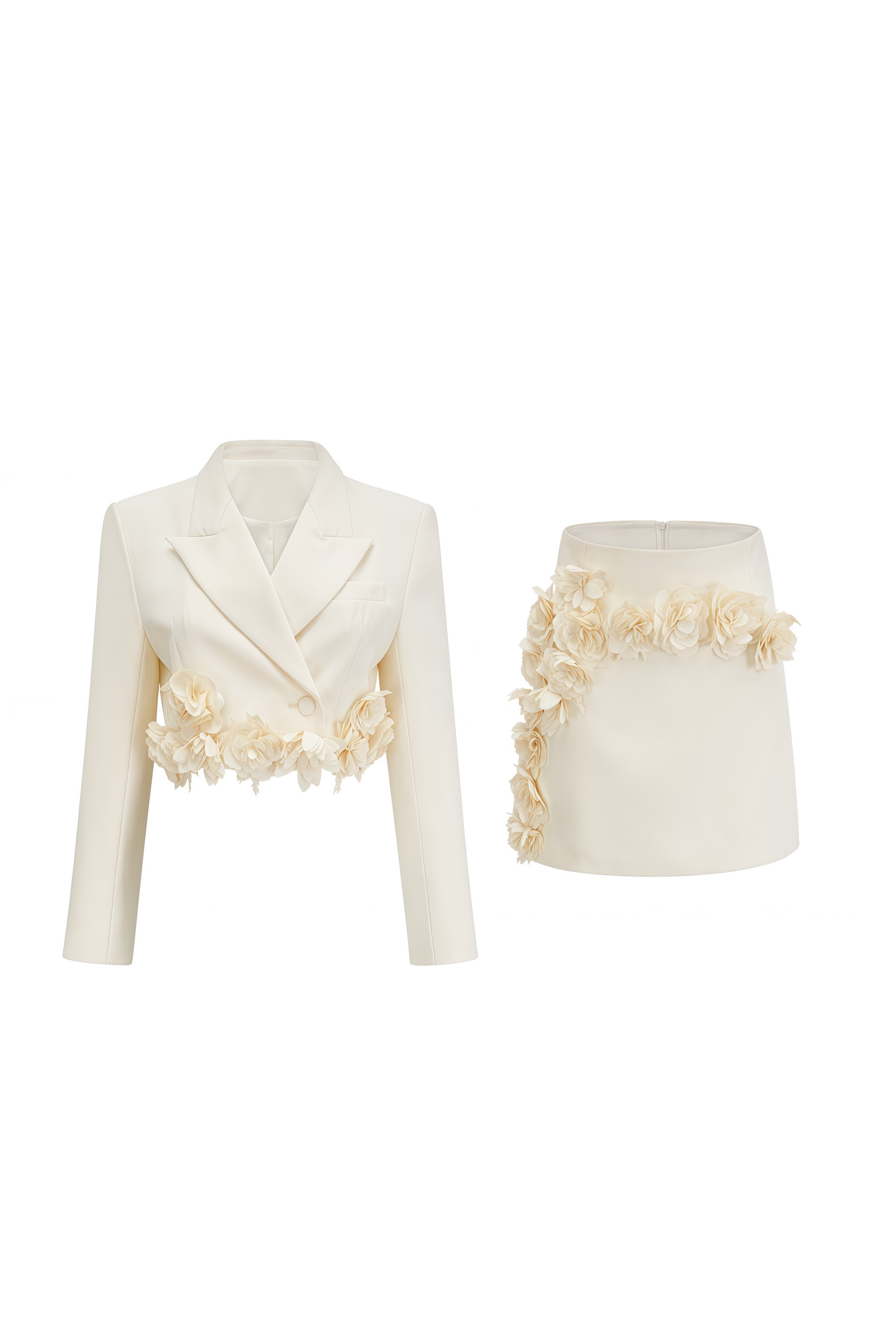 Rebecca Neutral Floral Appliqué Jacket & Skirt Set