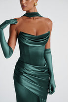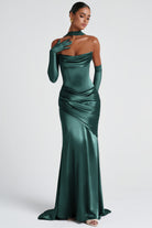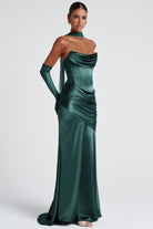 Connie Green Ruched Satin Maxi Dress