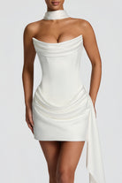 Lynn White Ruched Ribbon Detail Mini Dress