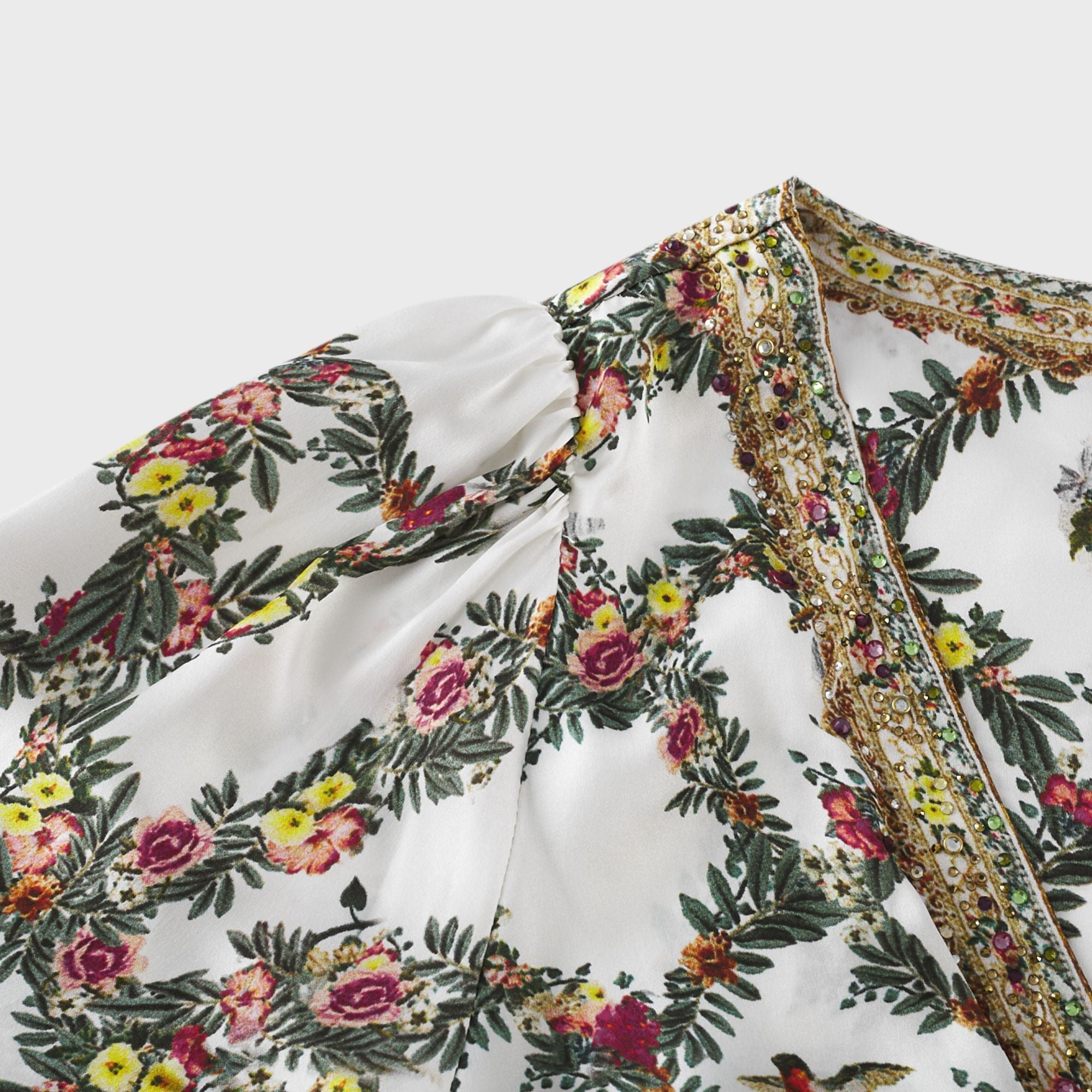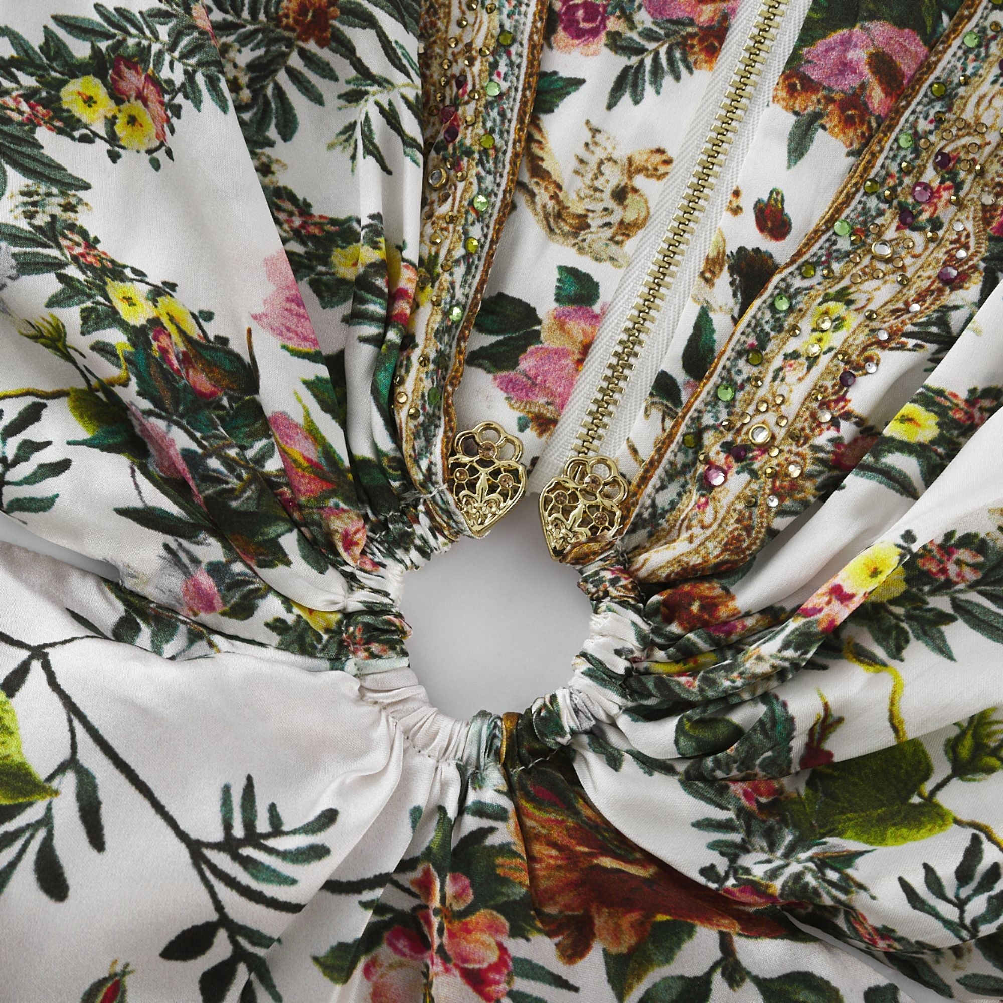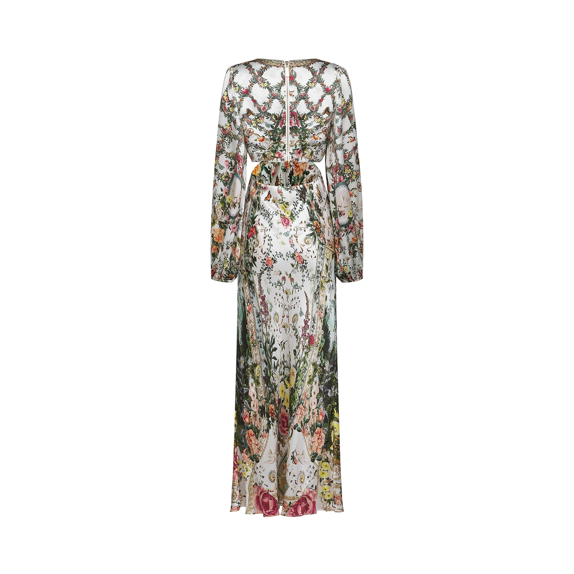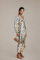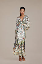 Introducing the Tallulah Maxi Dress With Crystal Embellishments, a must-have addition to your wardrobe. This dress features delicate crystal embellishments and an all-over floral print. With its plunging V-neck and elegant cut-out design, it offers a perfect fit. Elevate your style with this elegant and versatile piece.