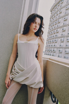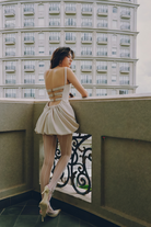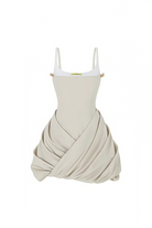 Odelia Light Beige Open Back Bubble Mini Dress